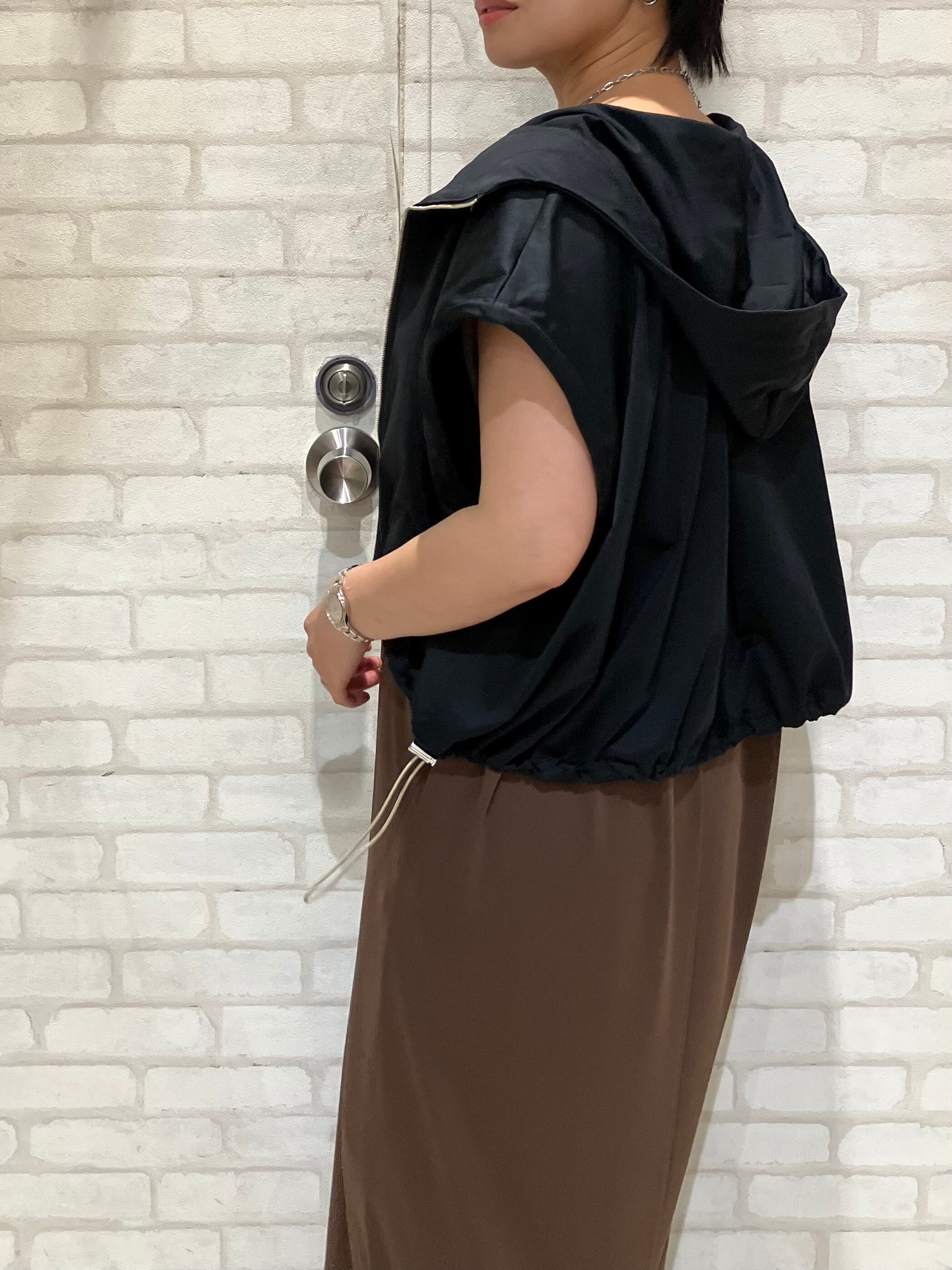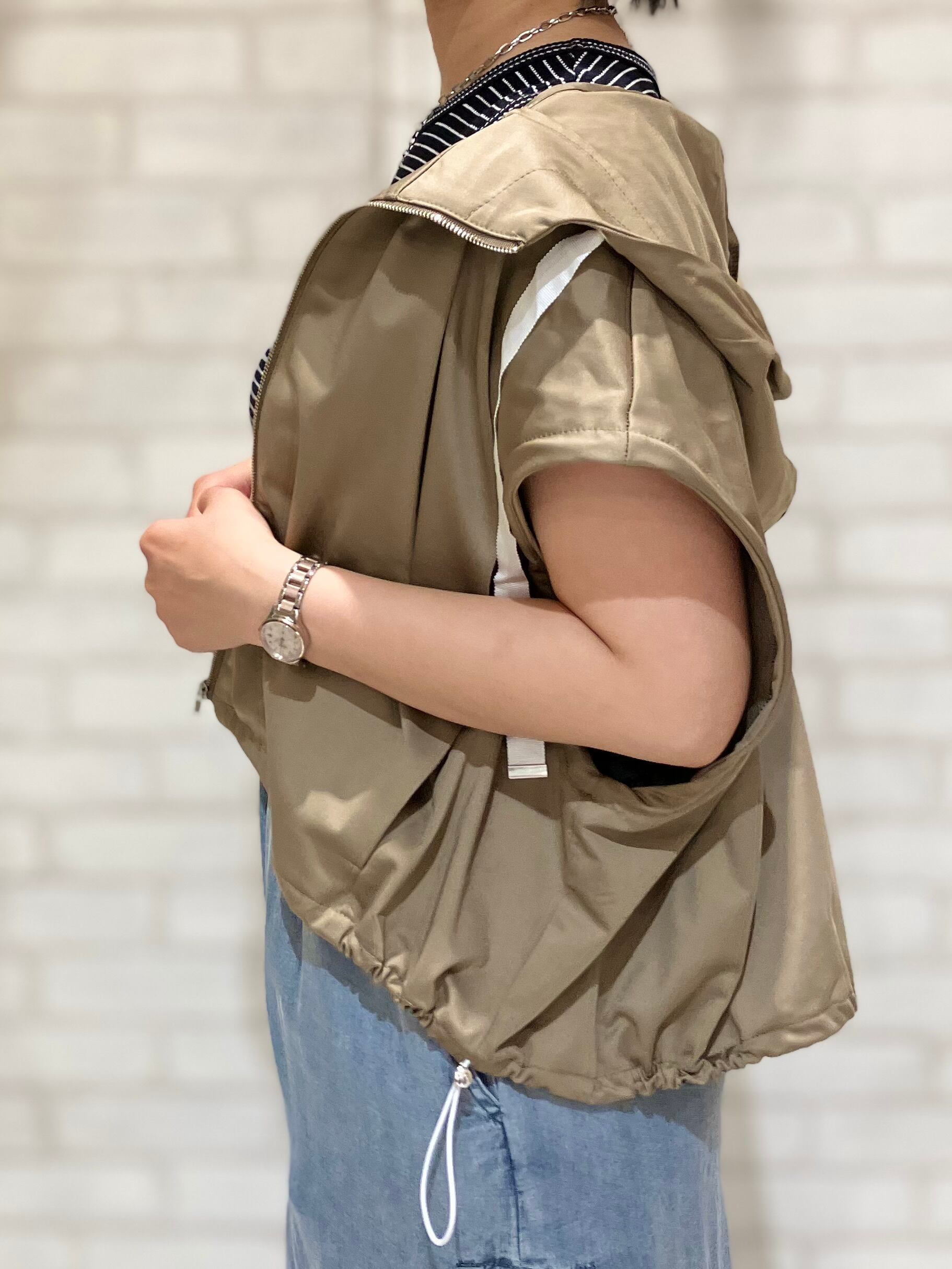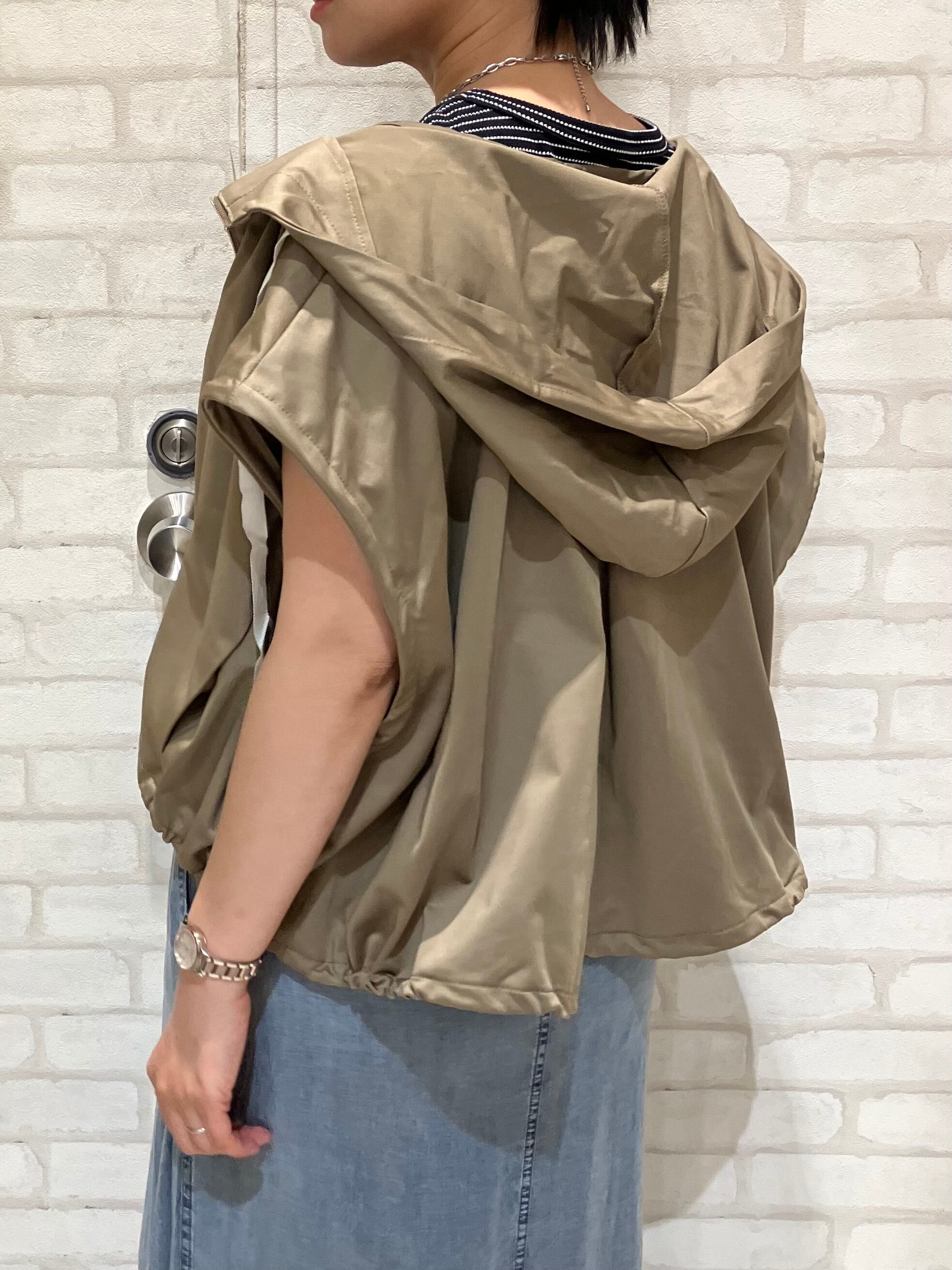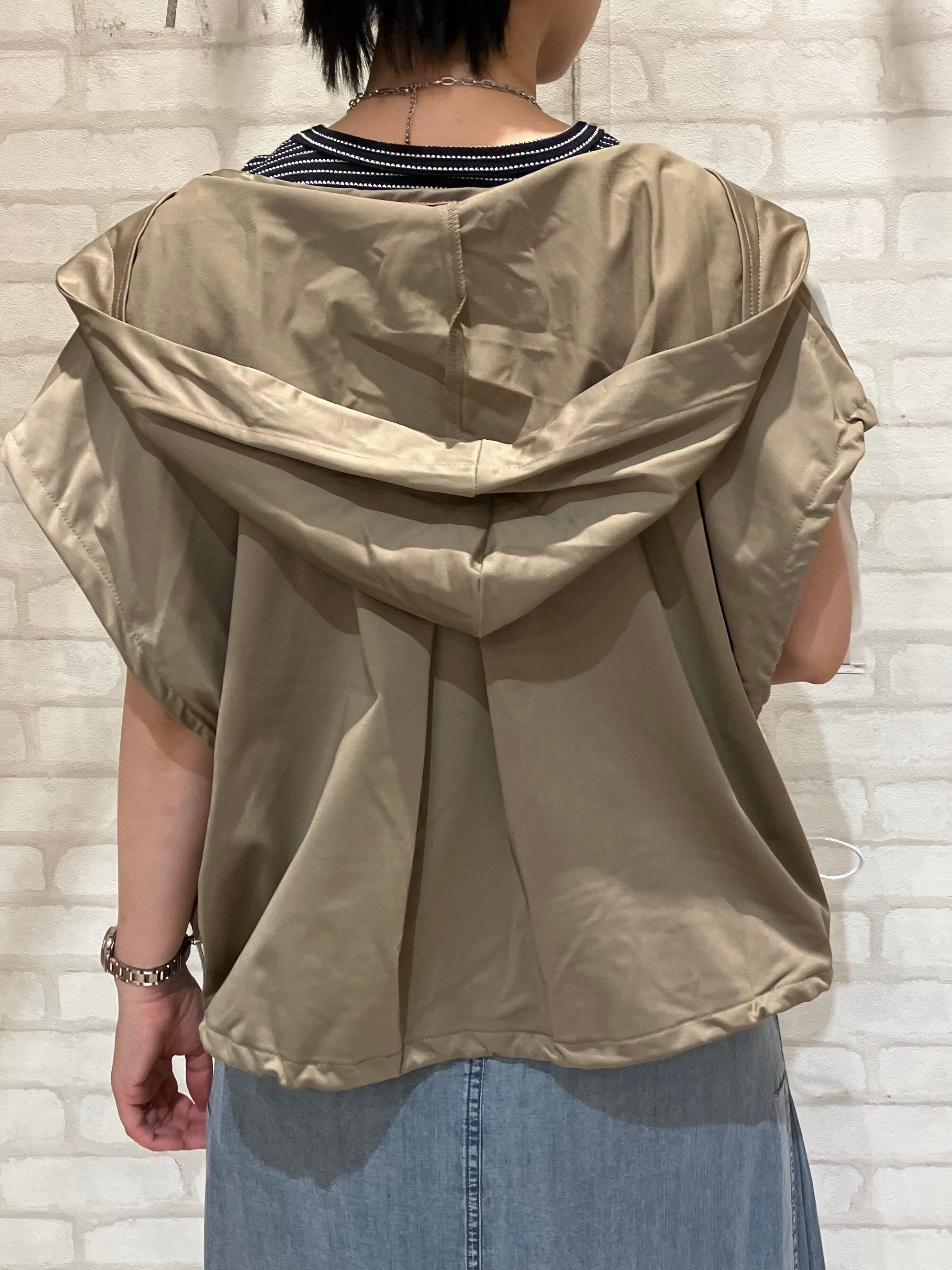 オーバーシルエットのショートベストで、フレンチスリーブの袖丈です。