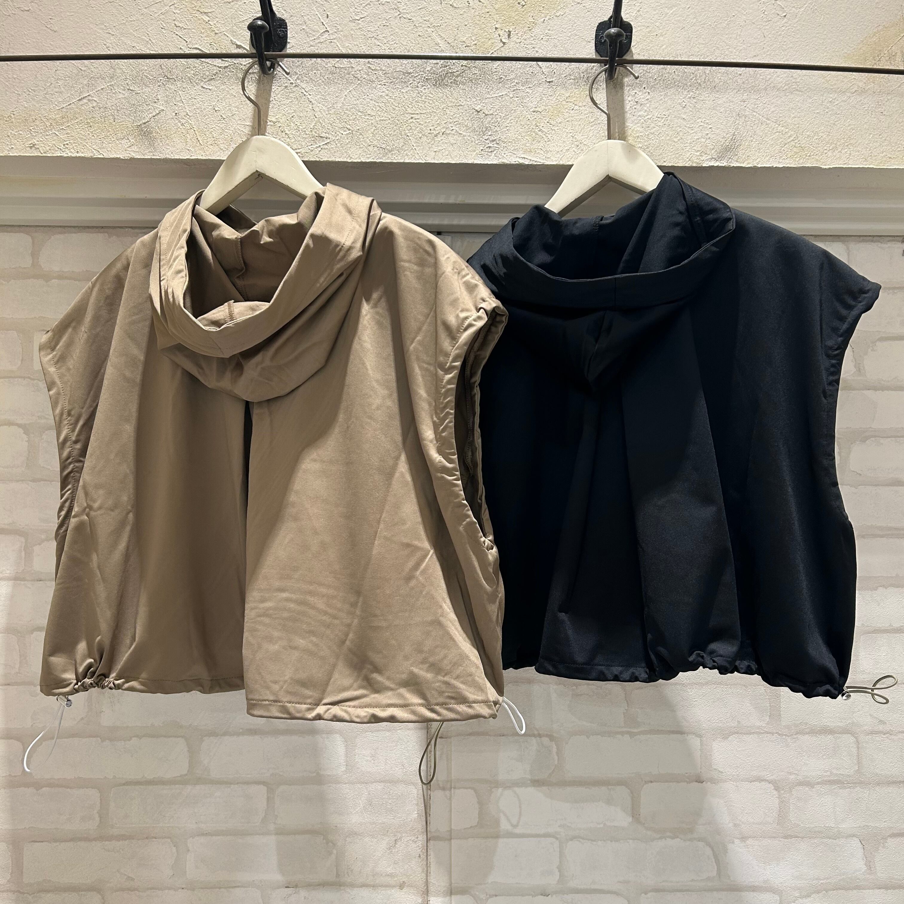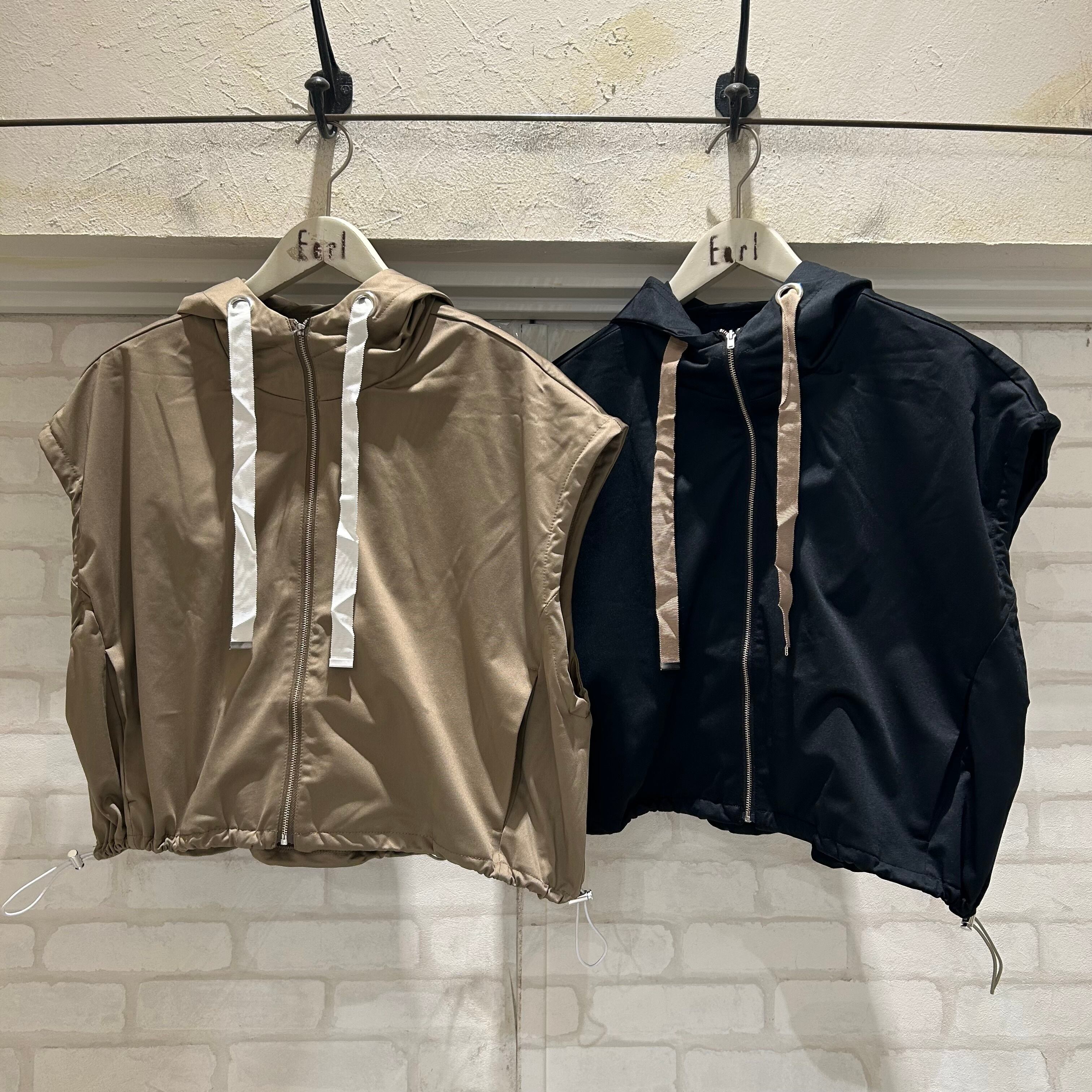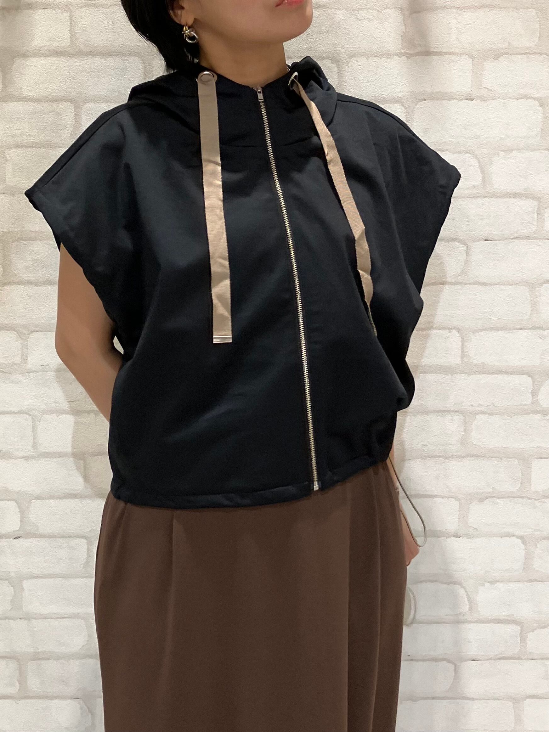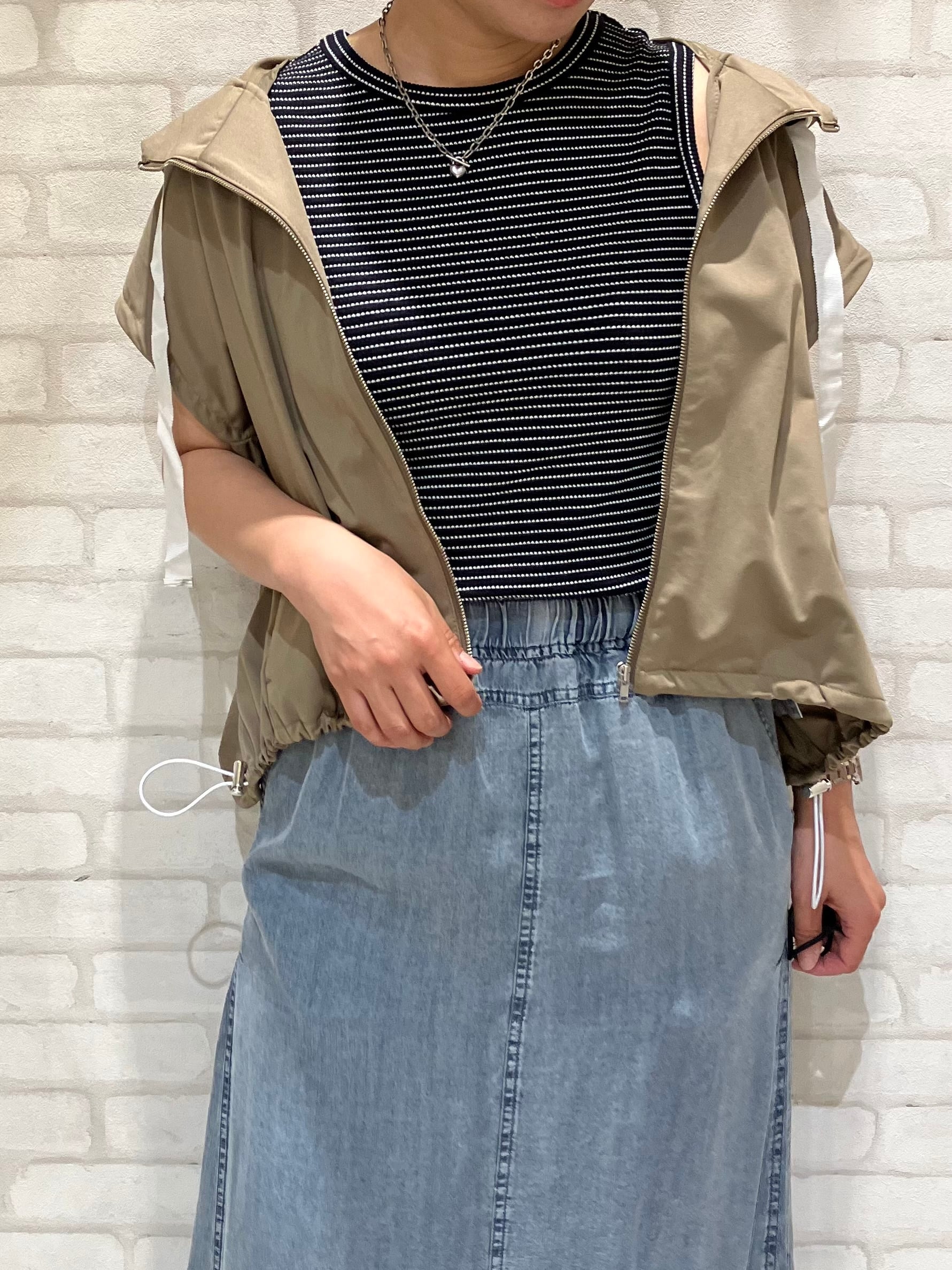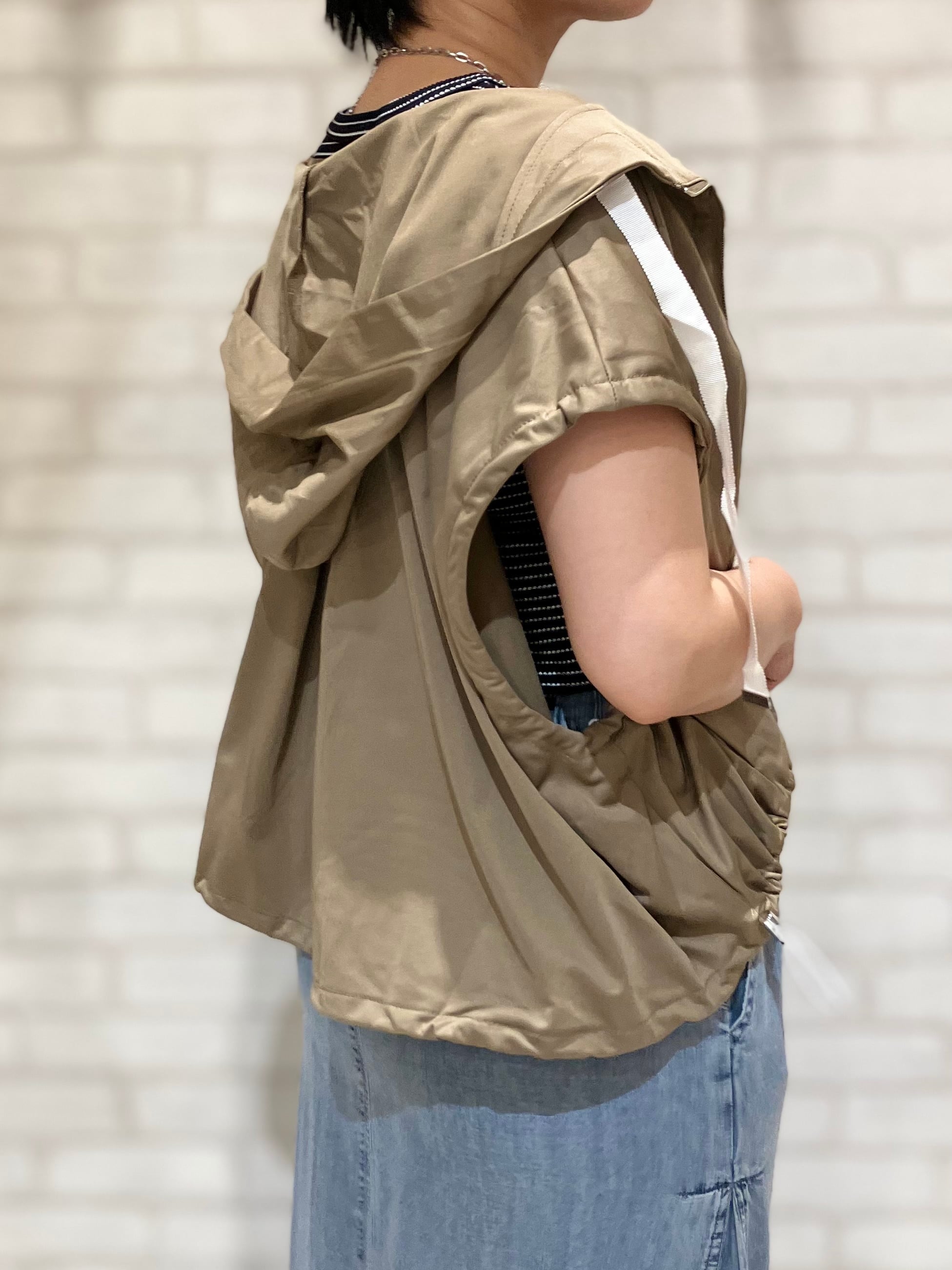 オーバーシルエットのショートベストで、フレンチスリーブの袖丈です。