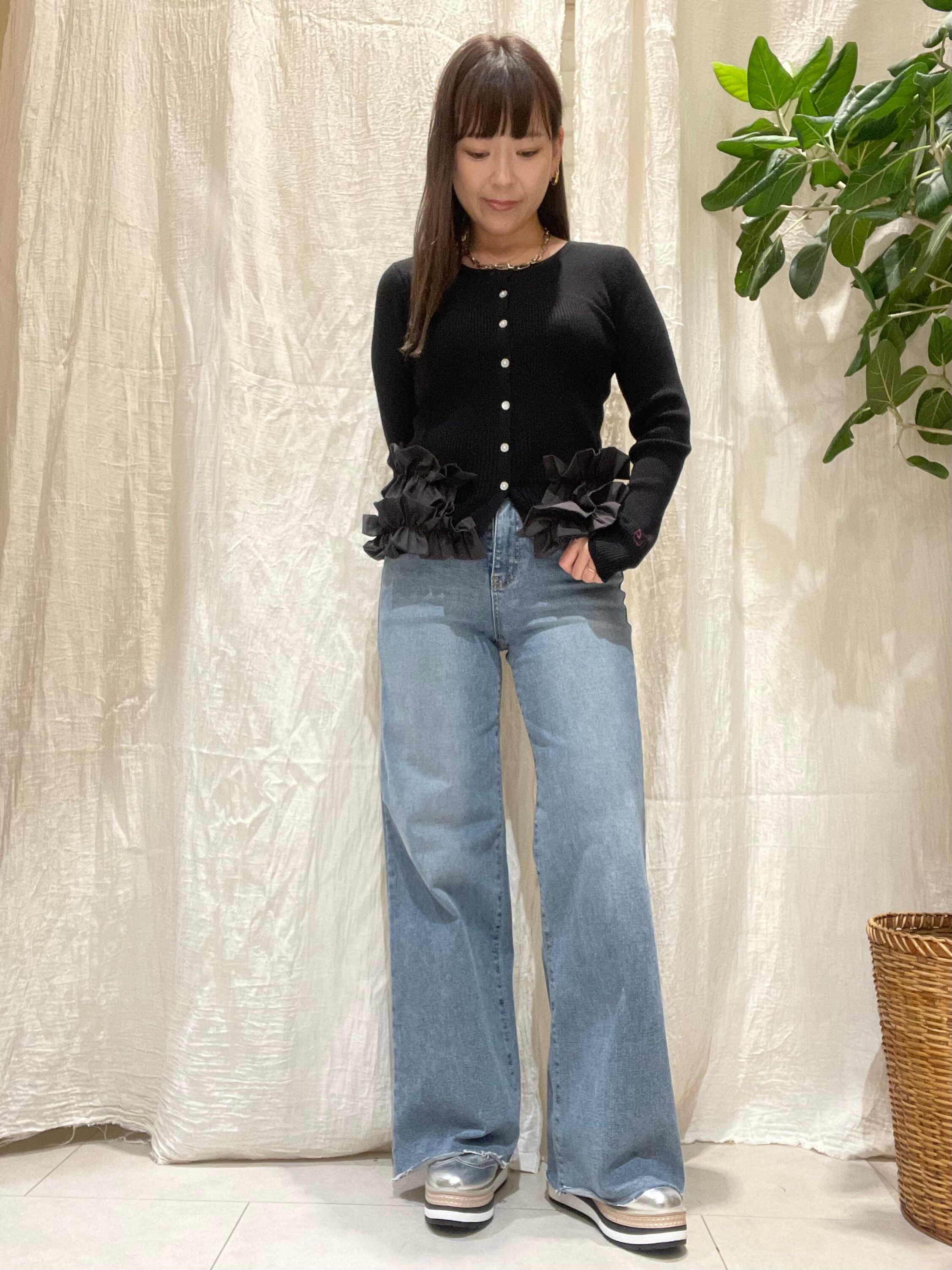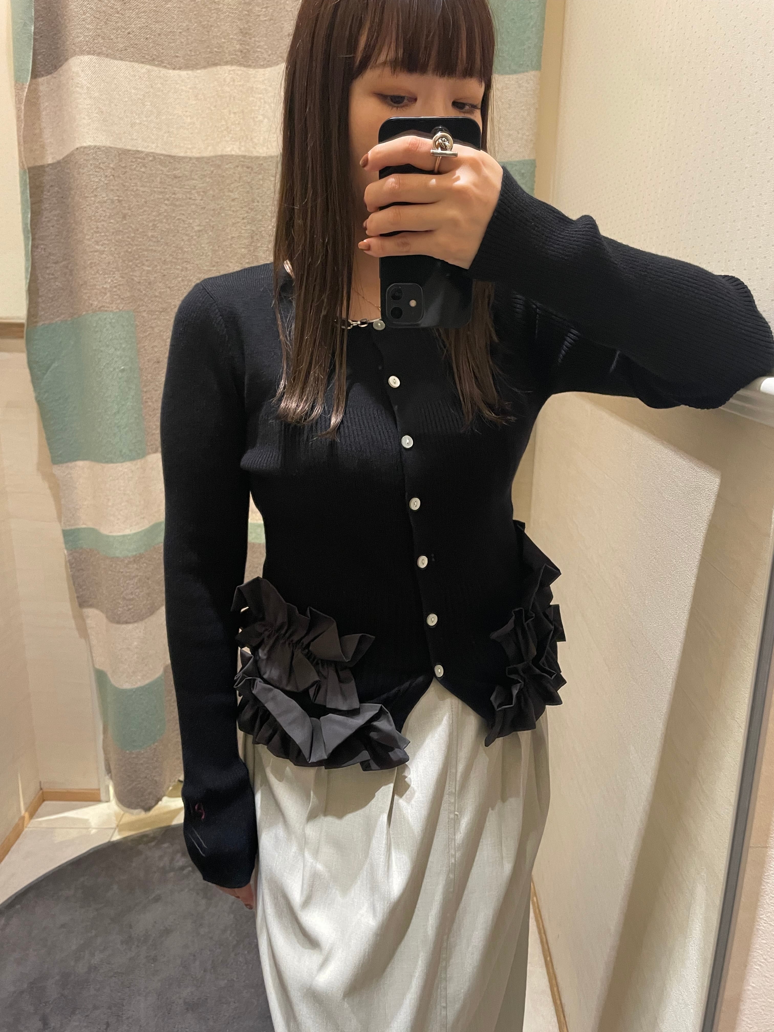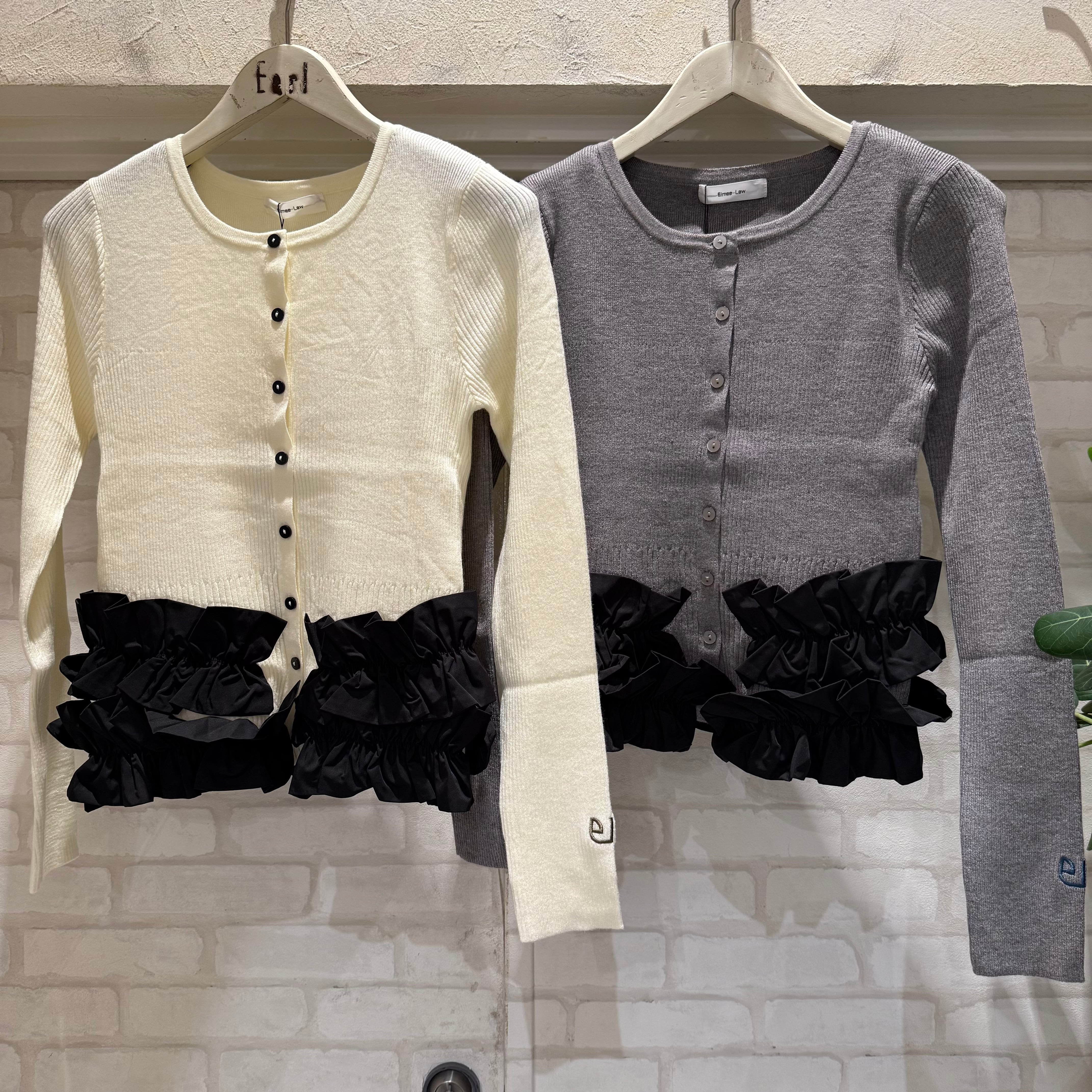 ギャザーフリルヘムリブニットカーデ Eimee Law(エイミーロウ)