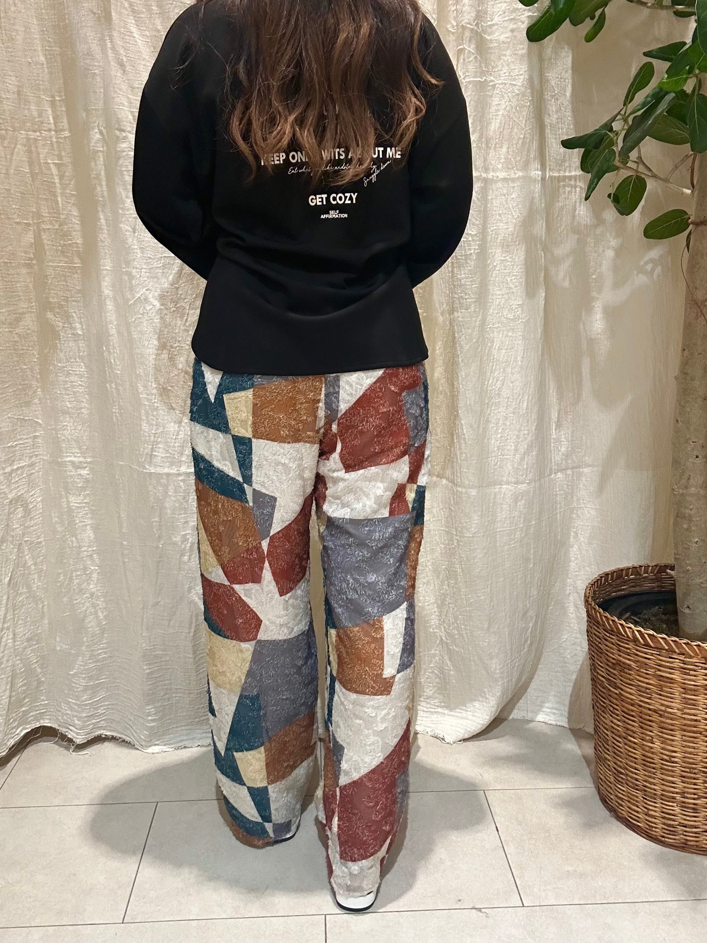 リラックス感と大人っぽさのあるジャガード柄パンツです。