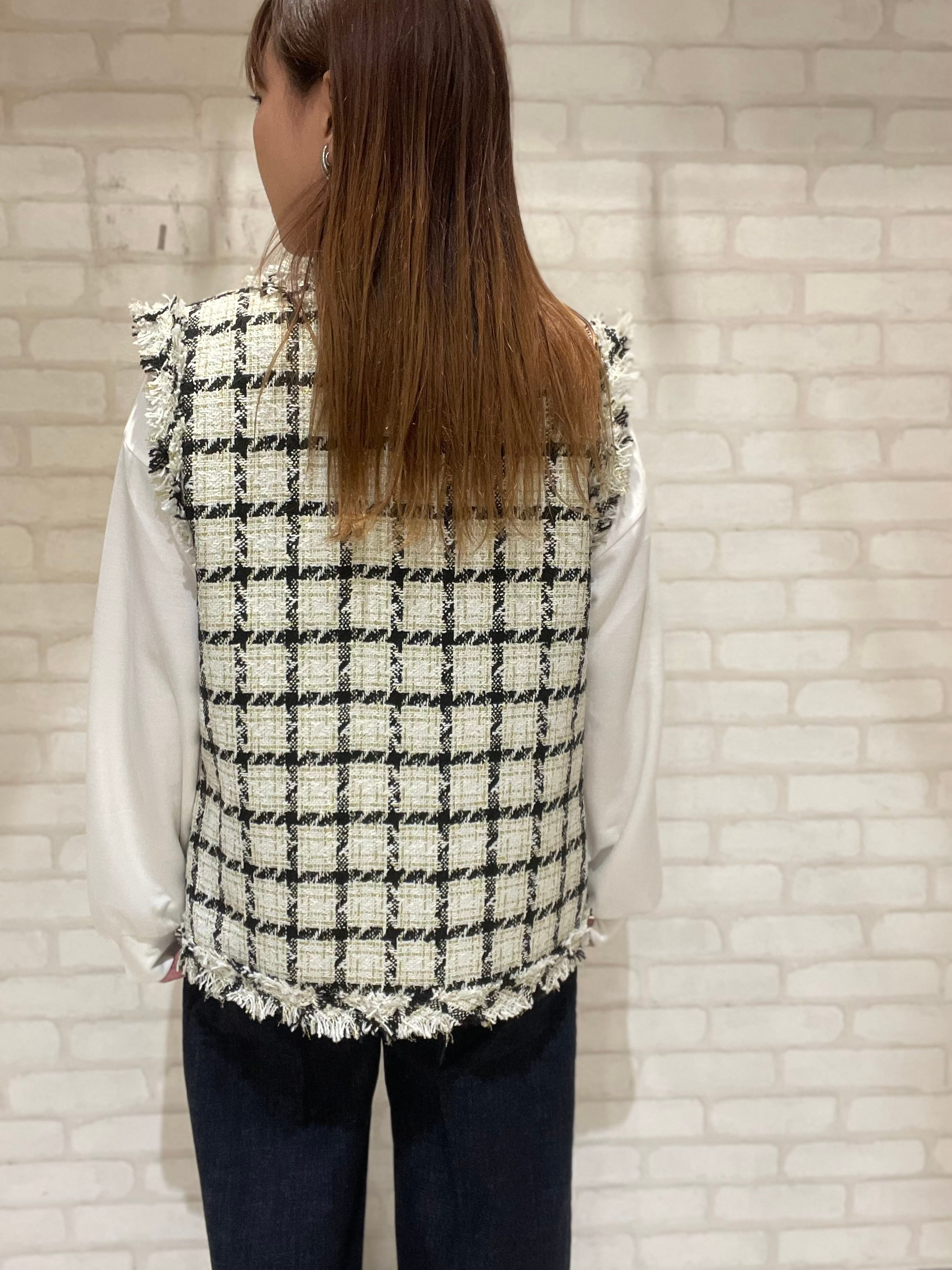 チェックツイードロングベスト EDGE LINE(エッジライン)