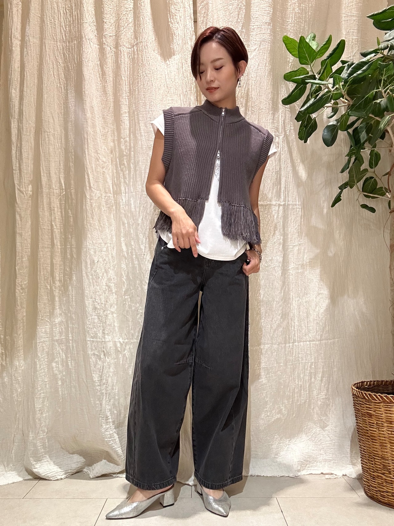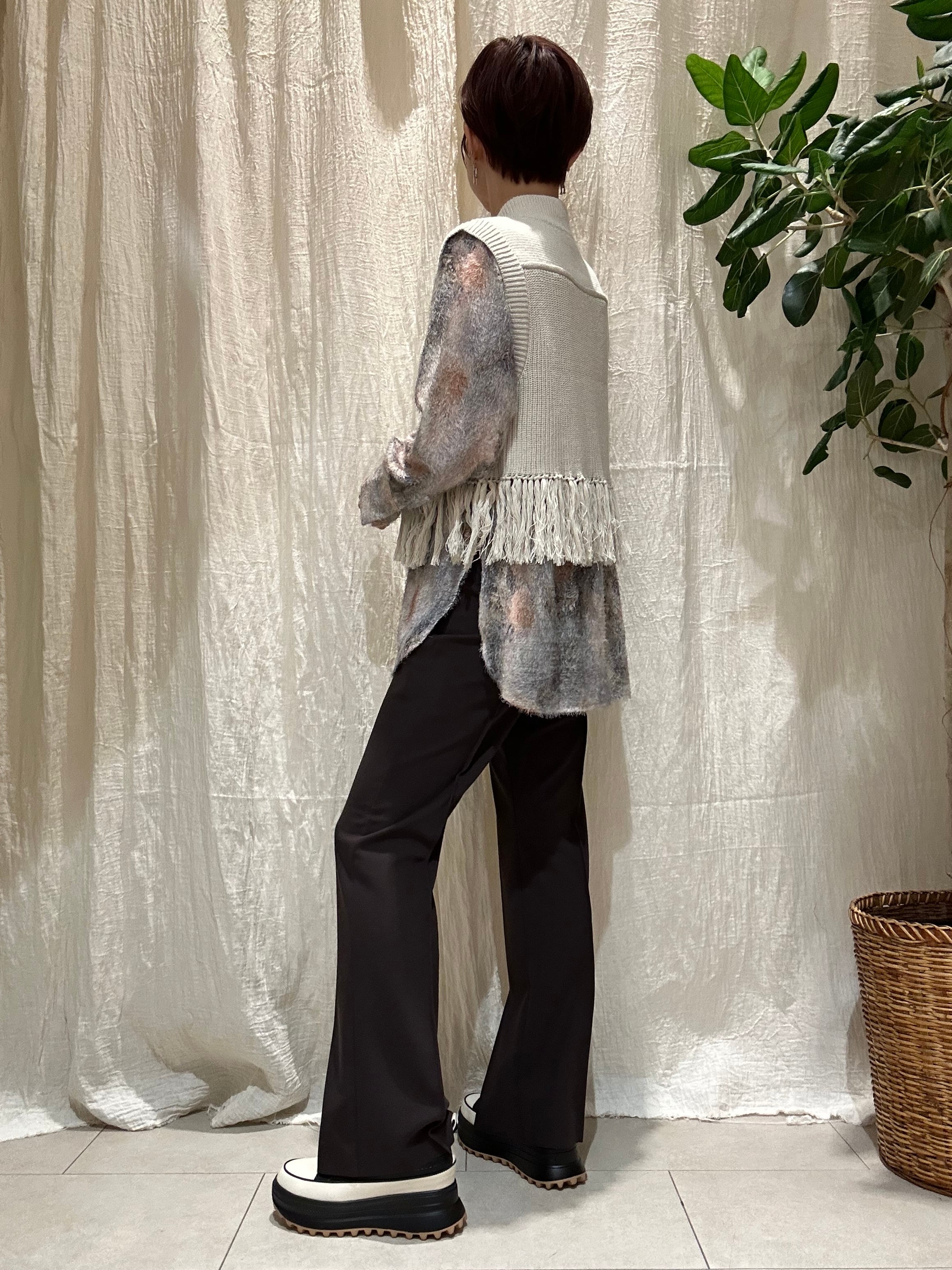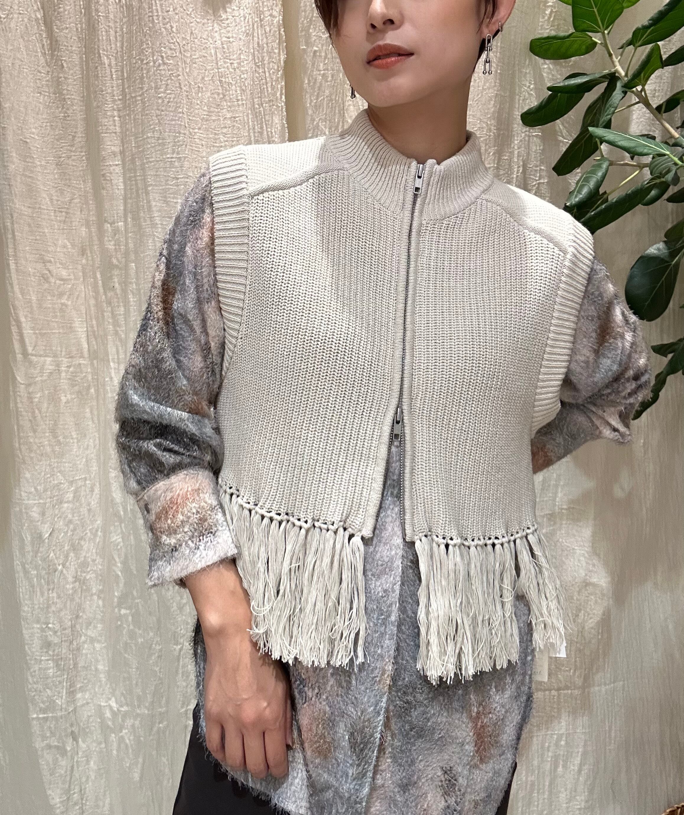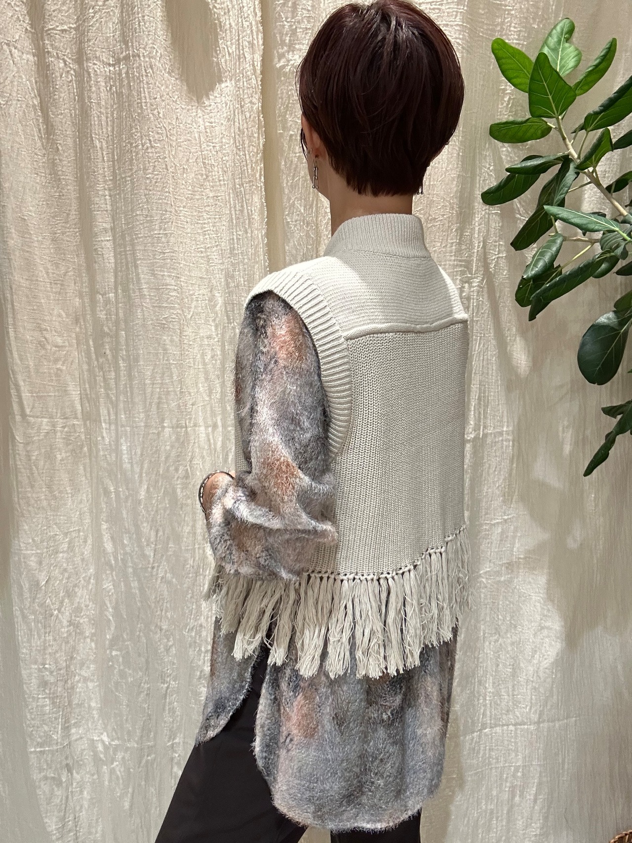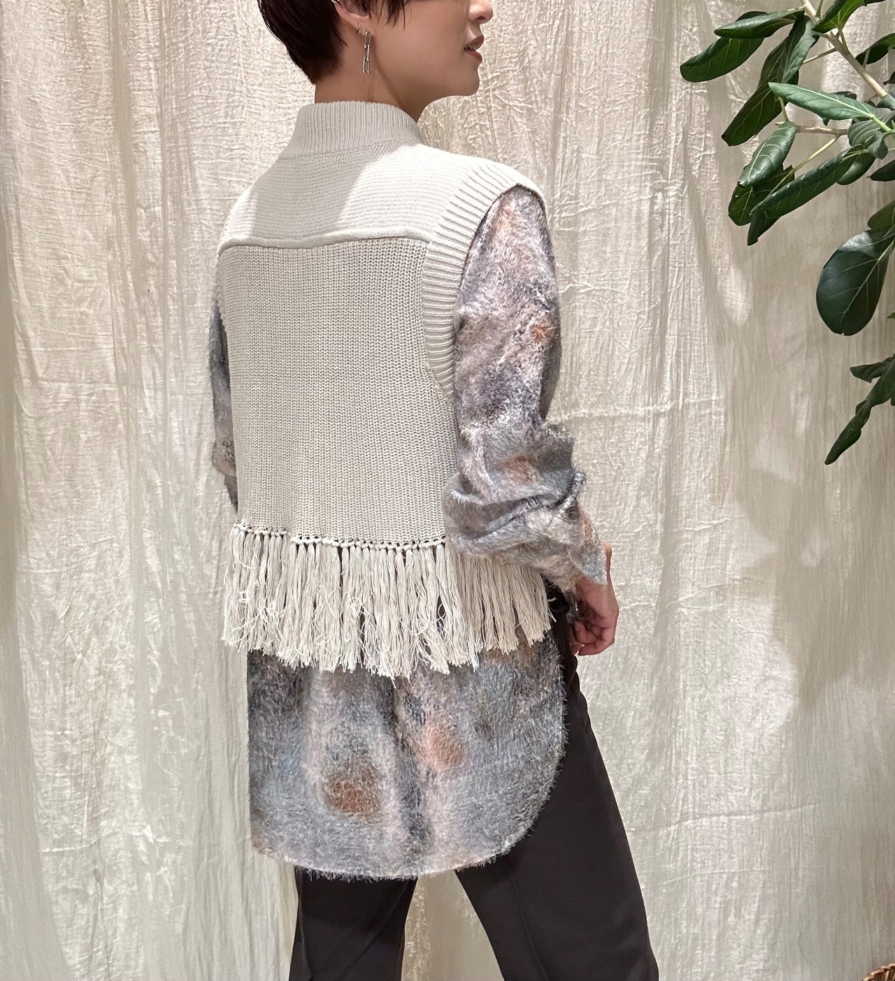秋冬らしいボリュームフリンジが印象的なニットベスト。