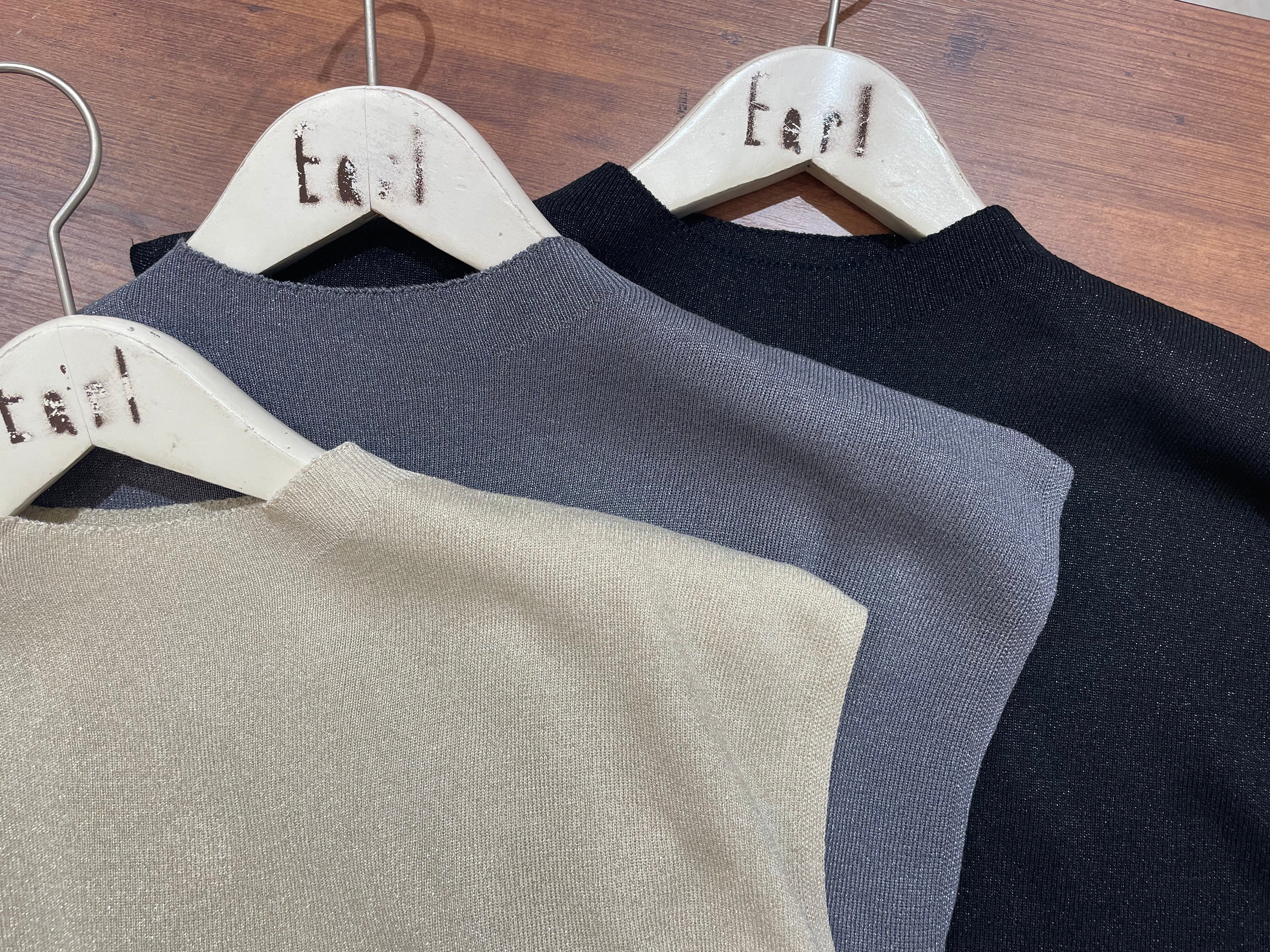 シンプルで使いやすいフレンチスリーブニットはトレンドのラメ素材を使用して
