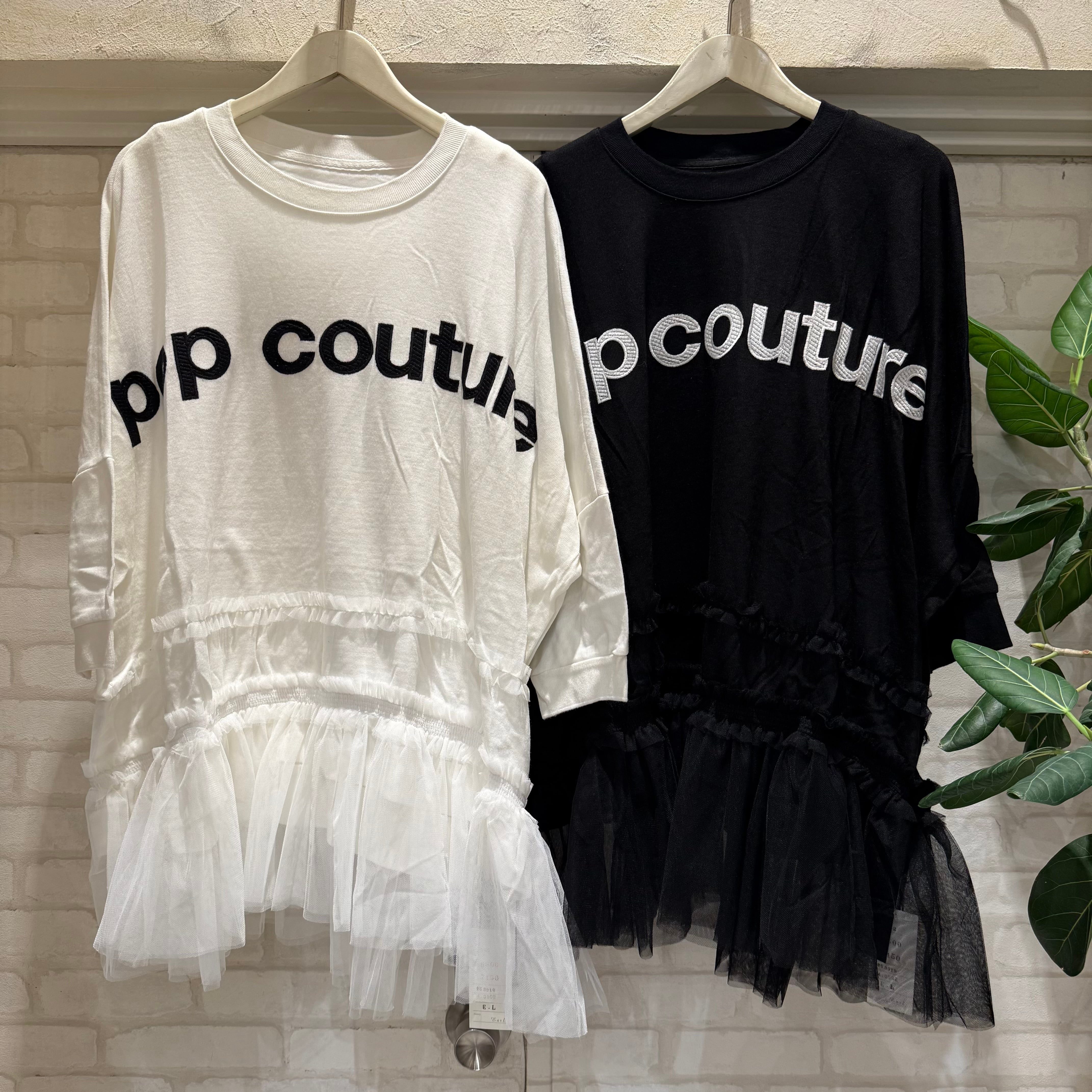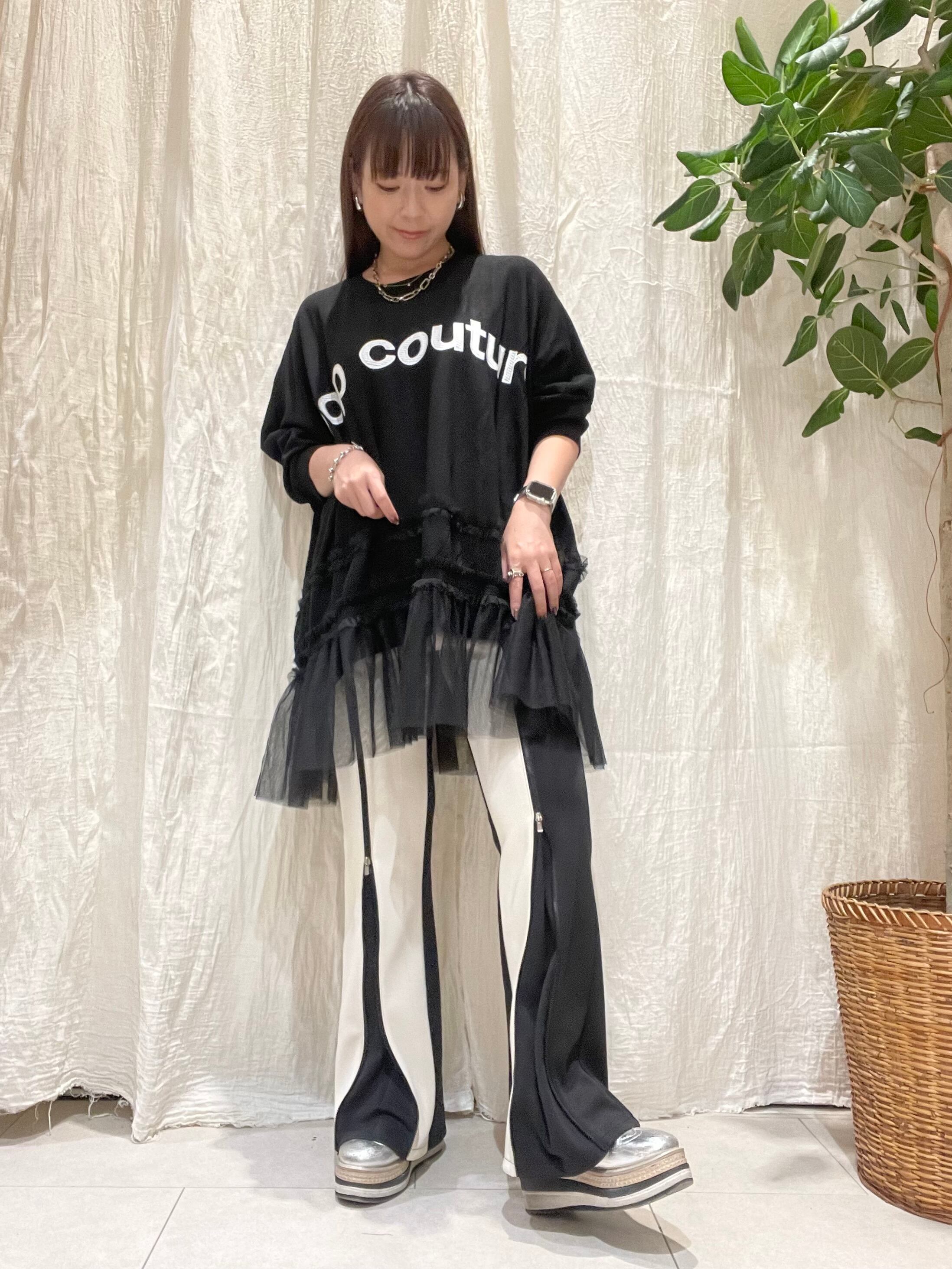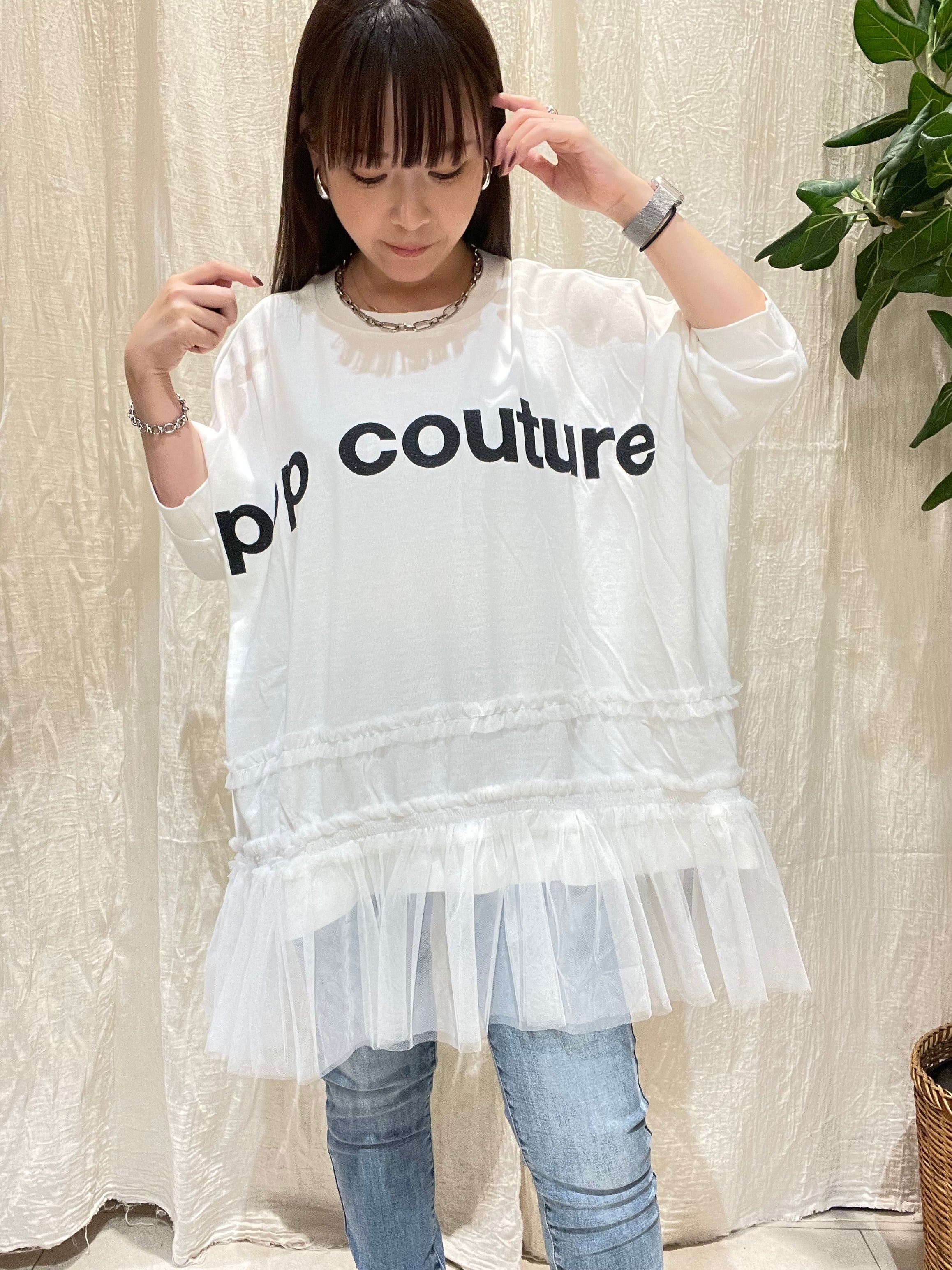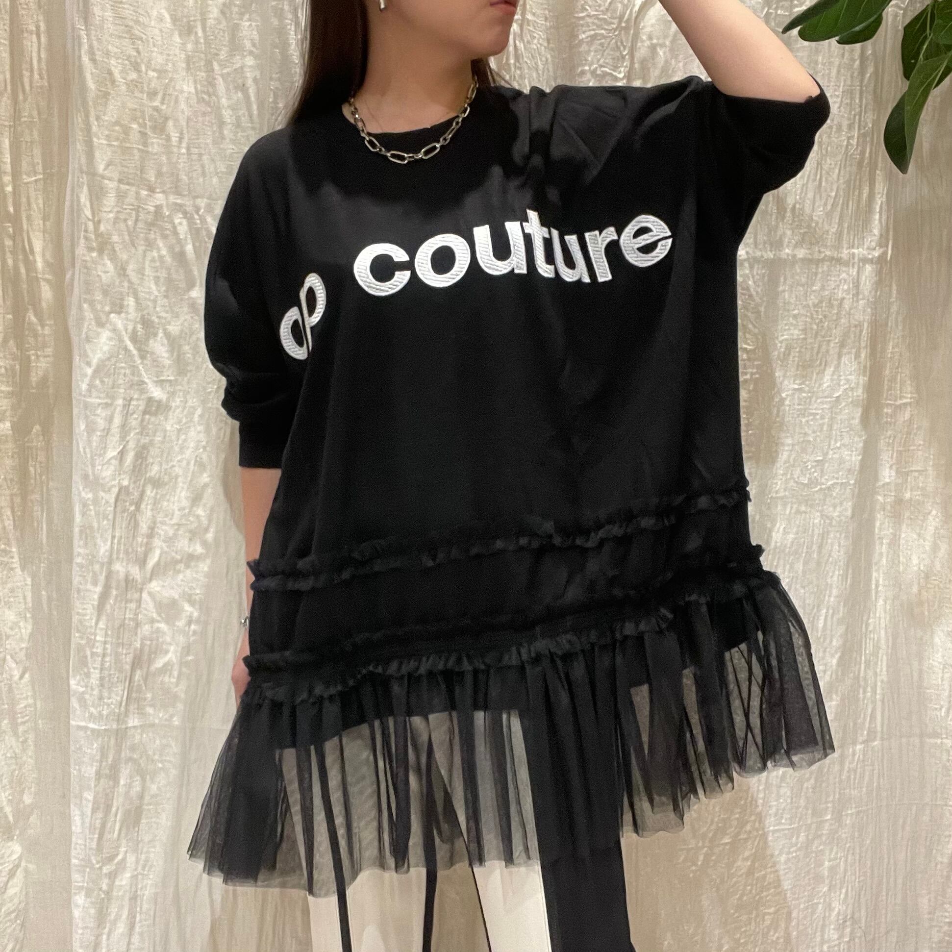 カジュアルなBIGシルエットのプルオーバーに甘めのチュールを施した絶妙なバランス。