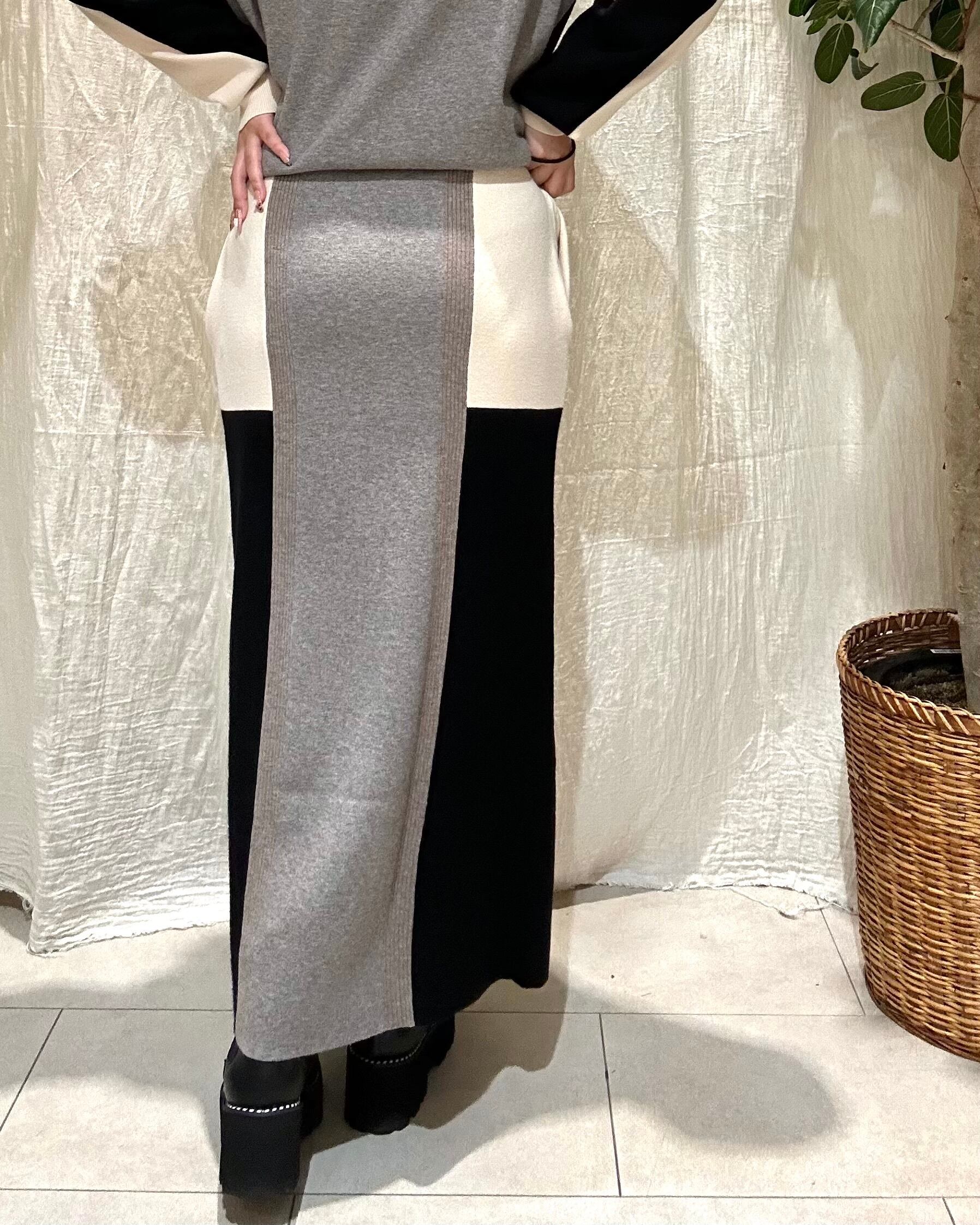 ブロック配色ニットスカート DONA MARIE(ドナマリー)