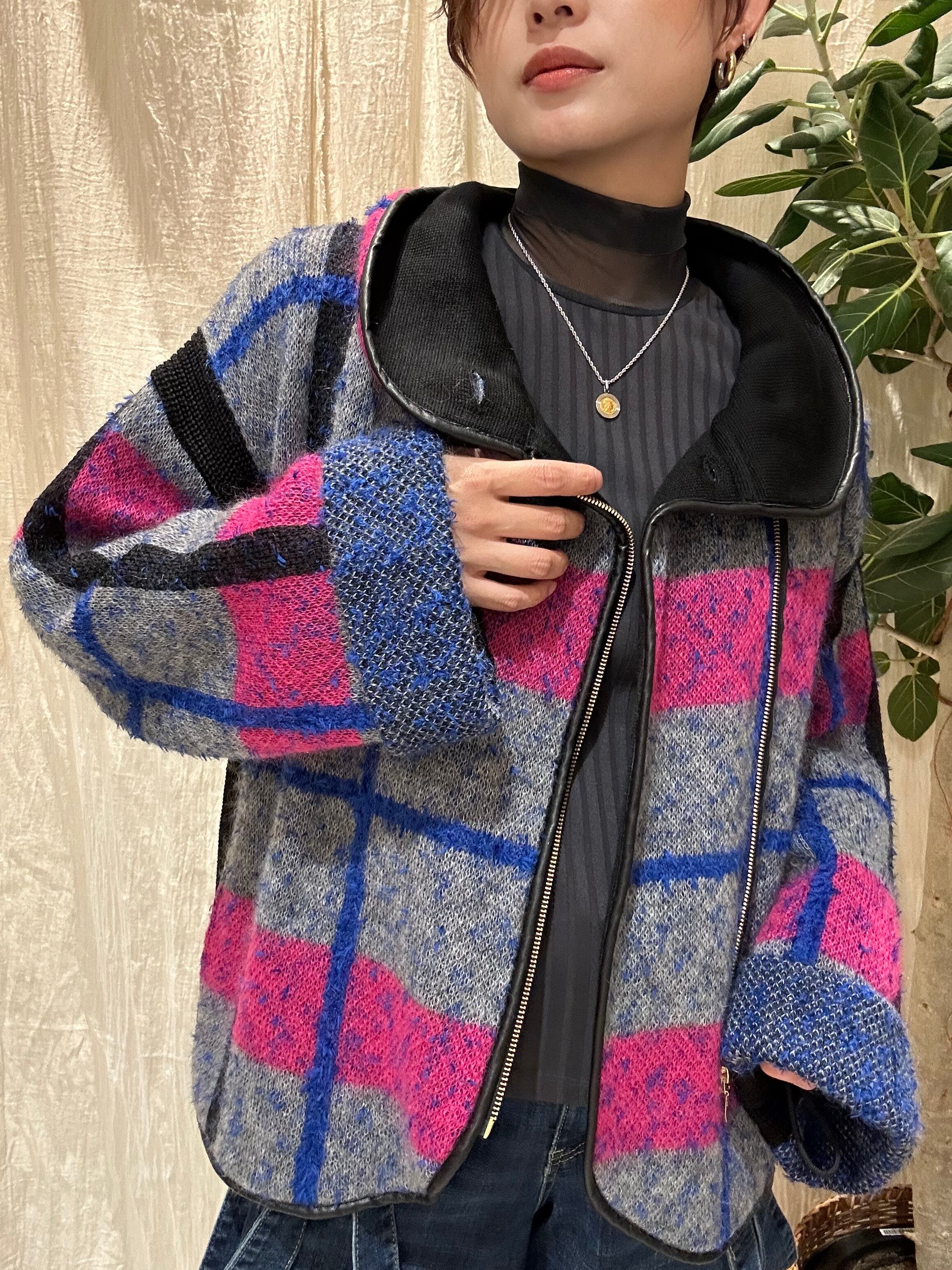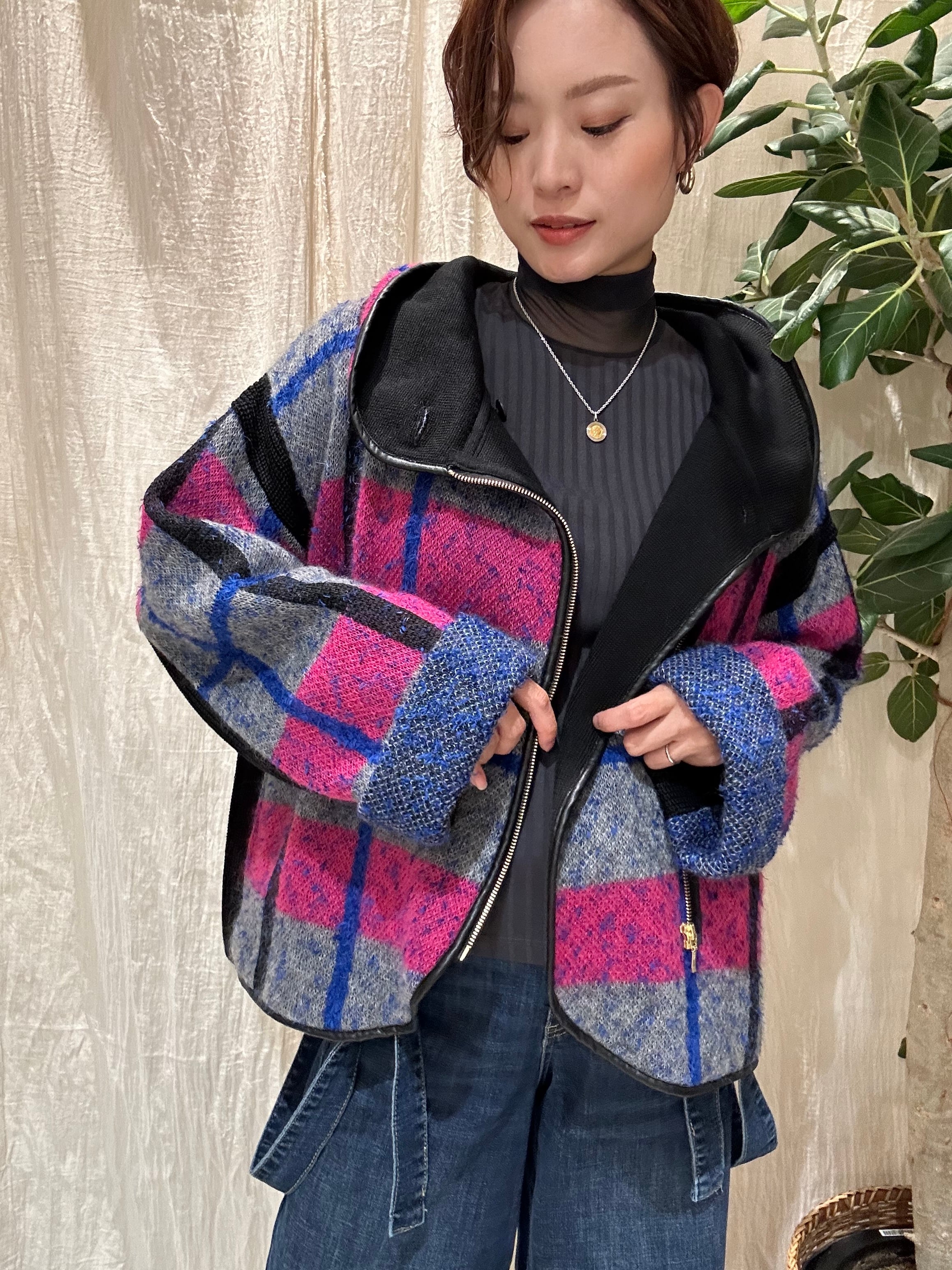 チェックニットライダースジャケット EN‘DAY(エンデイ)