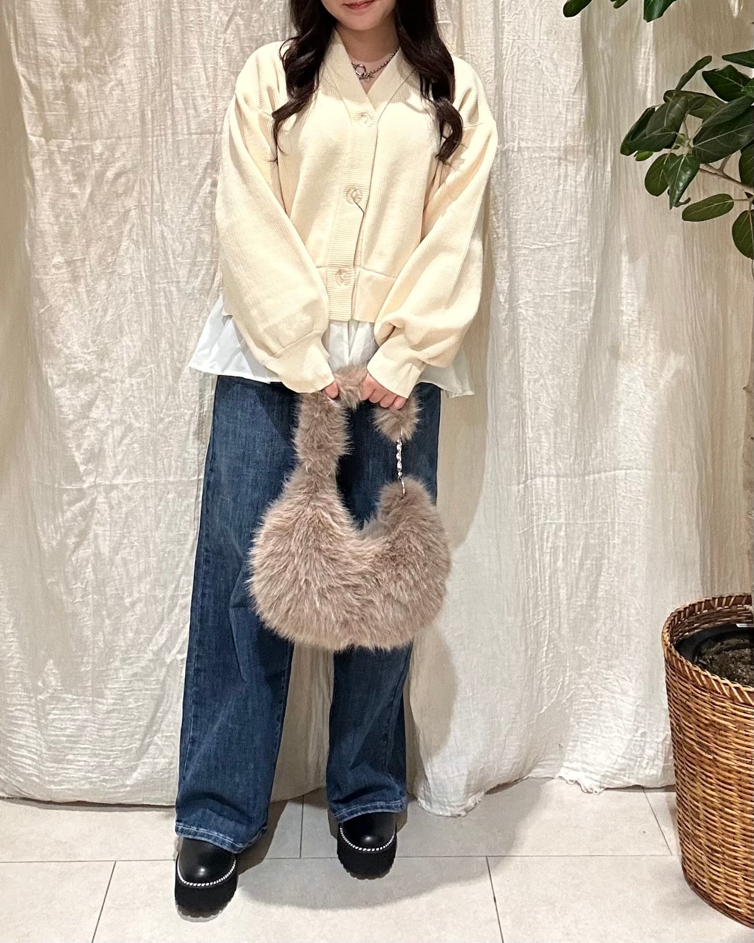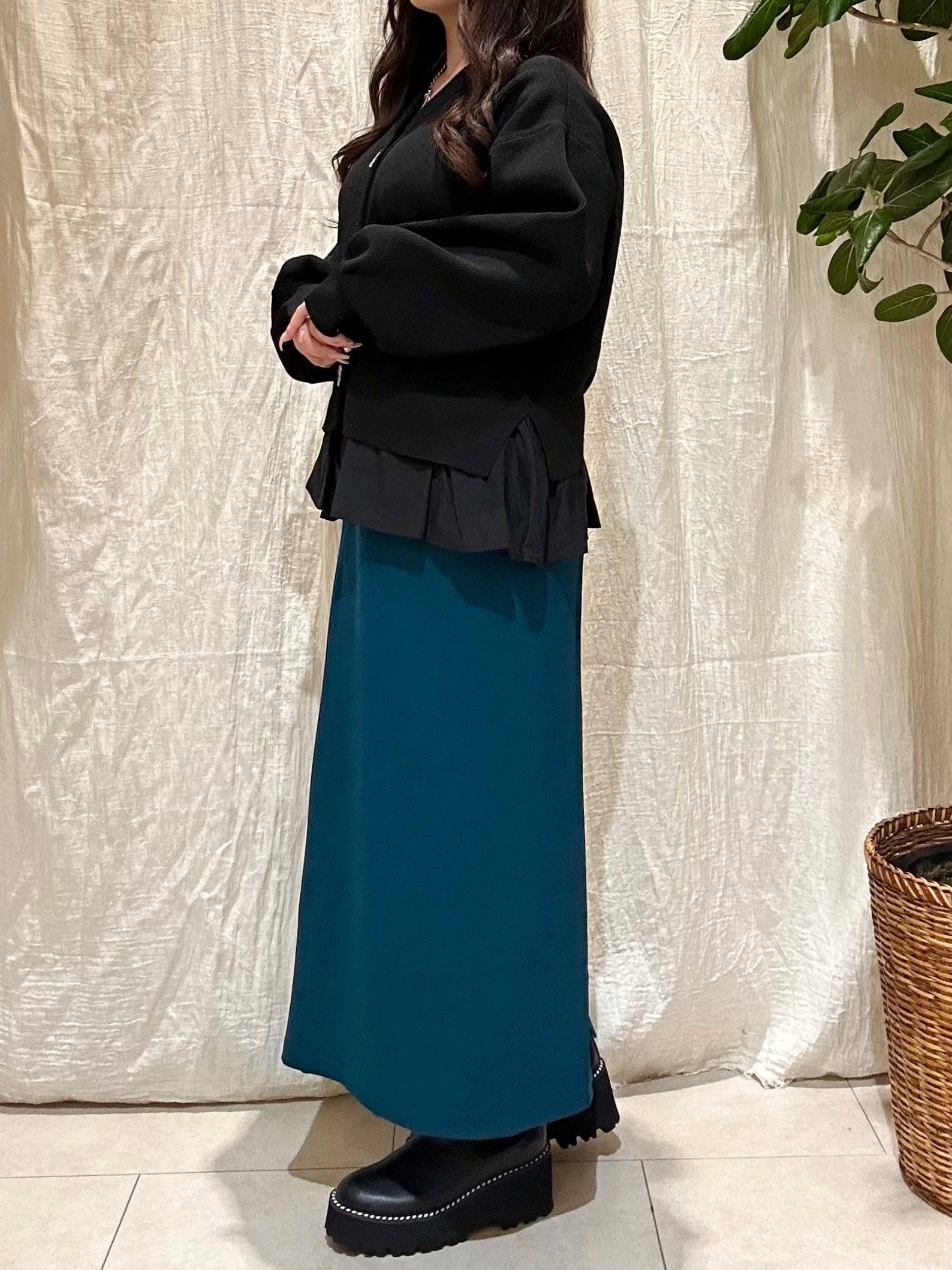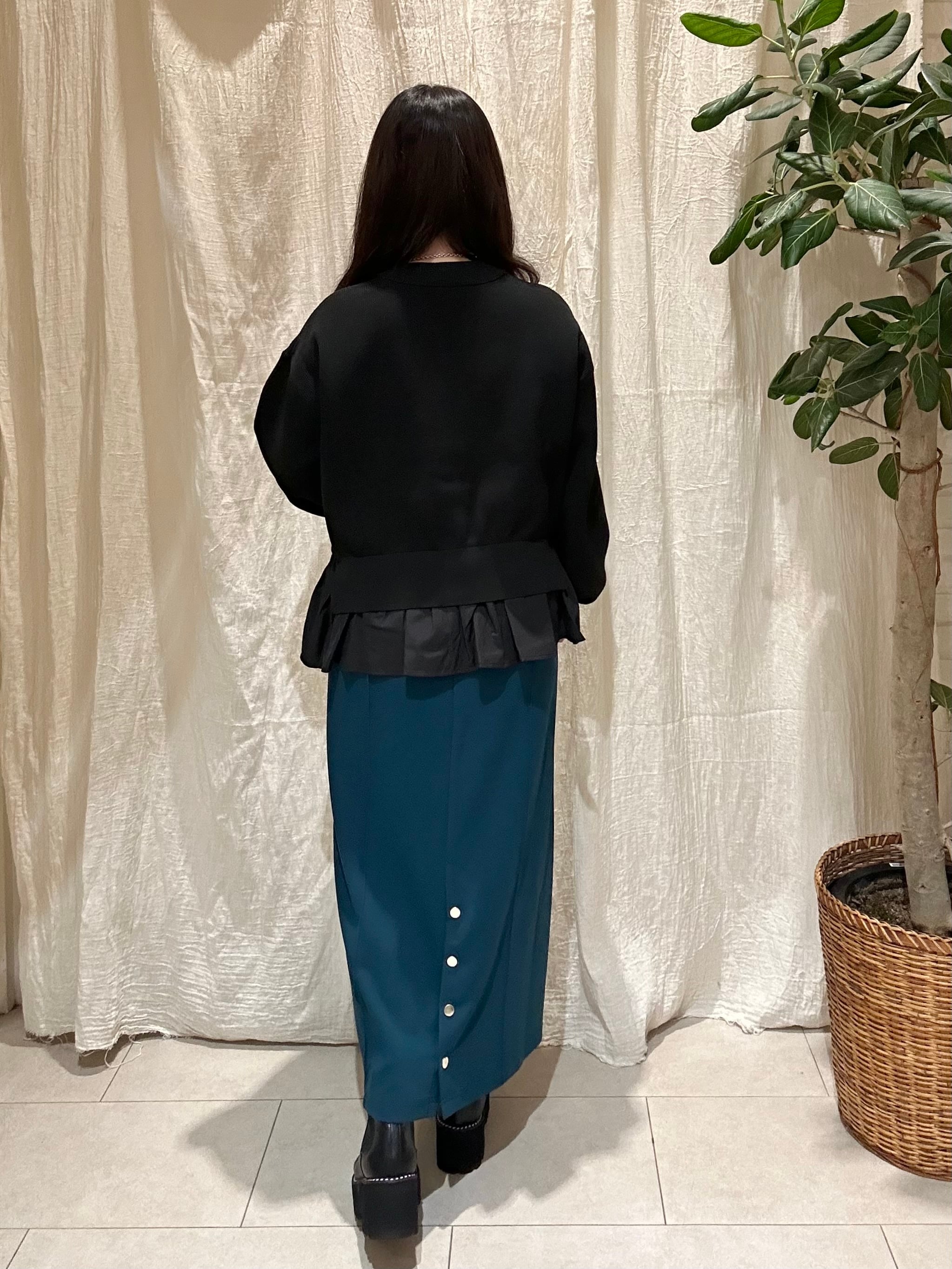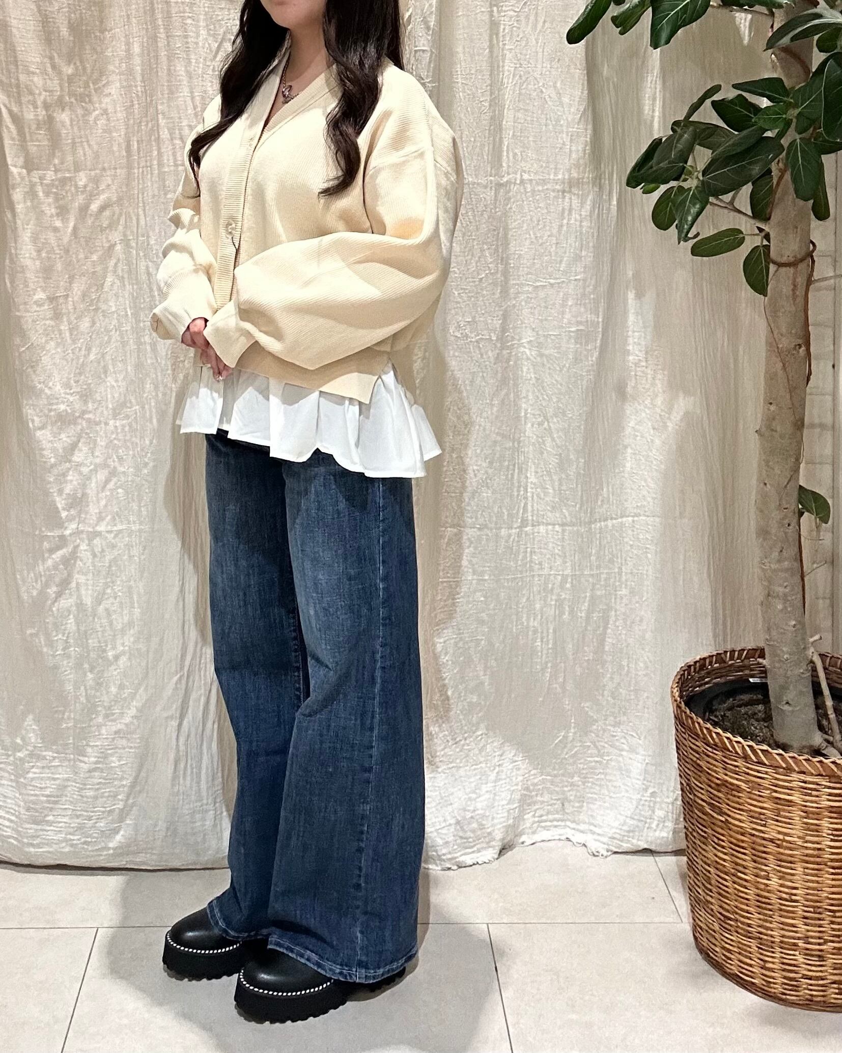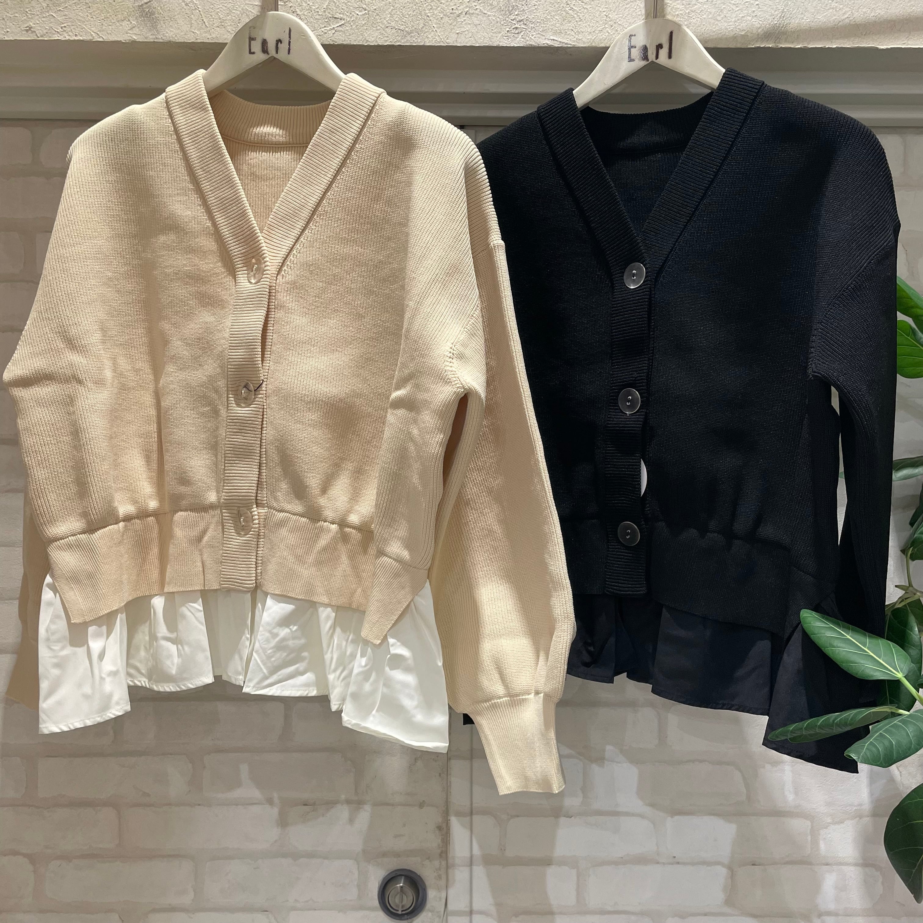 裾部分がフリルになったカーディガン。
