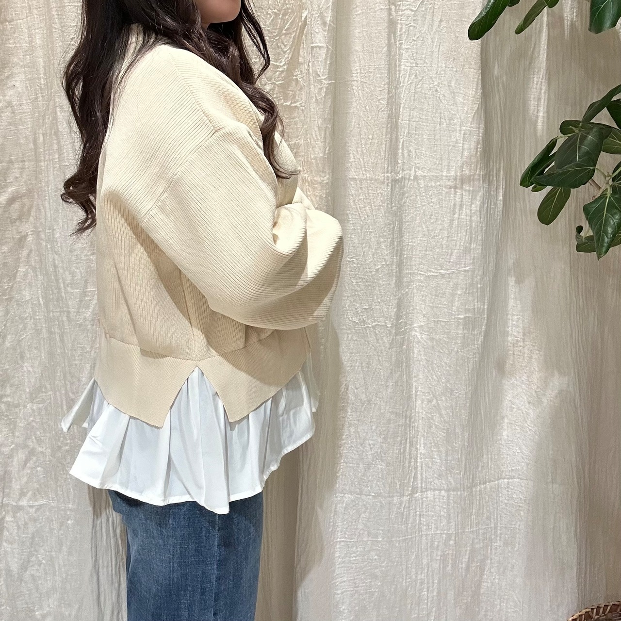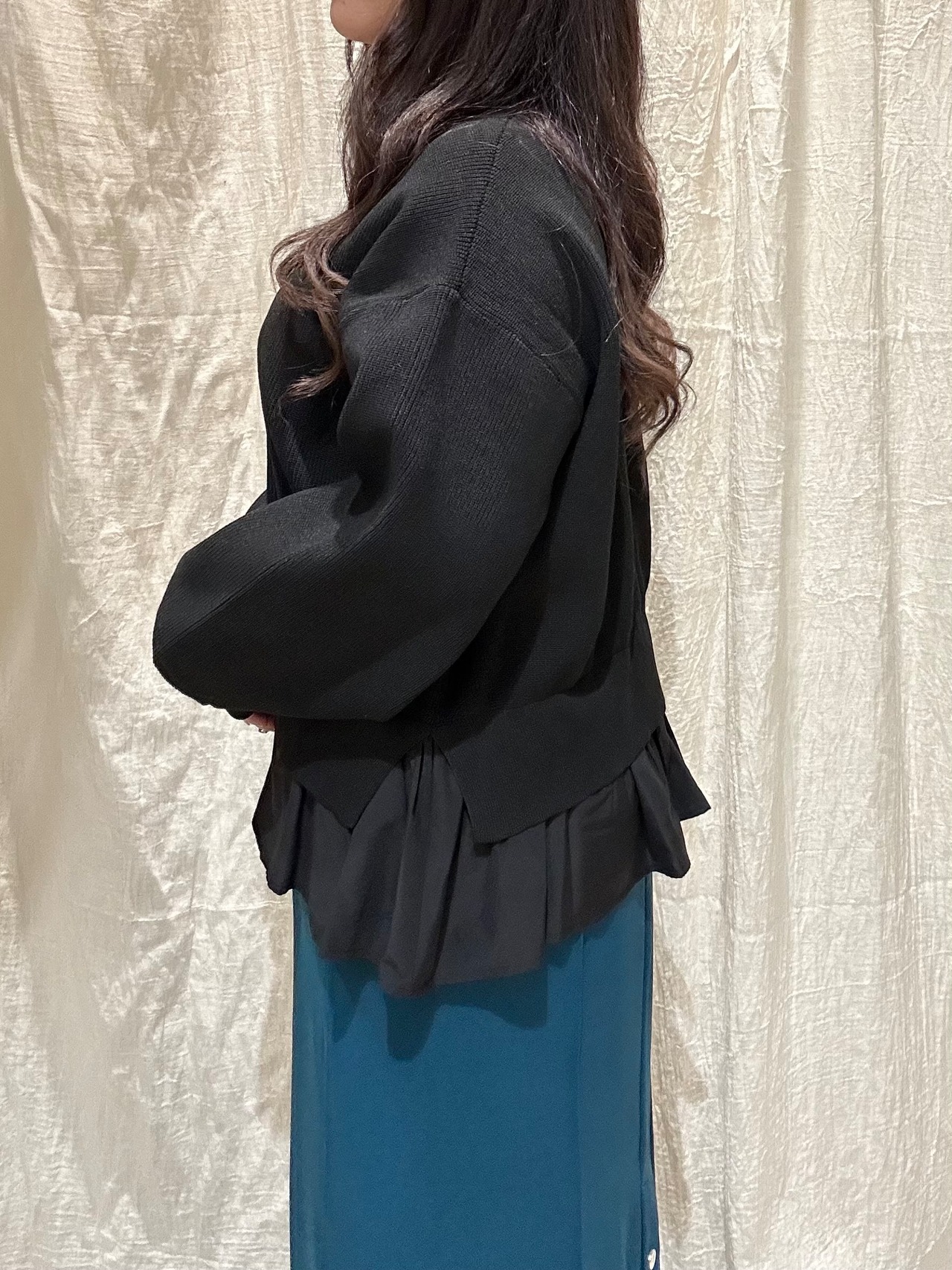 異素材ドッキングニットカーディガン Palm Riche(ポームリシュ)