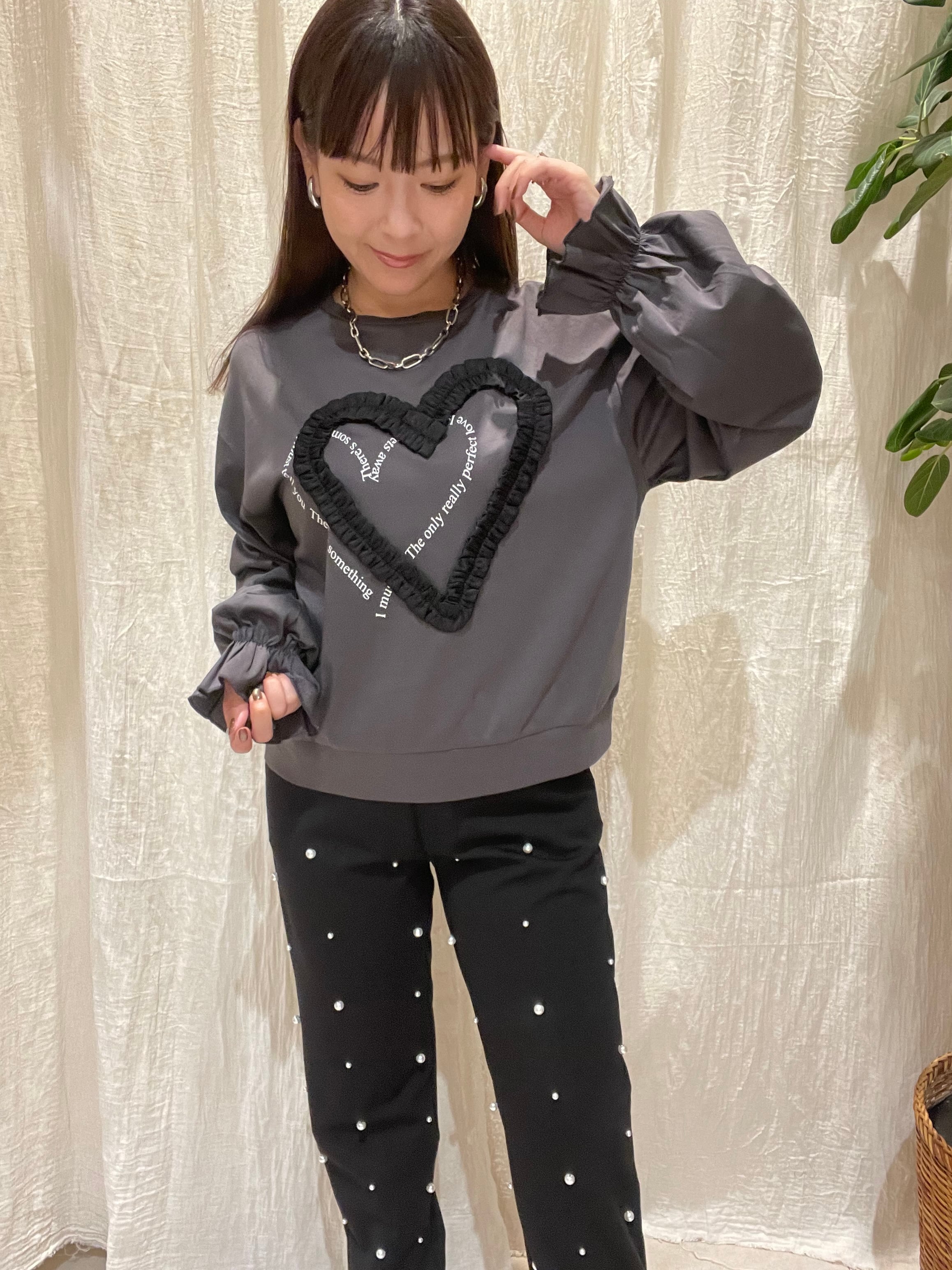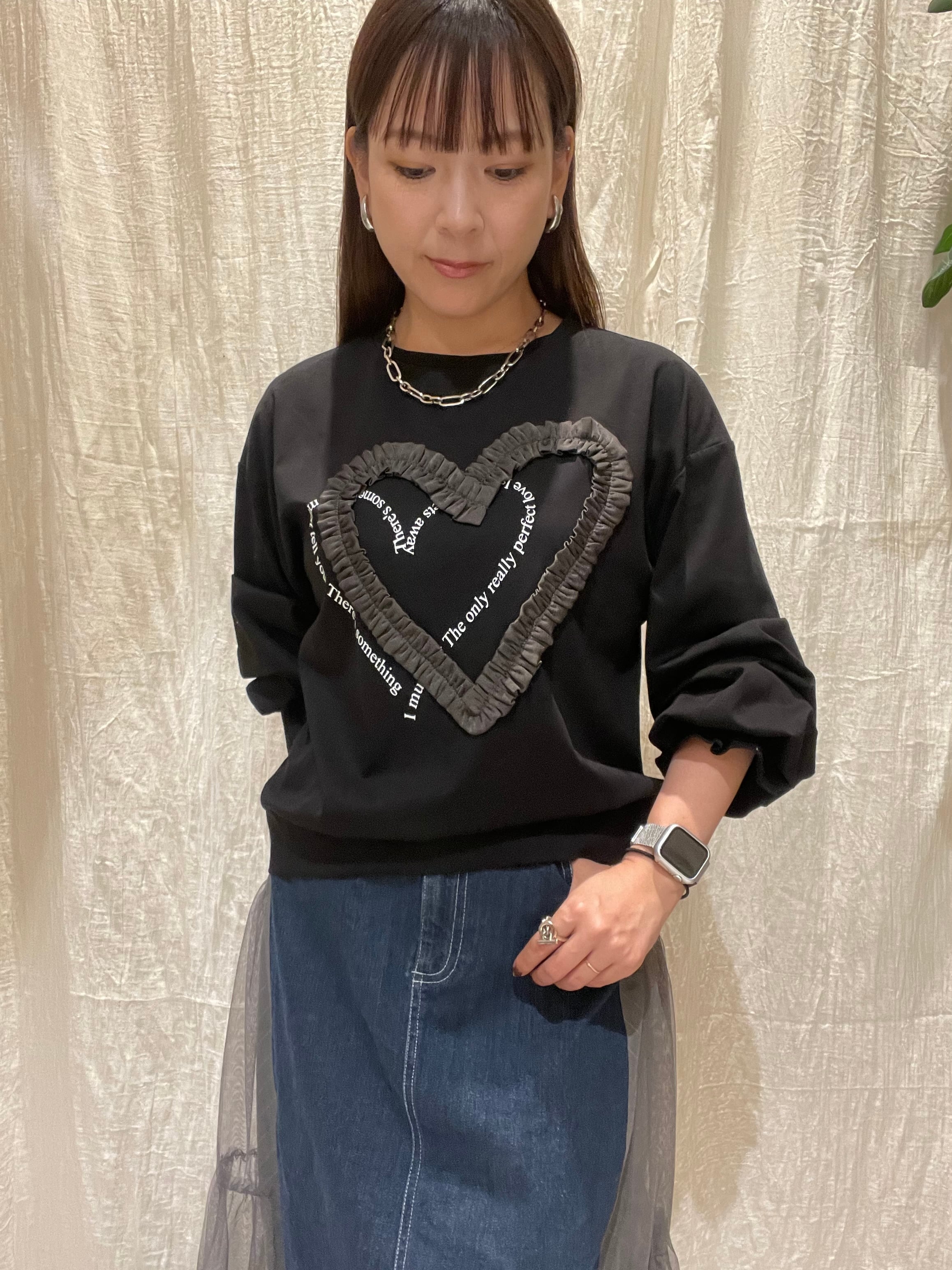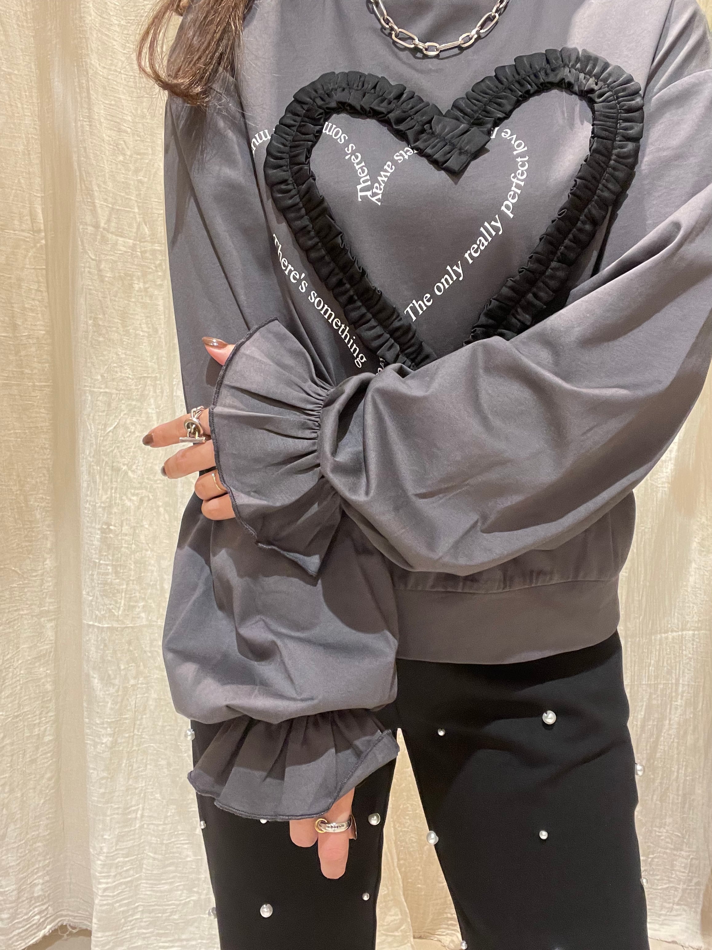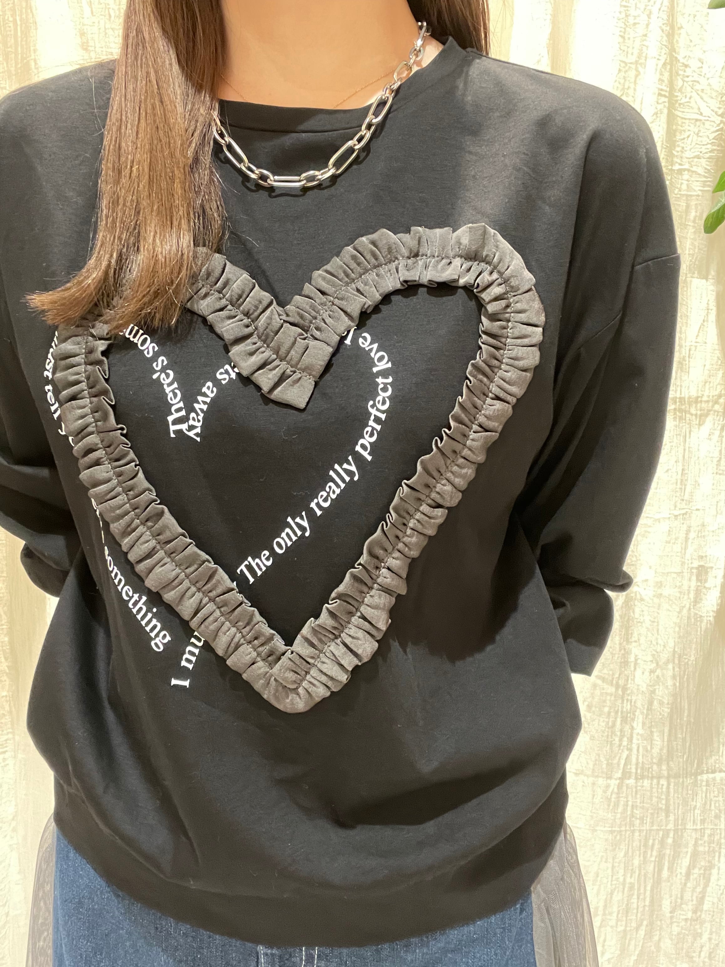 胸元にワンポイントのハートリボンがあしらわれた、キュートなロンTです♪