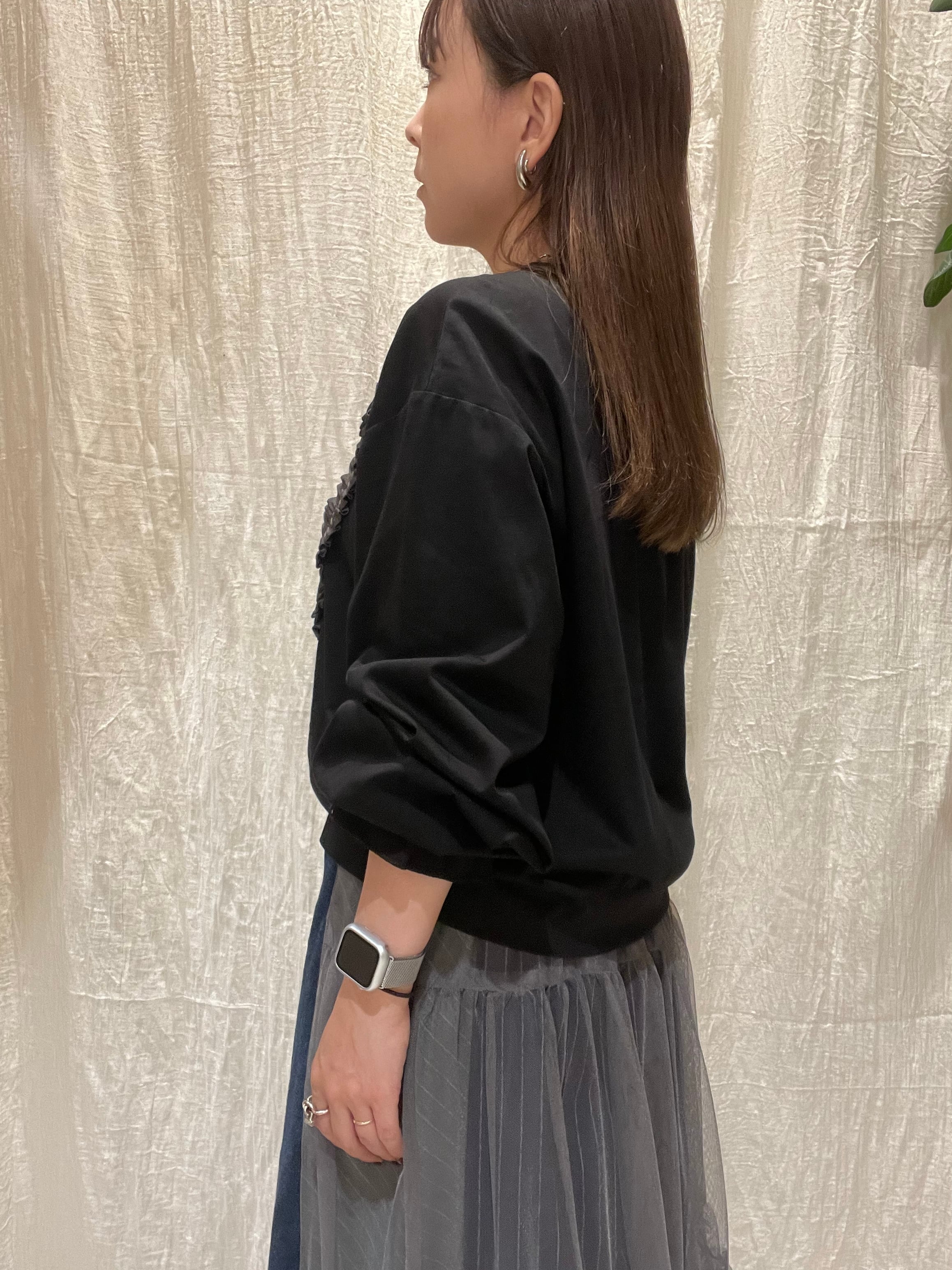 シンプルなデザインながら、甘すぎない絶妙な可愛さで、どんなコーデにも合わせやすいアイテムです。1枚で着てもオシャレな万能トップスです◎