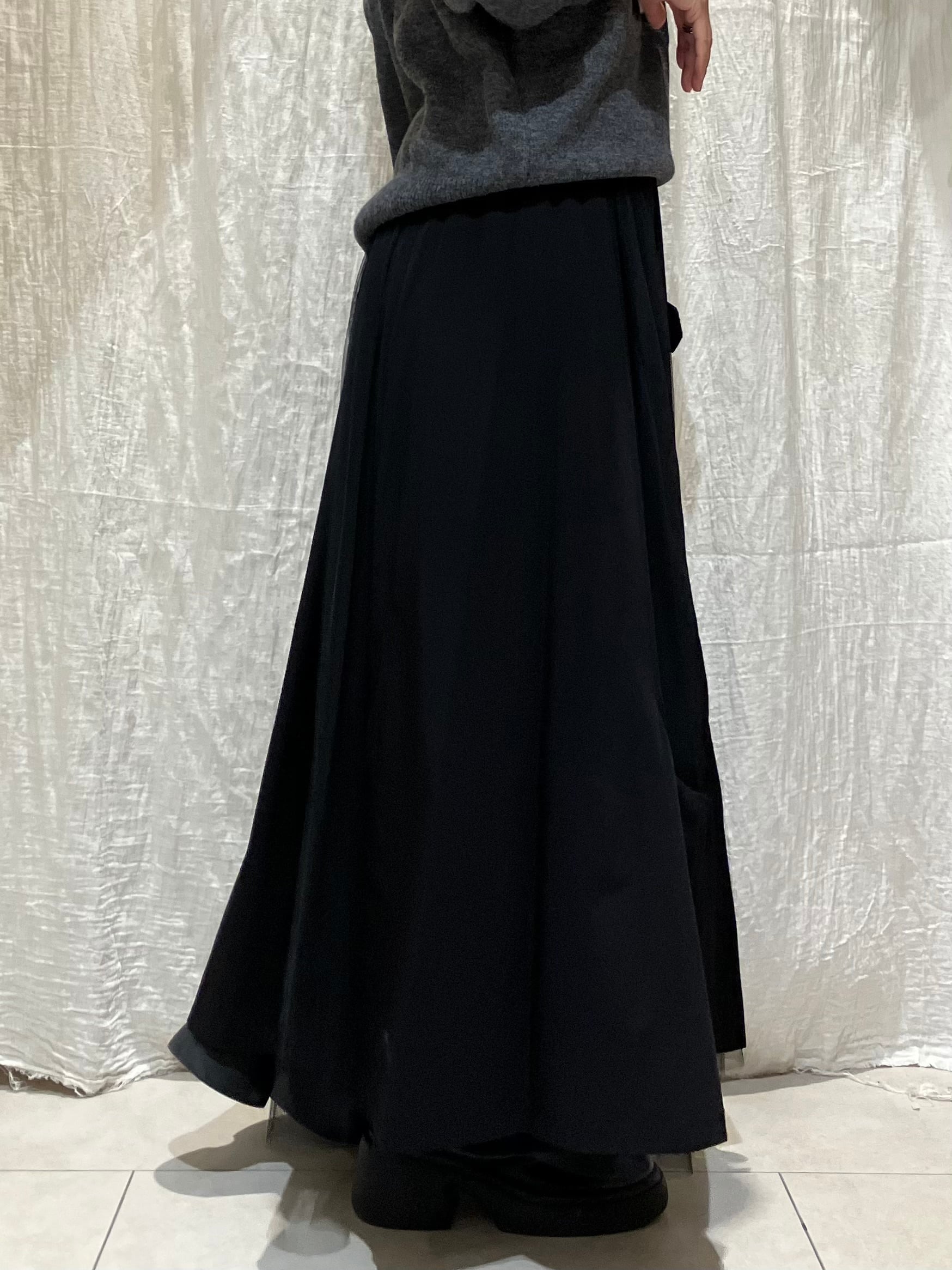 チュールと布地を組み合わせた異素材切替が魅力のベルトデザインチュールスカート。