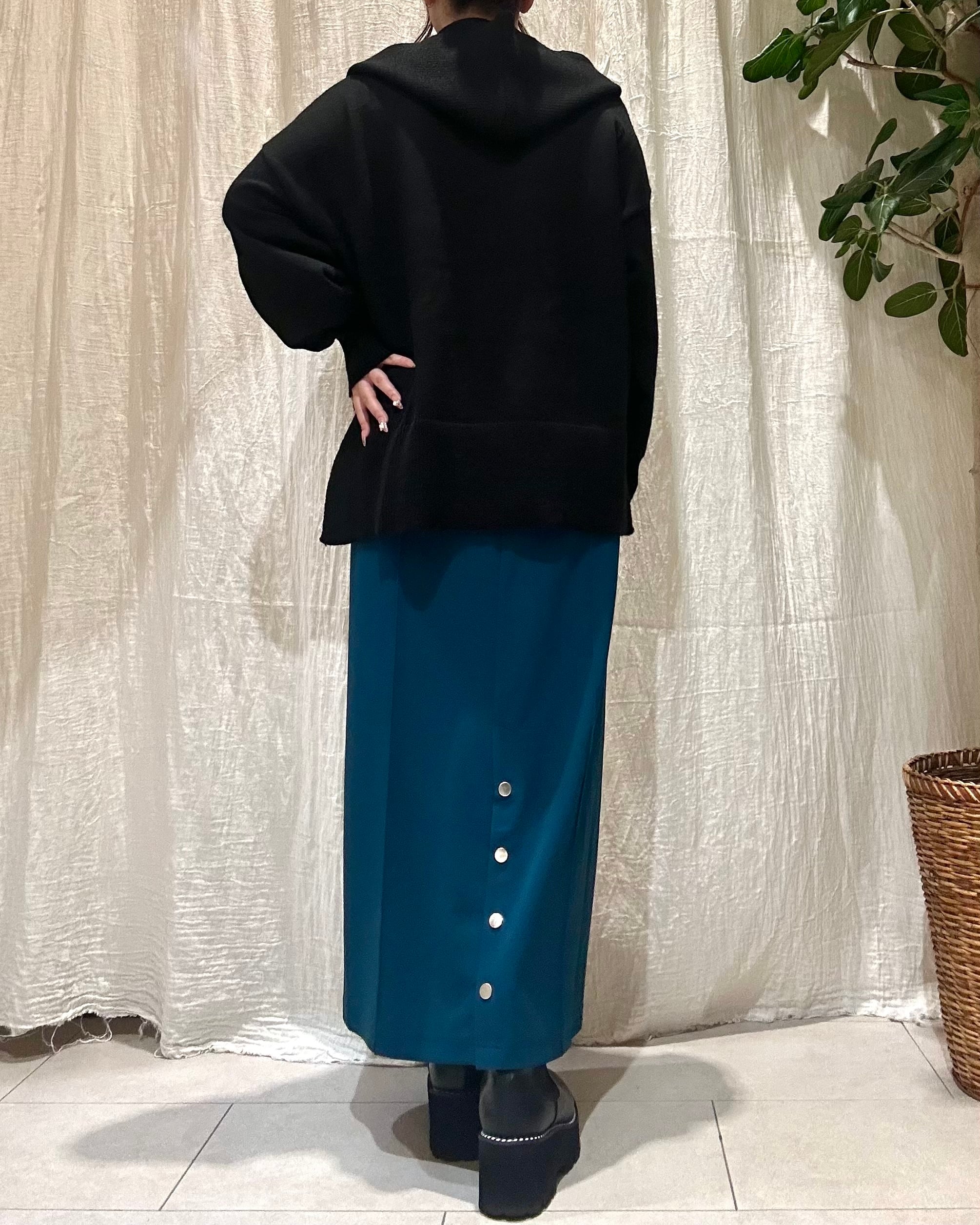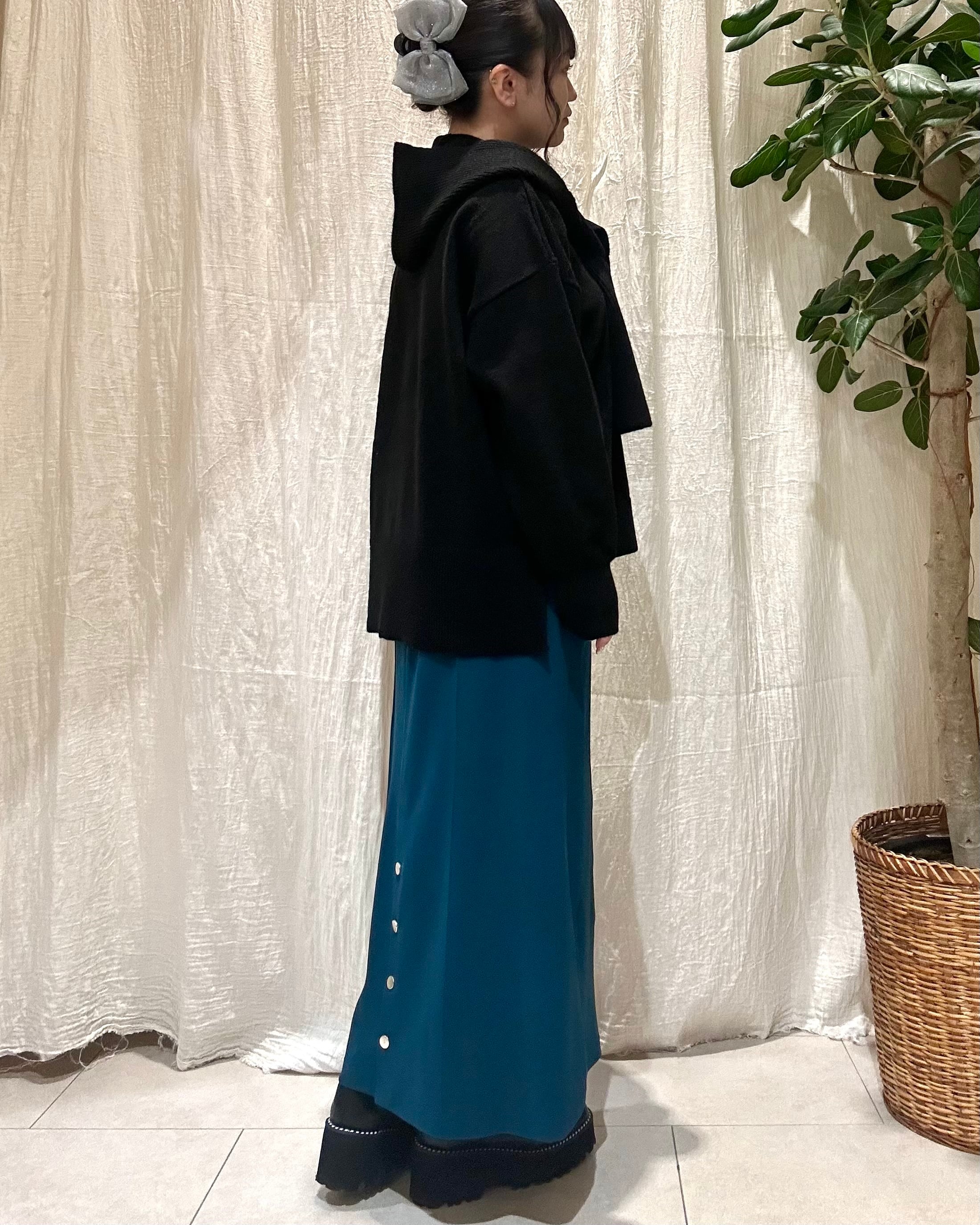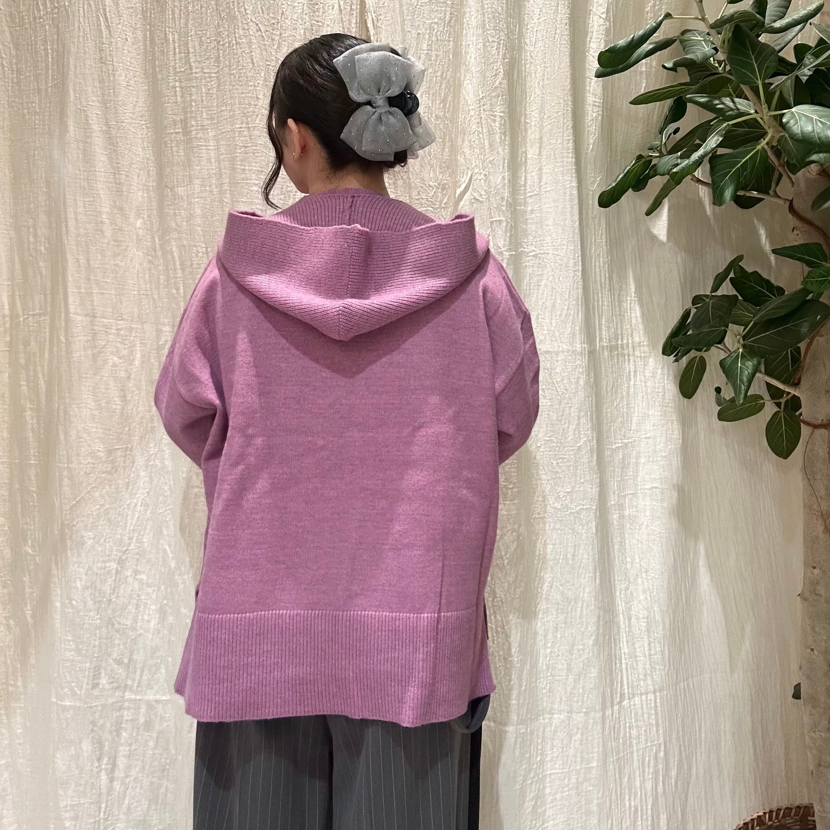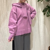 フード付きマフラーがセットのニットトップス。