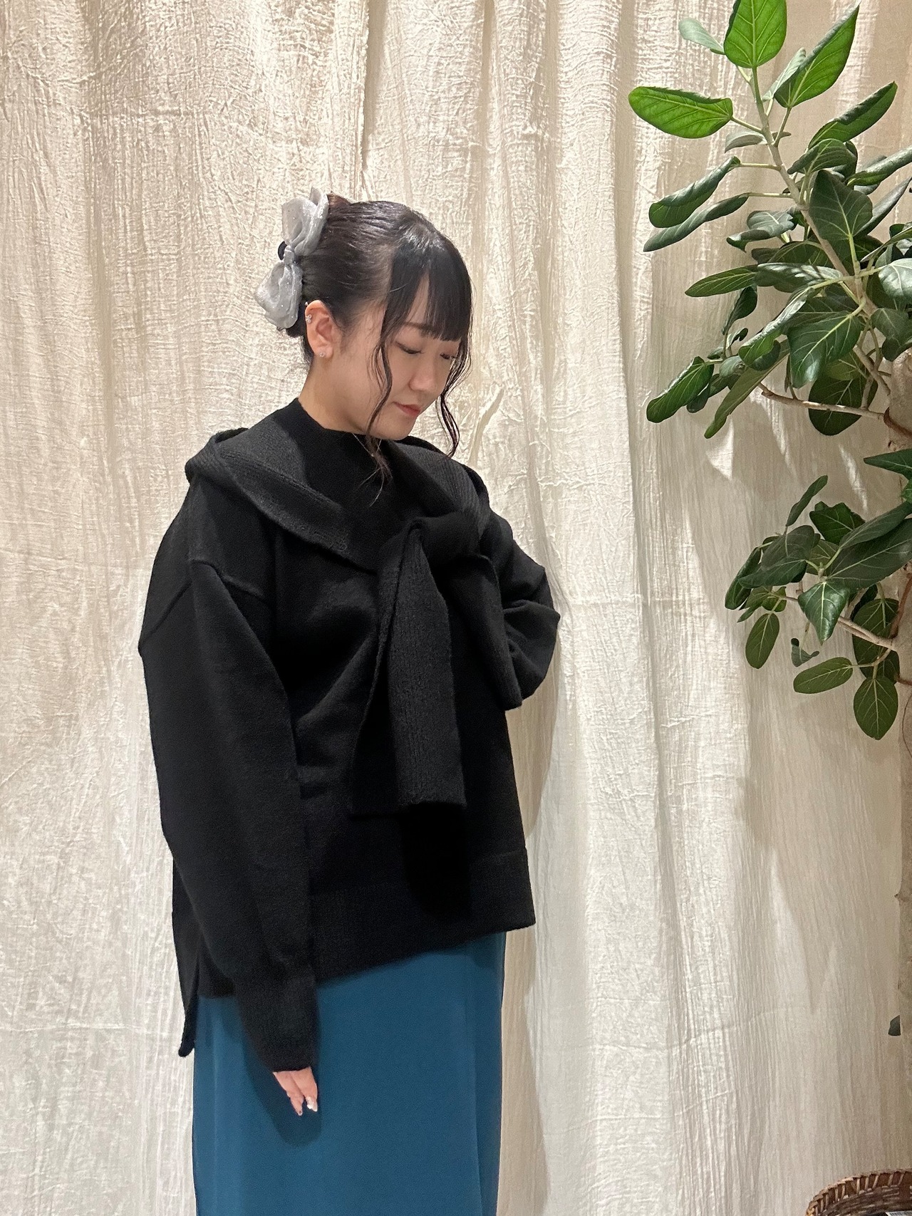 ニットトップスは程よいオーバーサイズで
