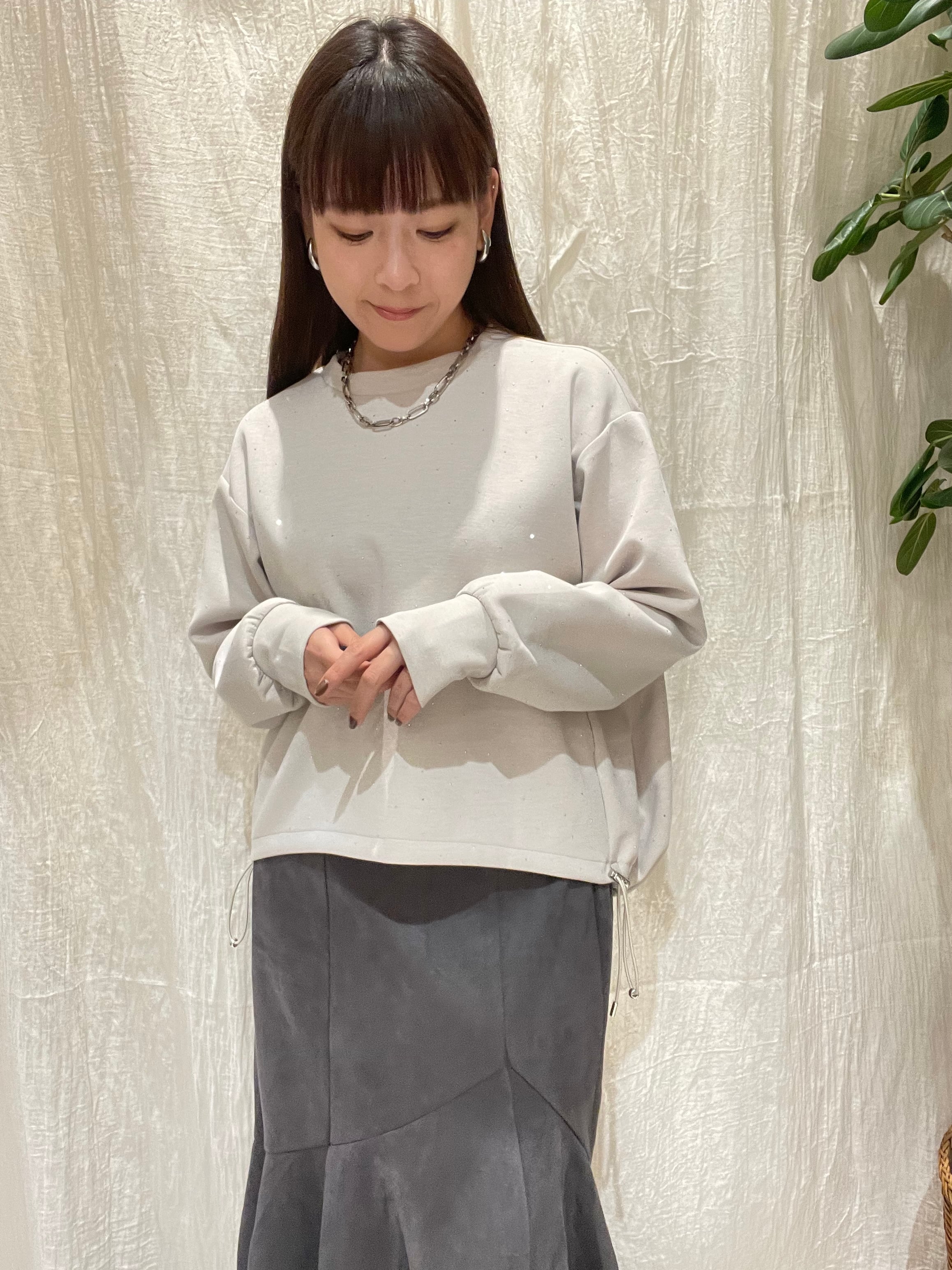 柔らかく伸縮性のあるポンチ素材を使用した、着心地抜群のプルオーバータイプのトップスです。