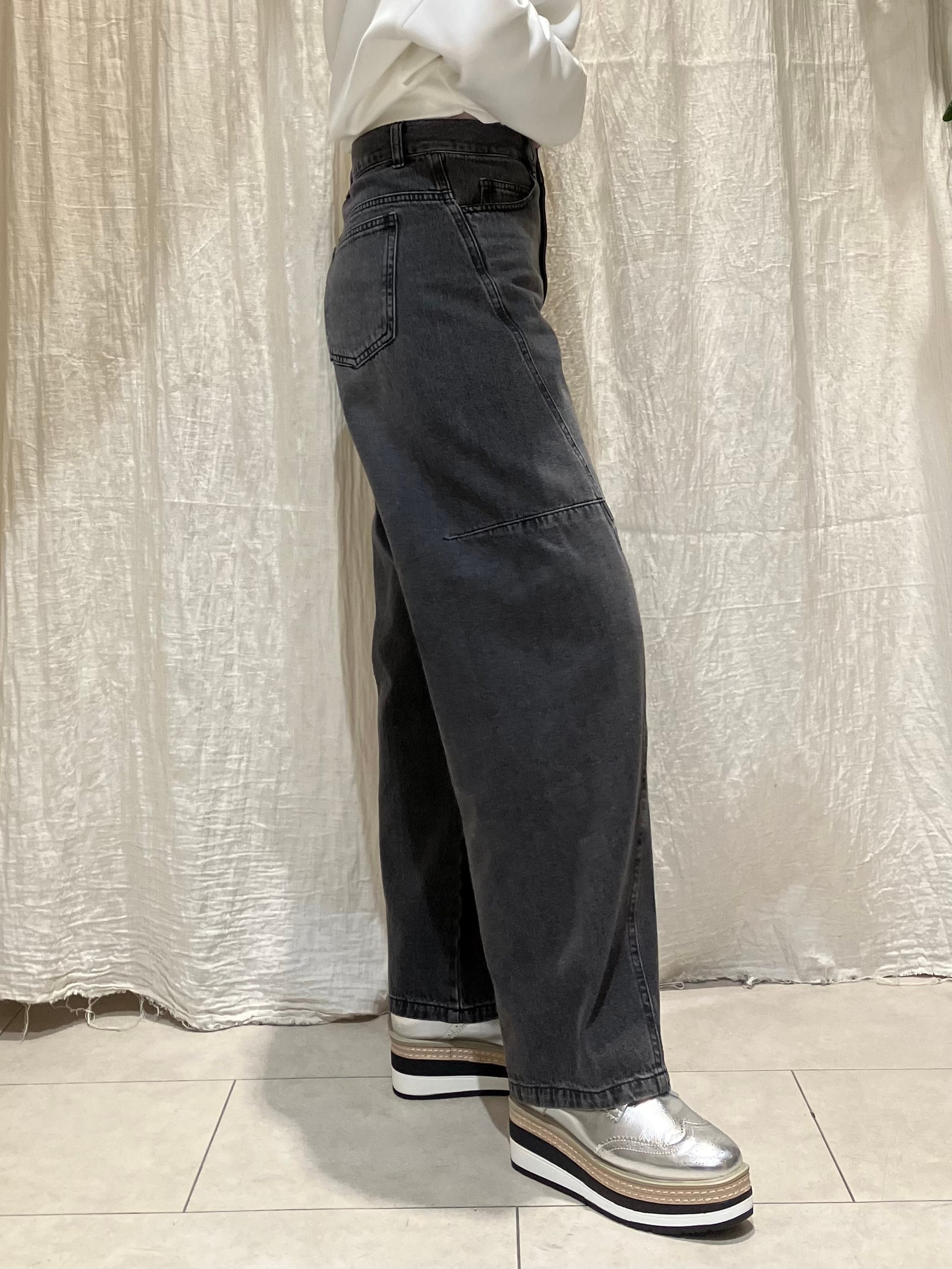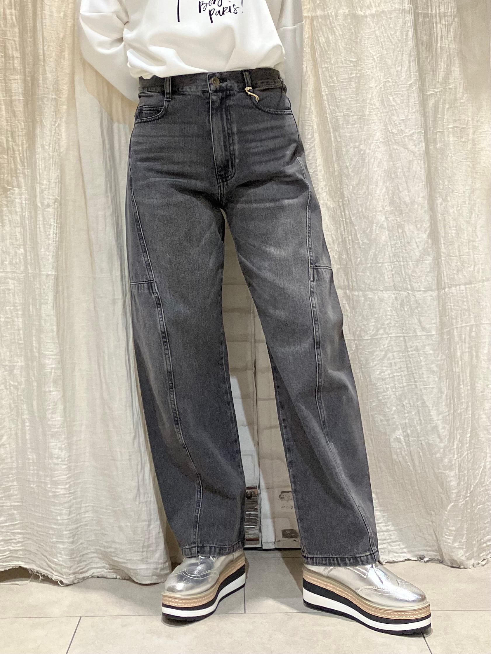 立体的なカーブラインが特徴のデザインデニム。