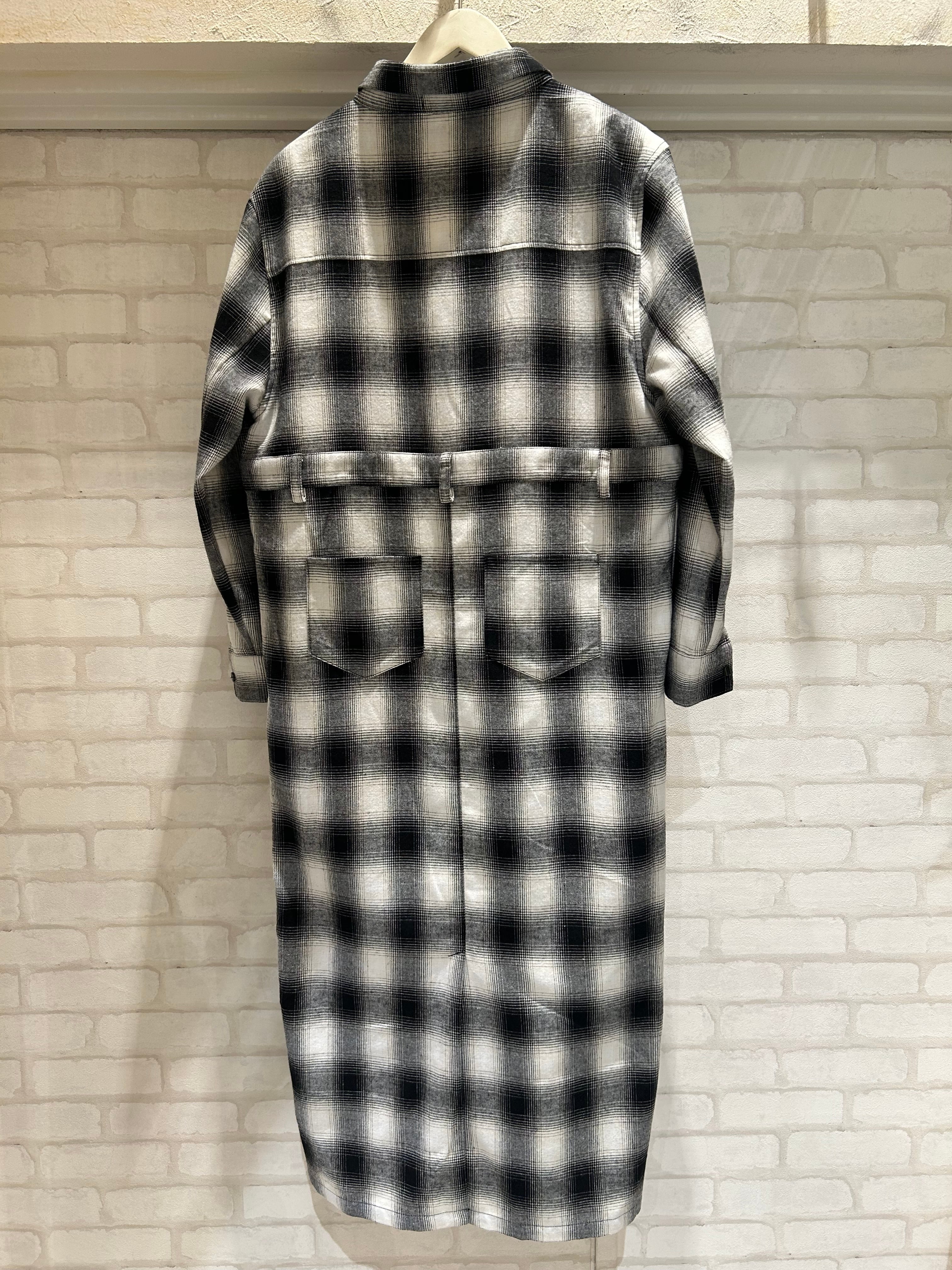 柔らかな風合いと落ち着いたモノトーンチェックが大人カジュアルにマッチするロングワンピース。