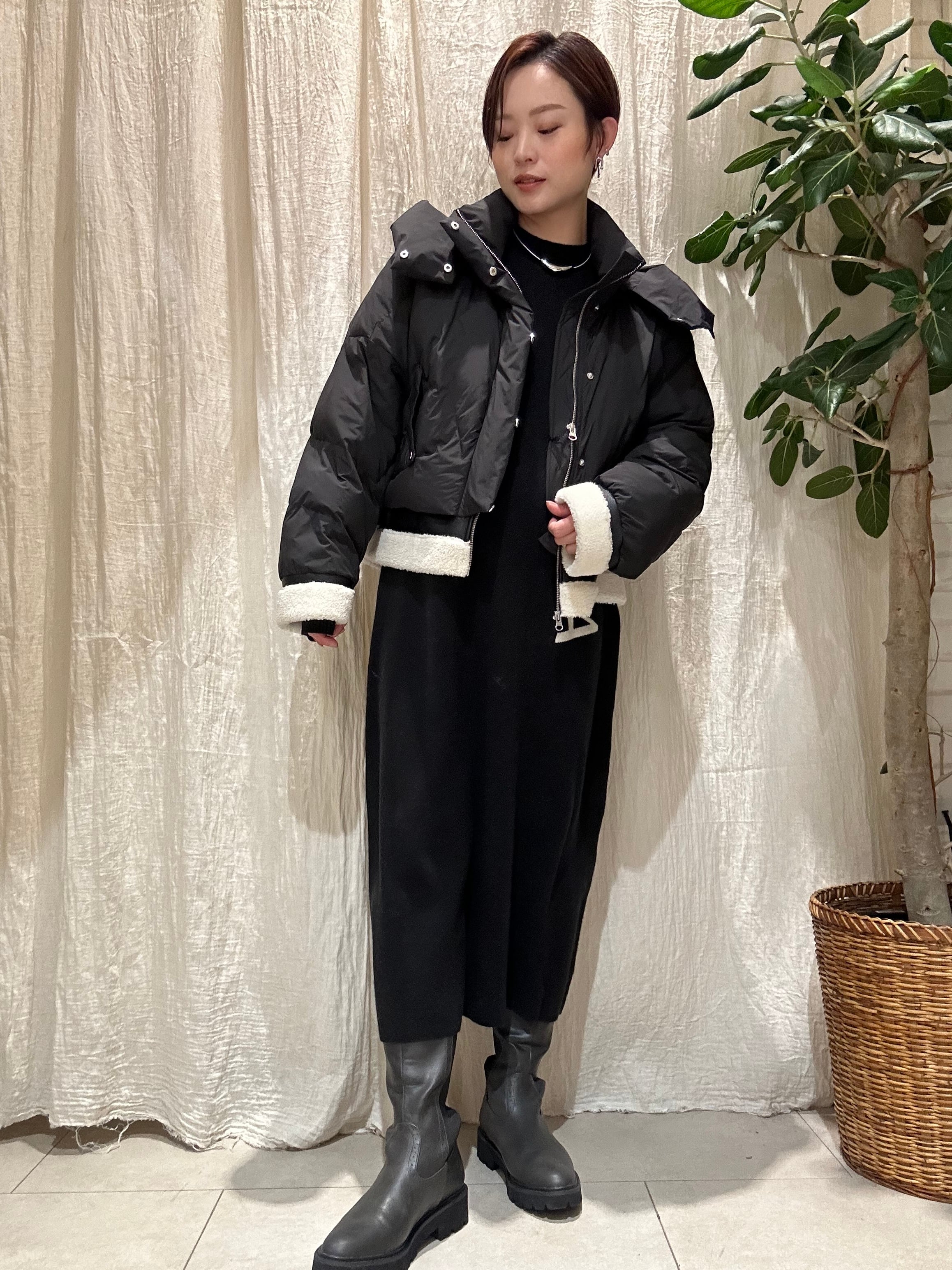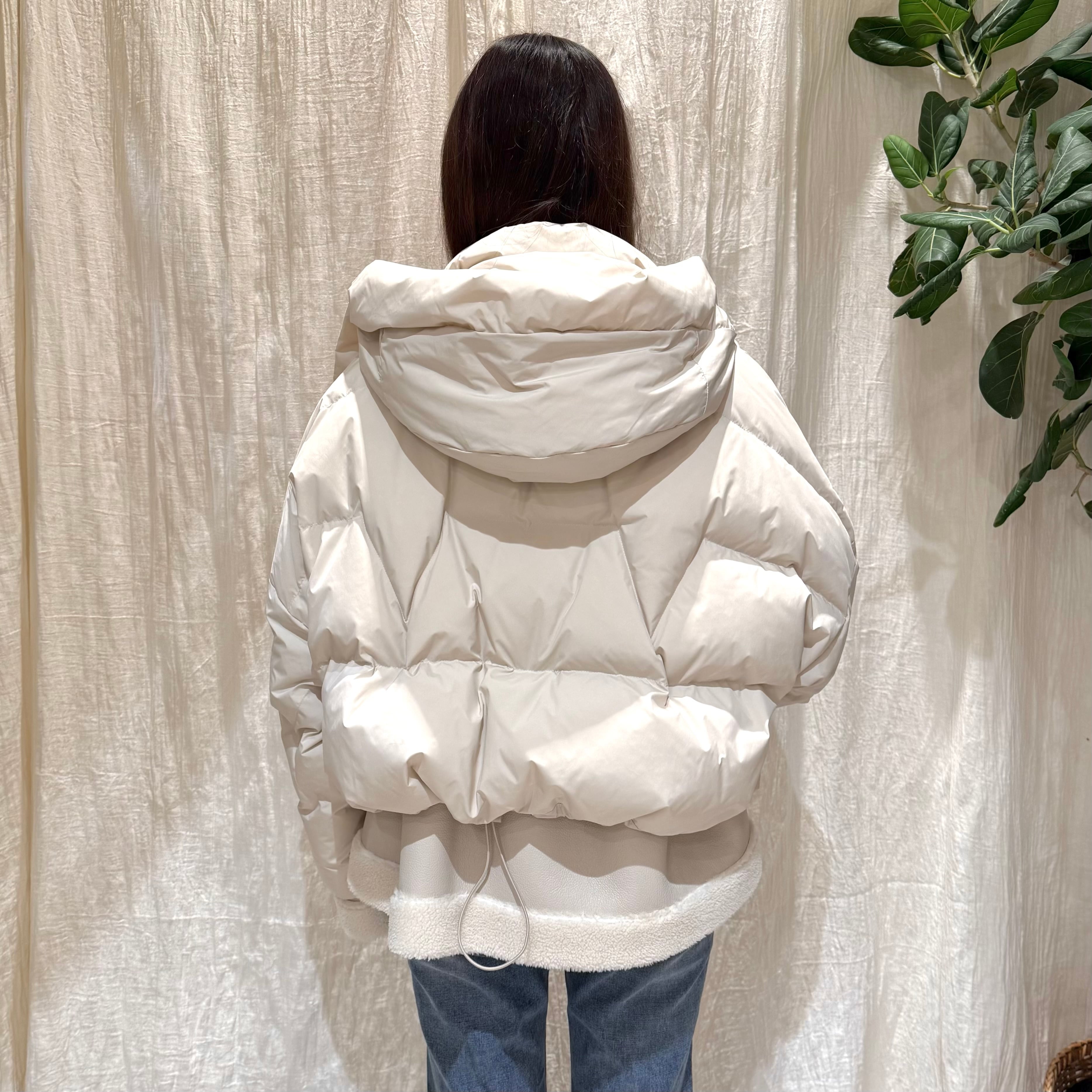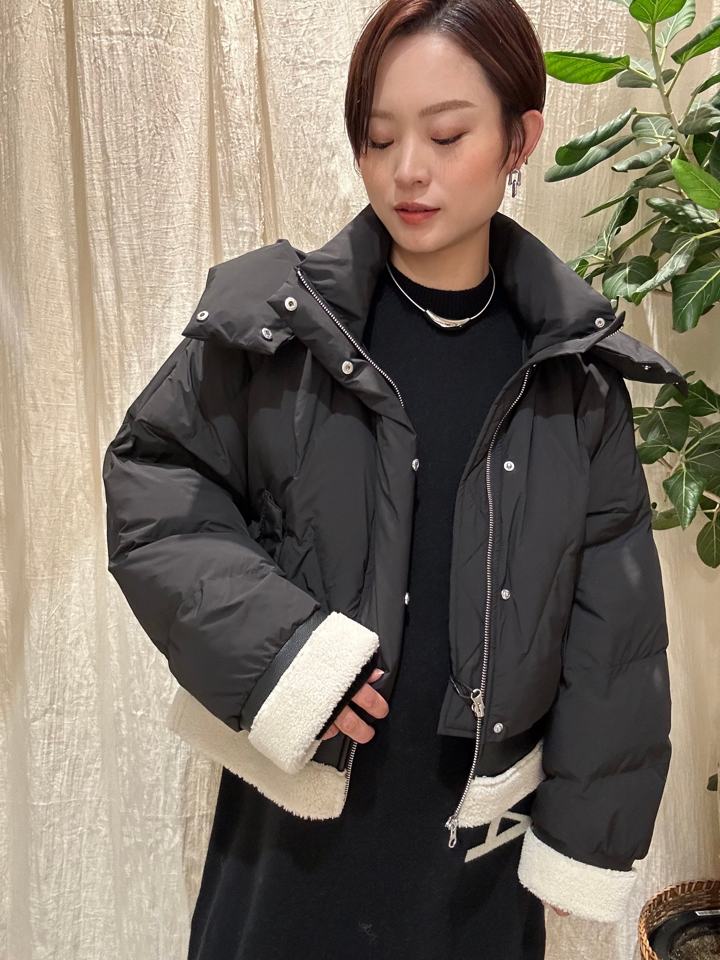 ムートン調ボアを効かせた、旬のショートダウン。今年らしい抜け感を演出します。マットな素材感で大人っぽく着られ軽く暖かい着心地で、冬のお出かけにぴったり◎