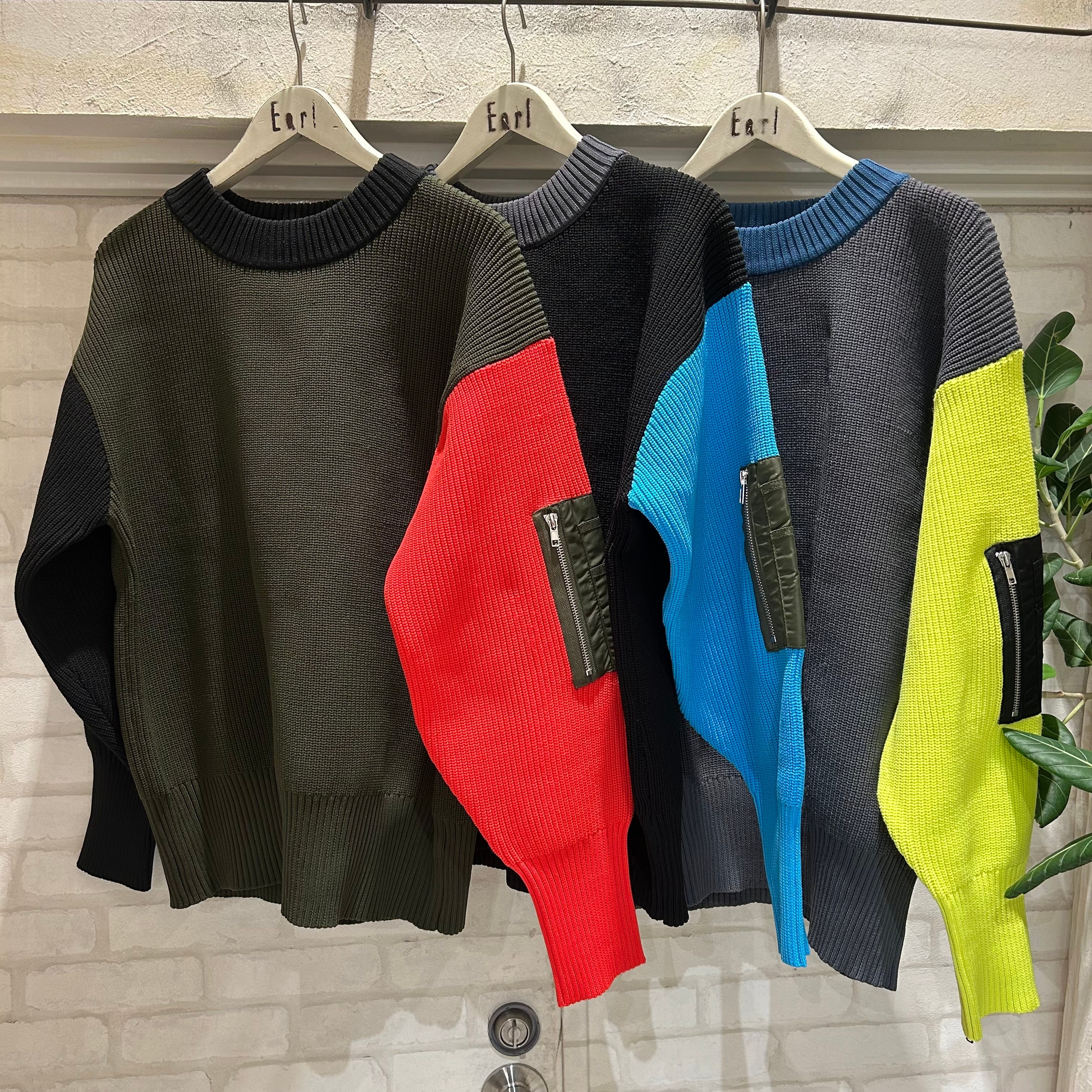 ブロッキングニットプルオーバー Pauline Bleu(ポリーヌブロー)