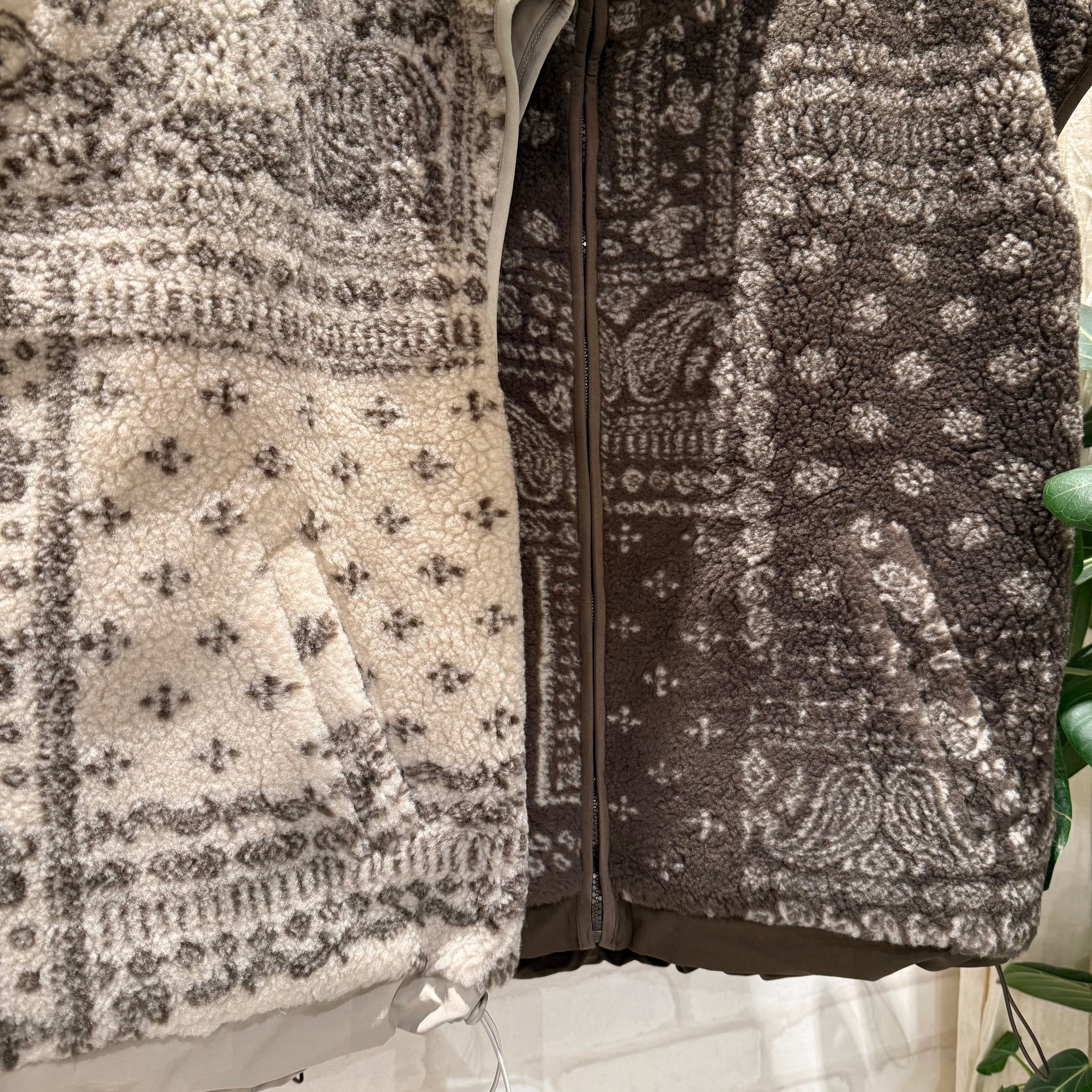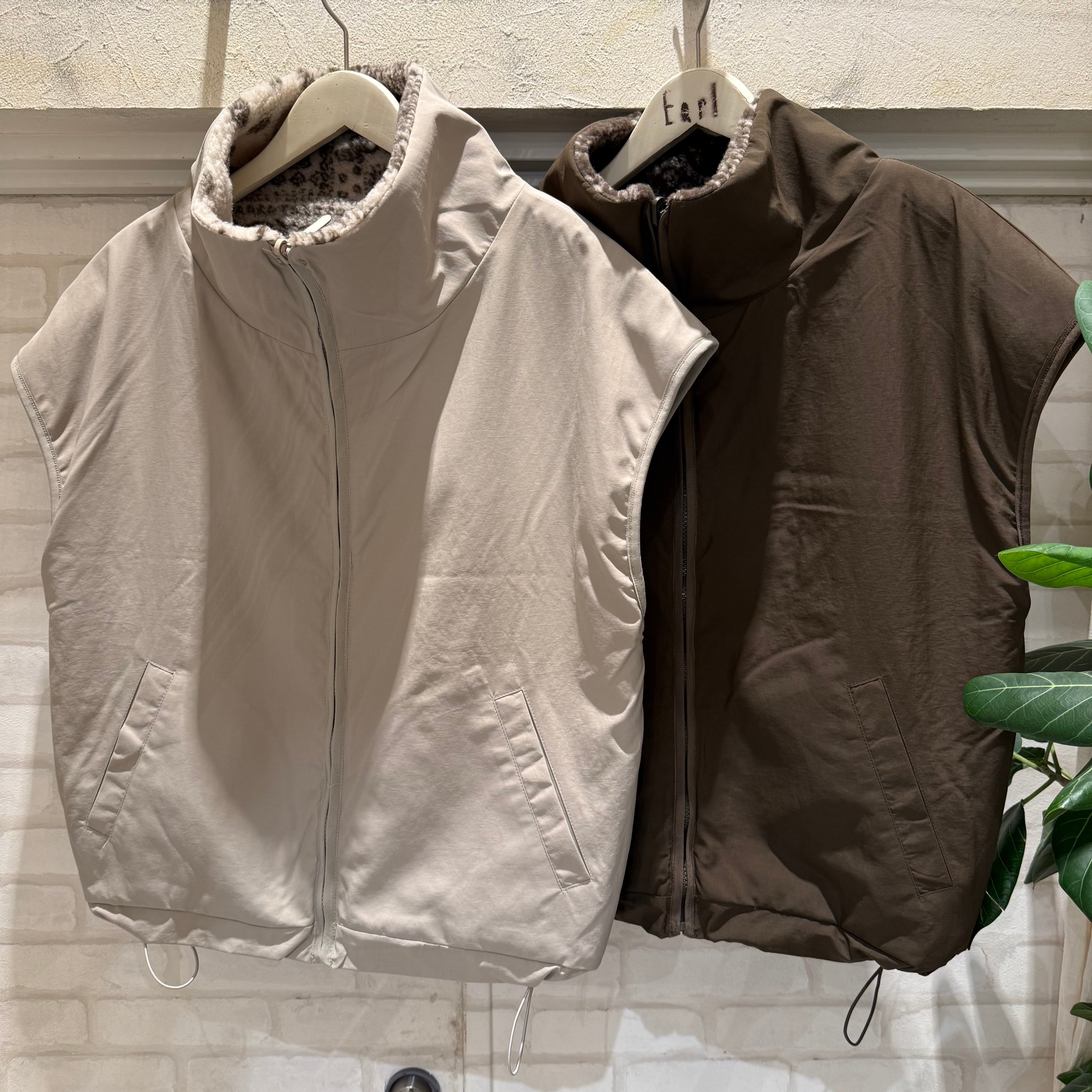 一面はボア素材、一面はスポーティなナイロン素材のリバーシブルベスト。