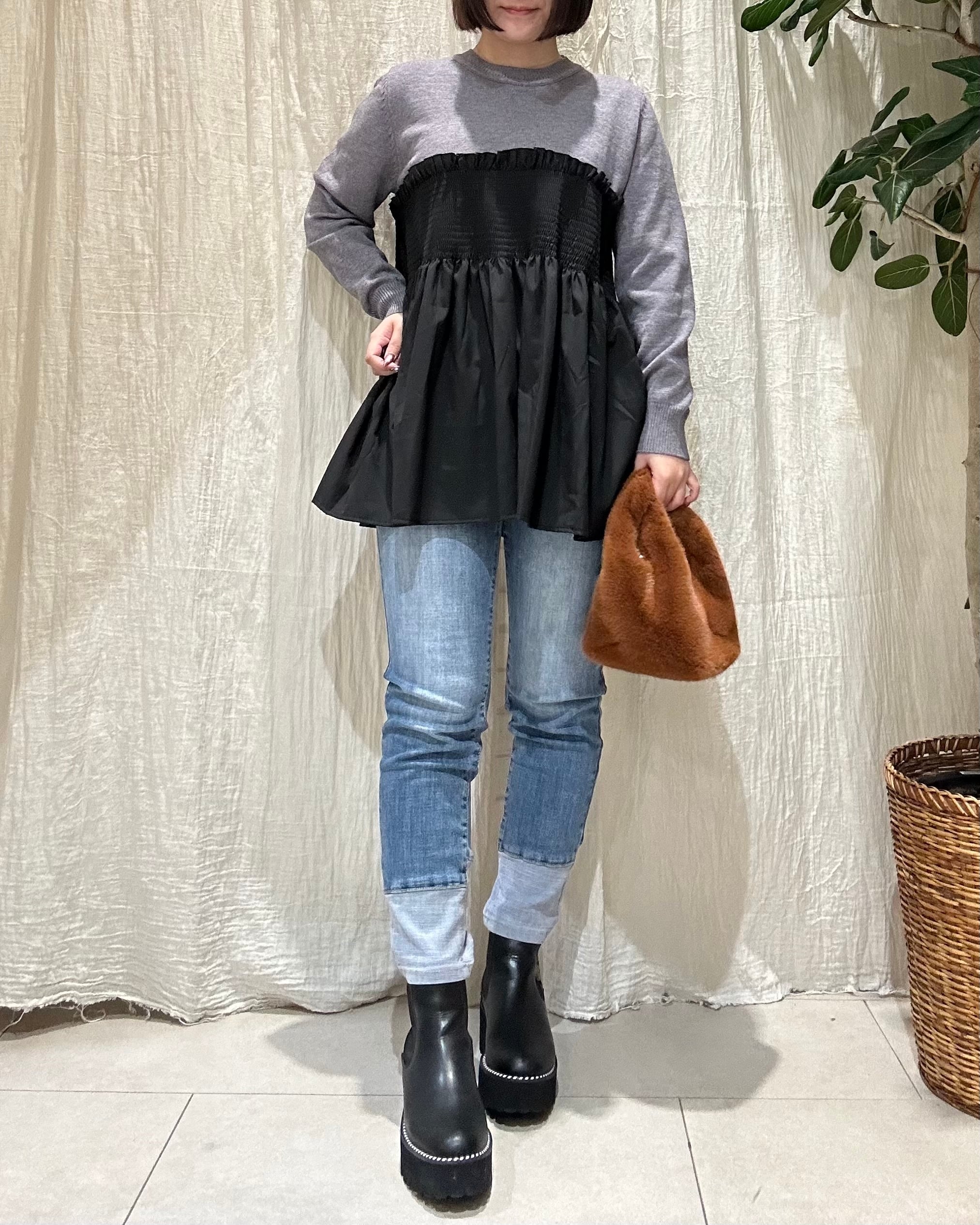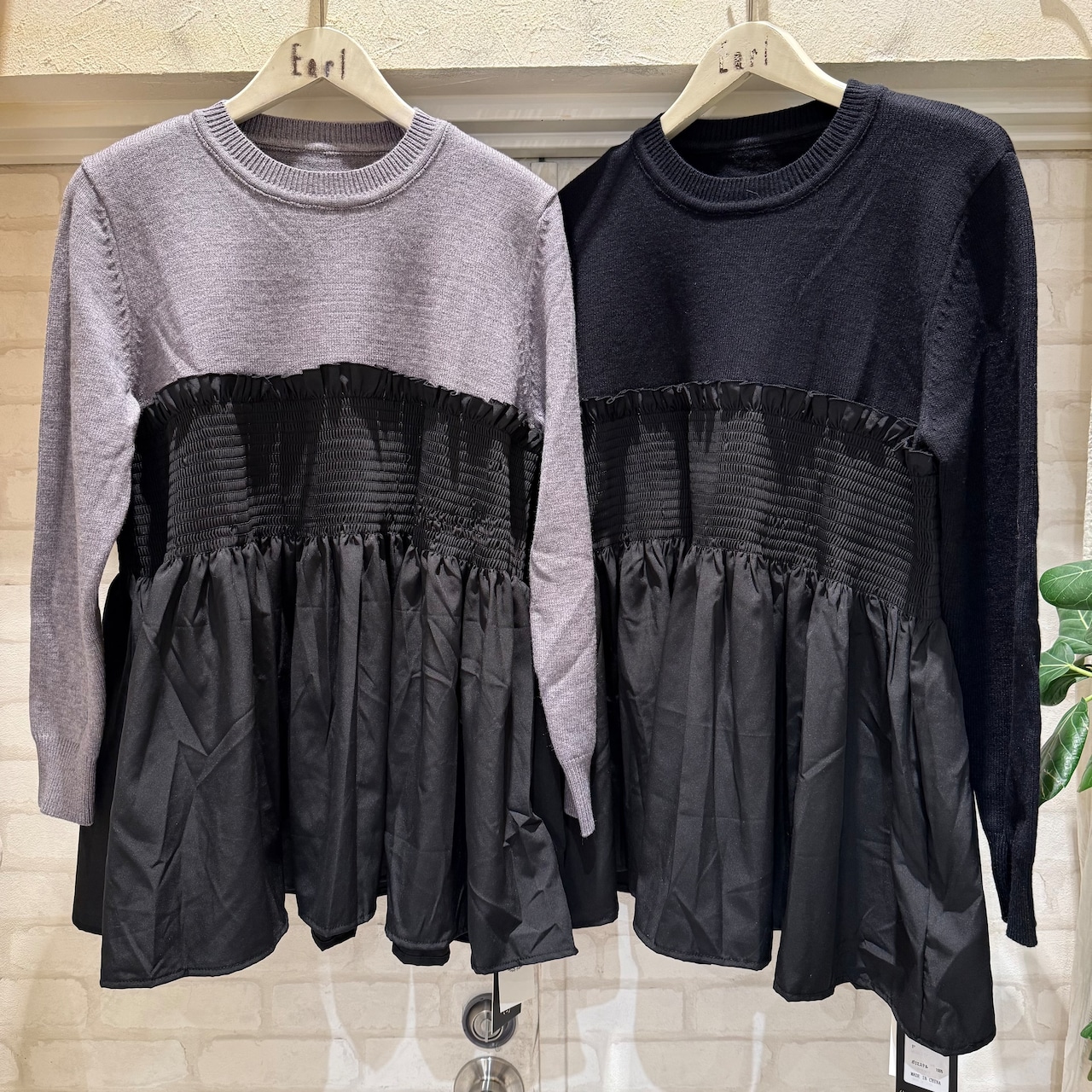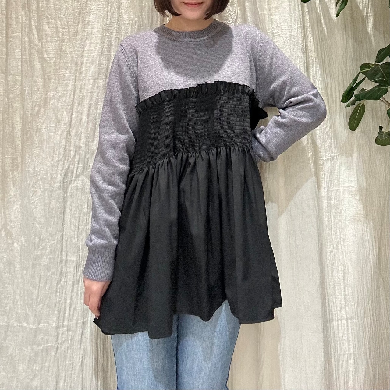 異素材切替ギャザーニット EDGE LINE(エッジライン)