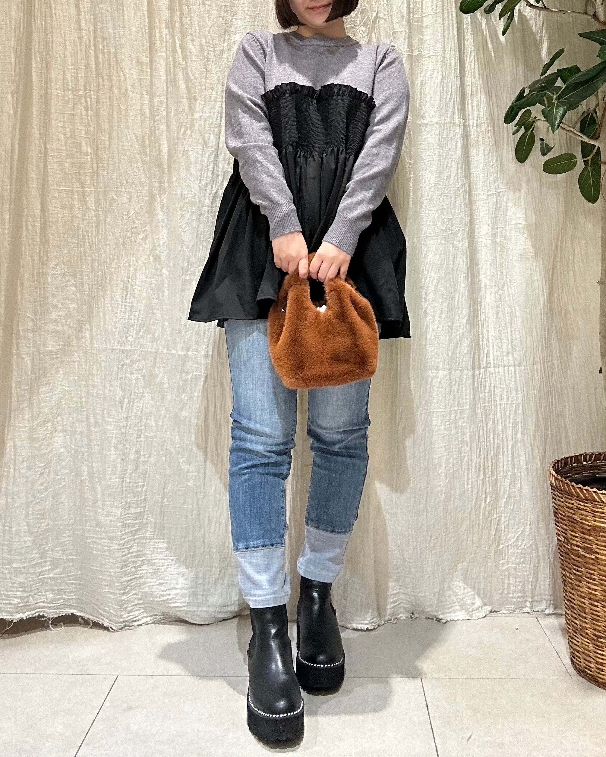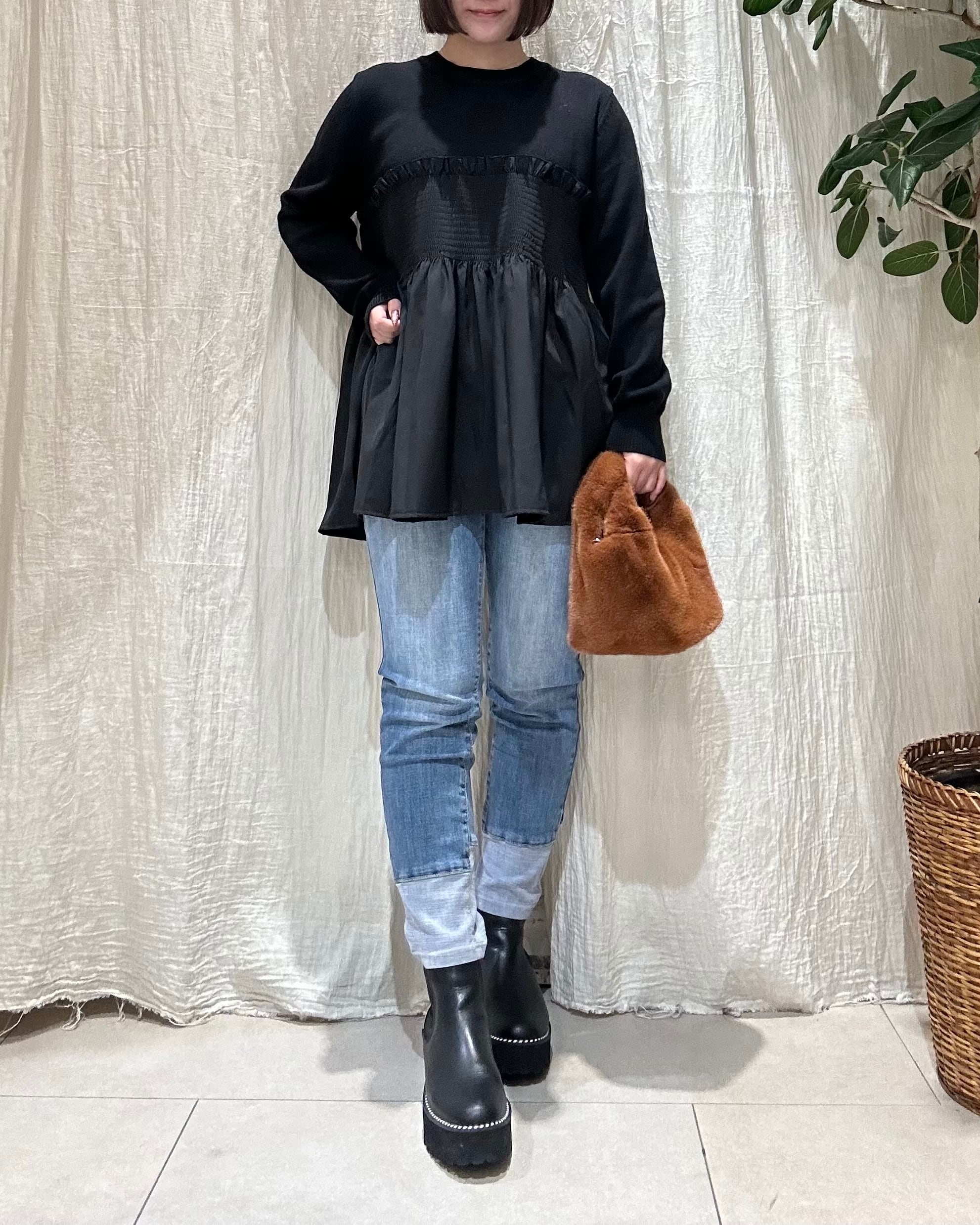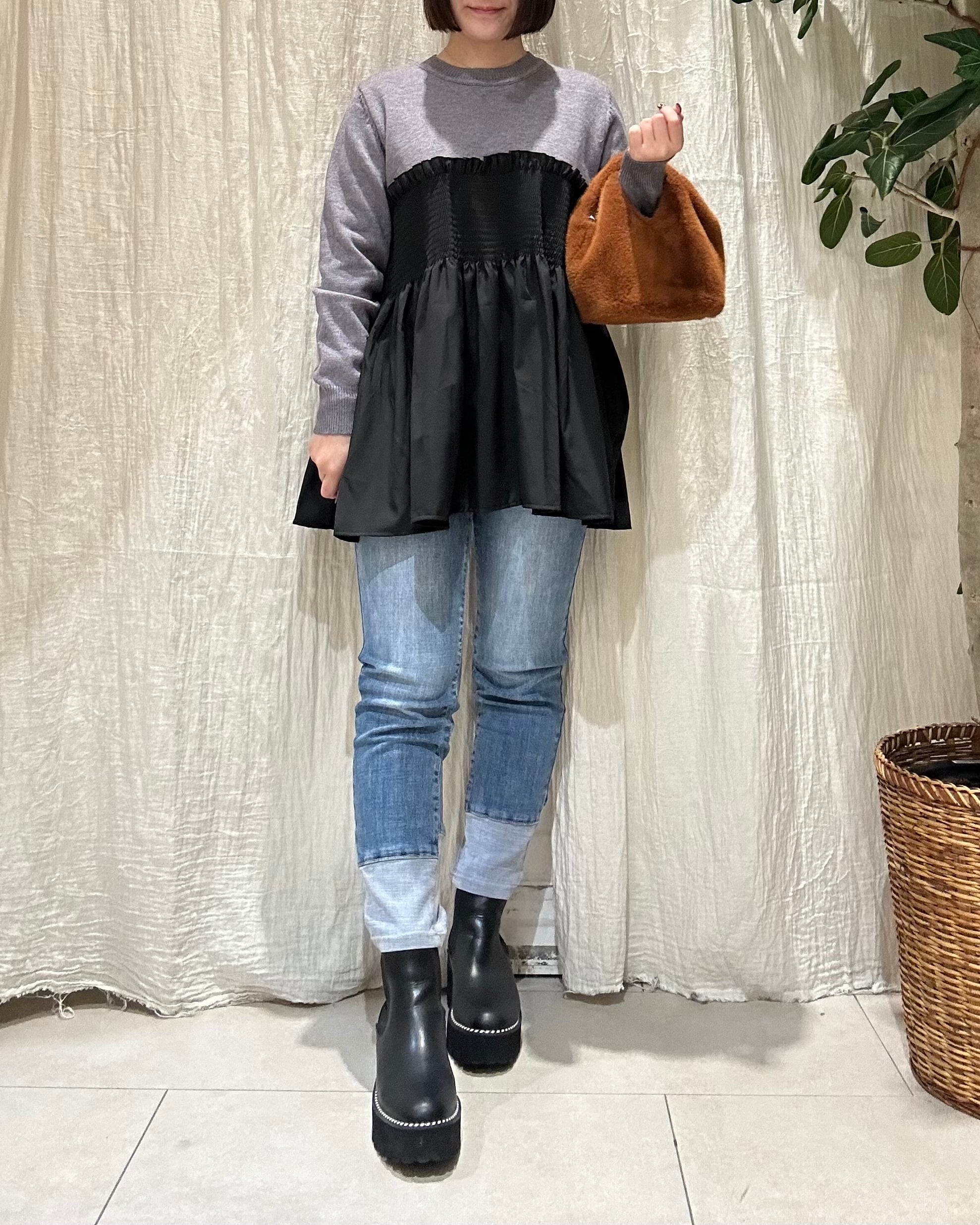 異素材切替ギャザーニット EDGE LINE(エッジライン)