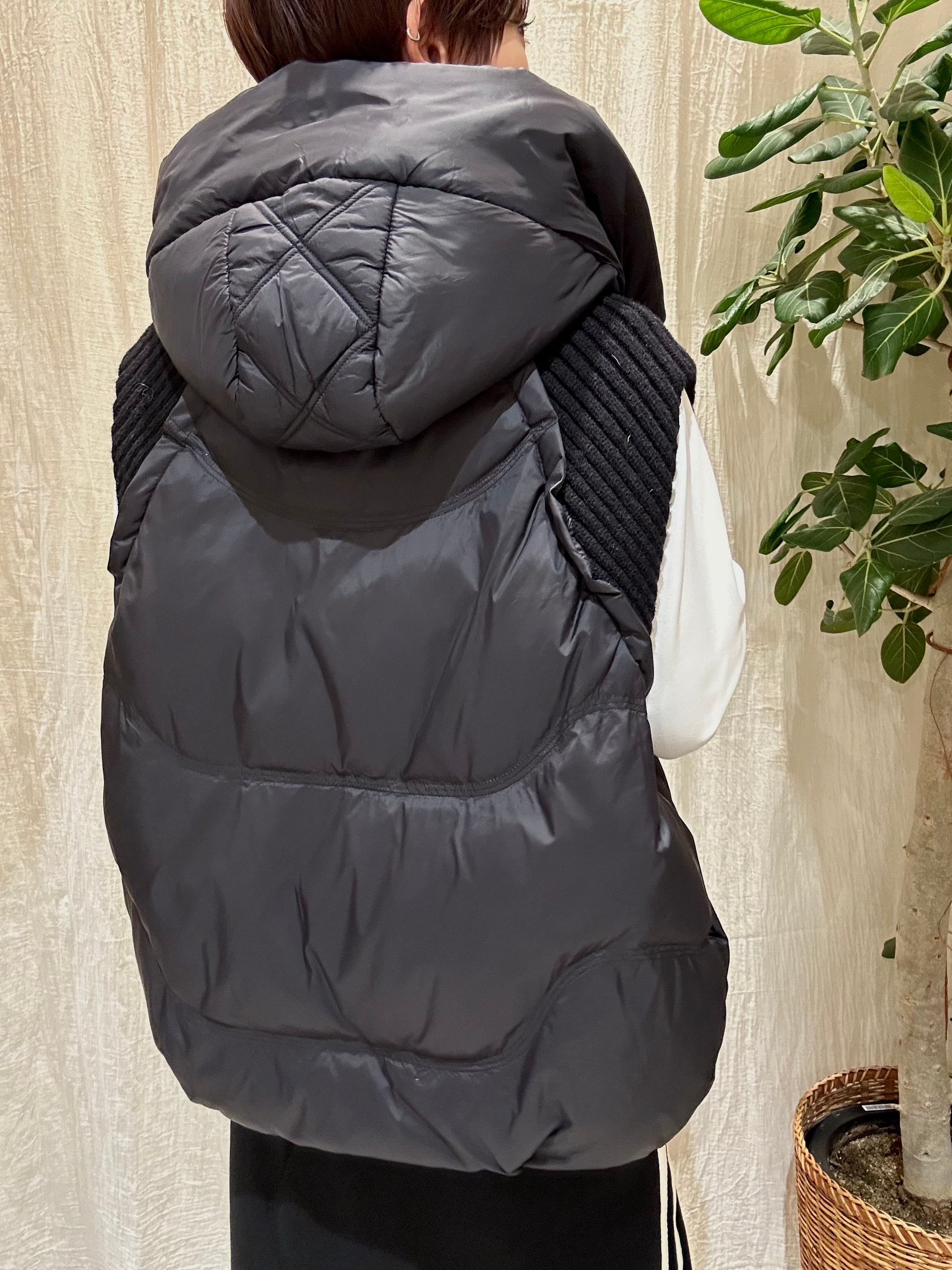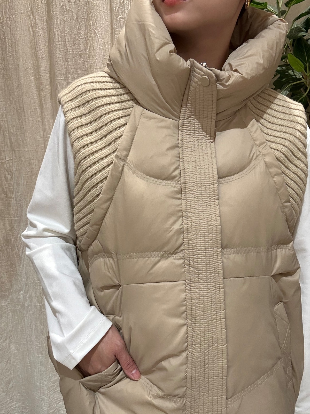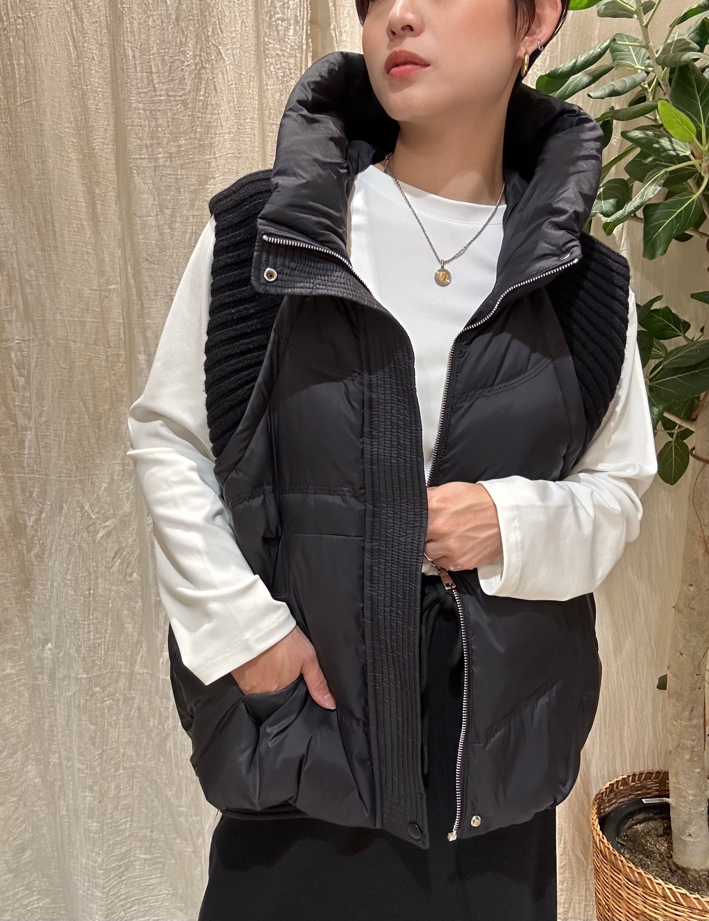 ダウン入り中綿キルティング×ニットの切替が新鮮な 1枚。