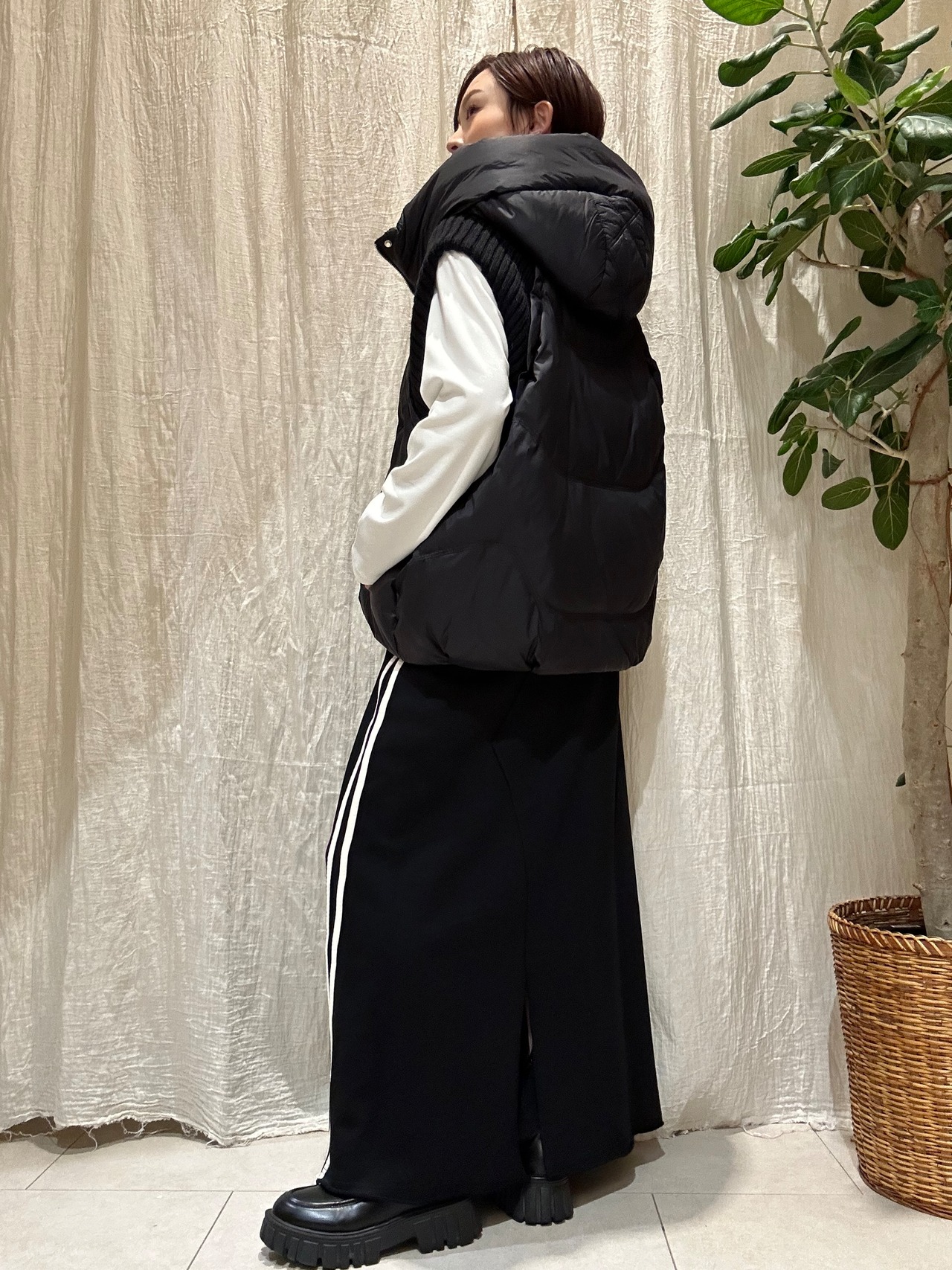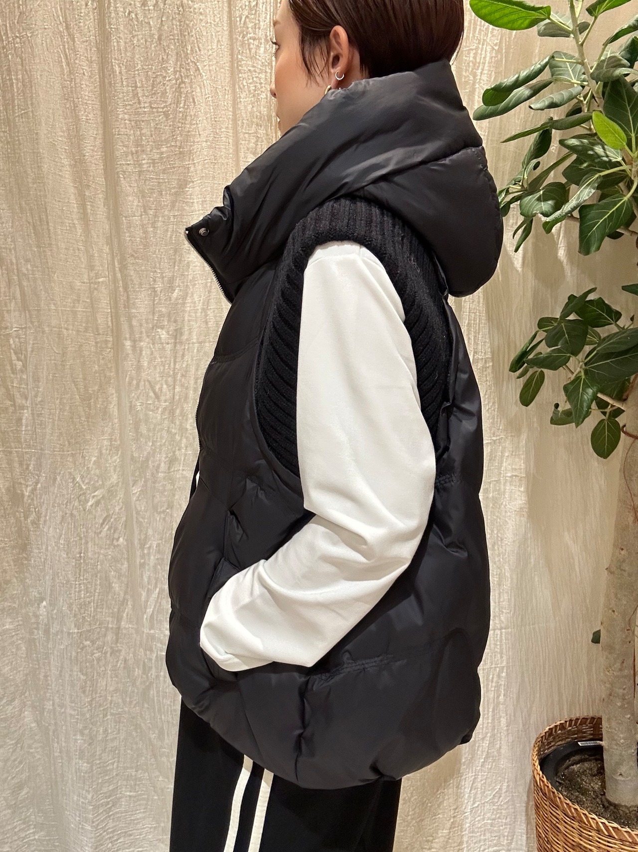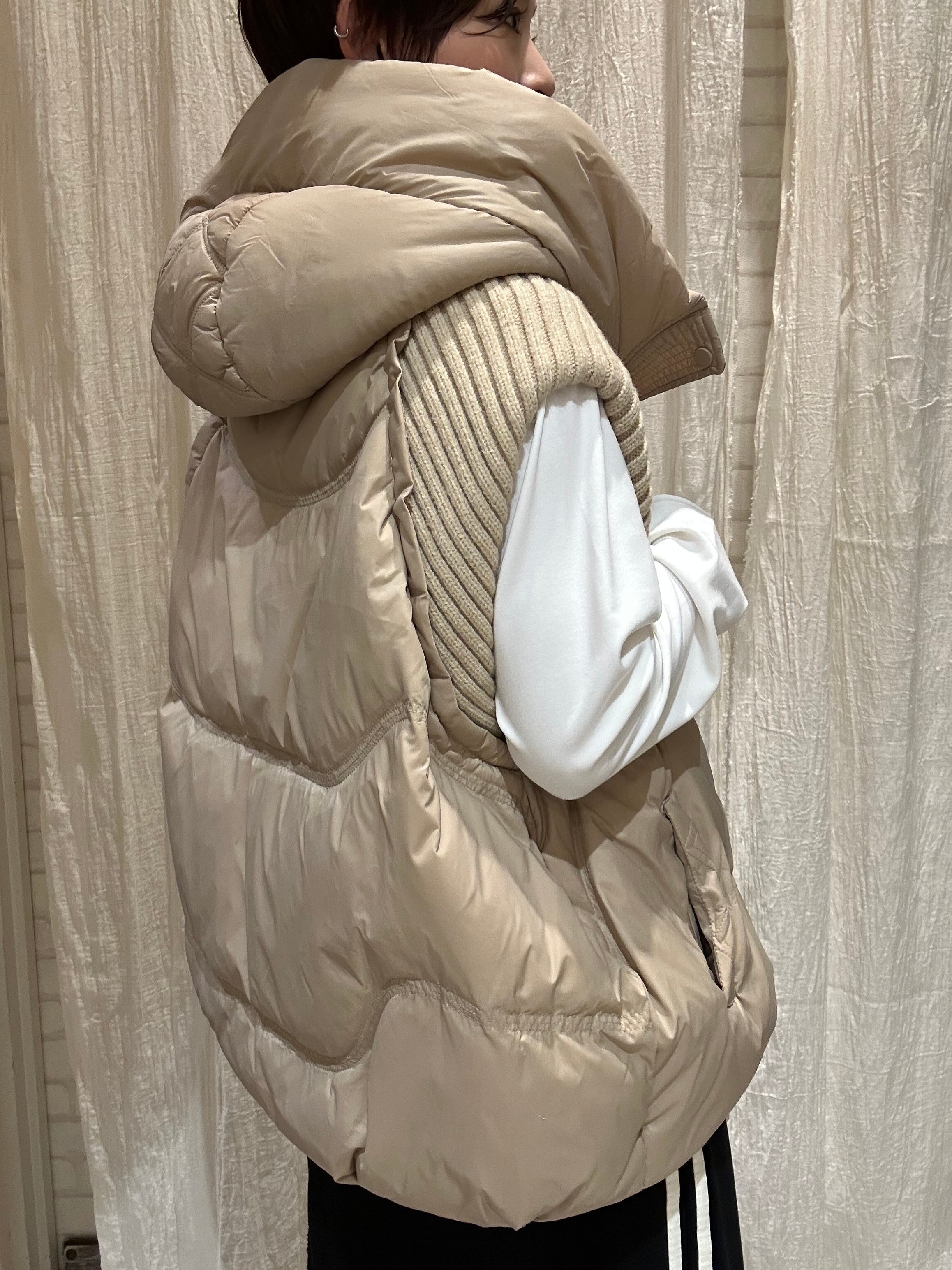 ダウン入り中綿キルティング×ニットの切替が新鮮な 1枚。