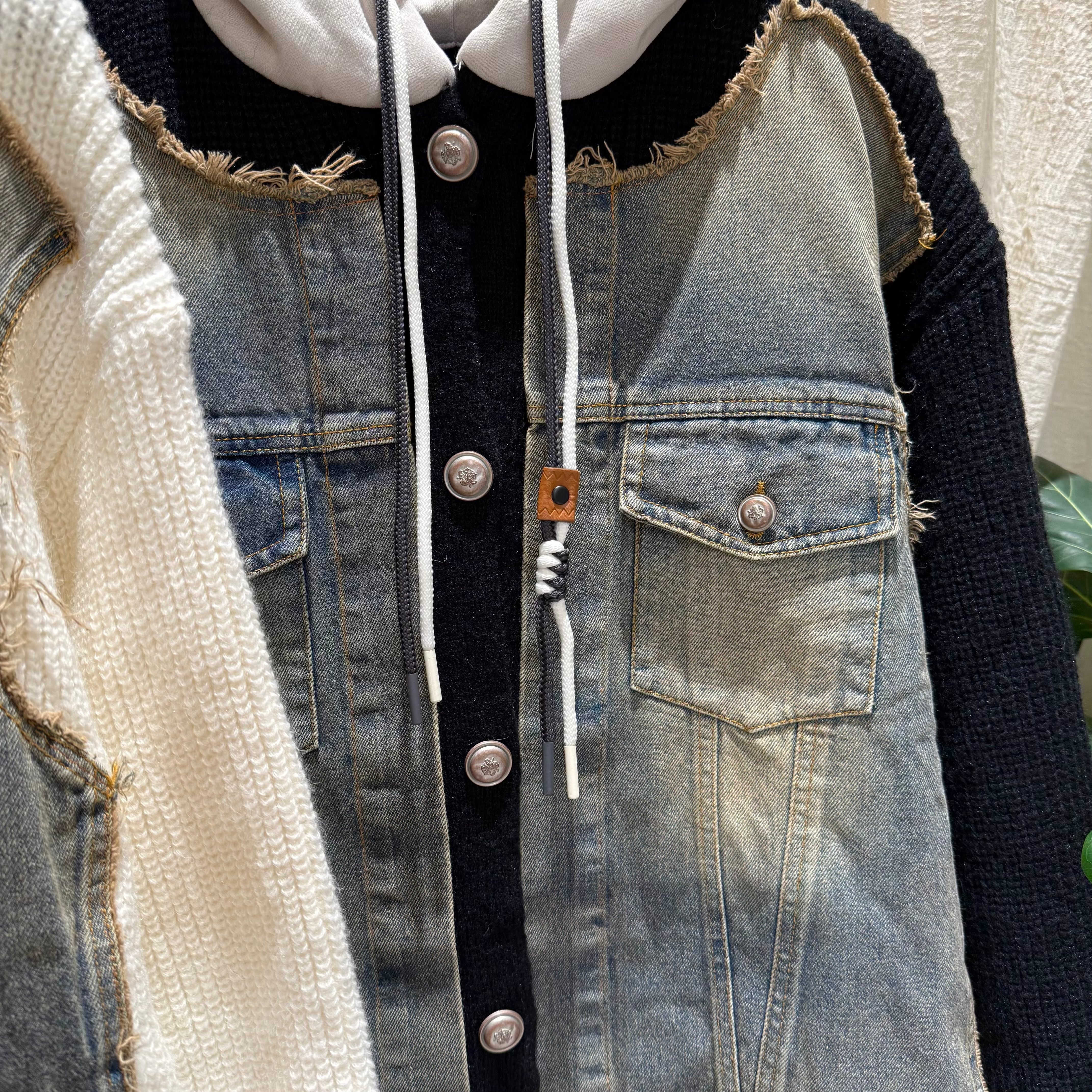 デニム切替デザインパーカーニットジャケット EDGE LINE(エッジライン)
