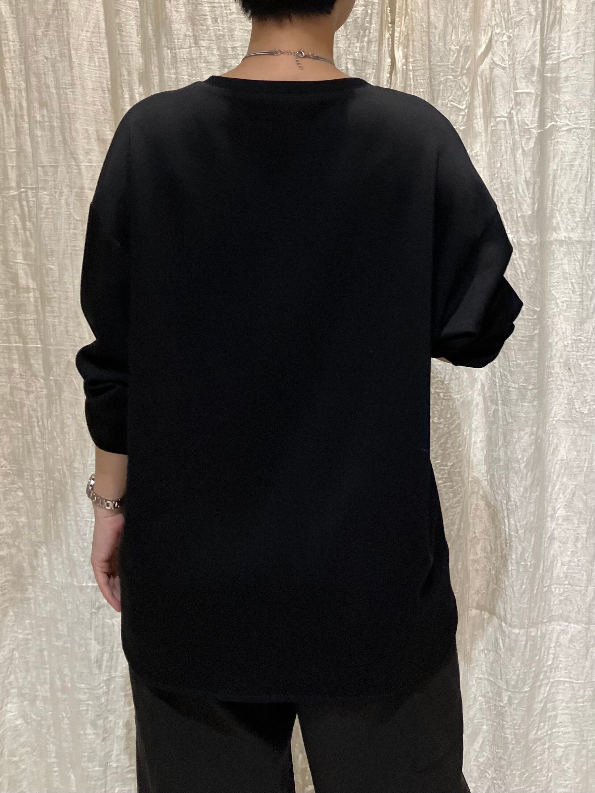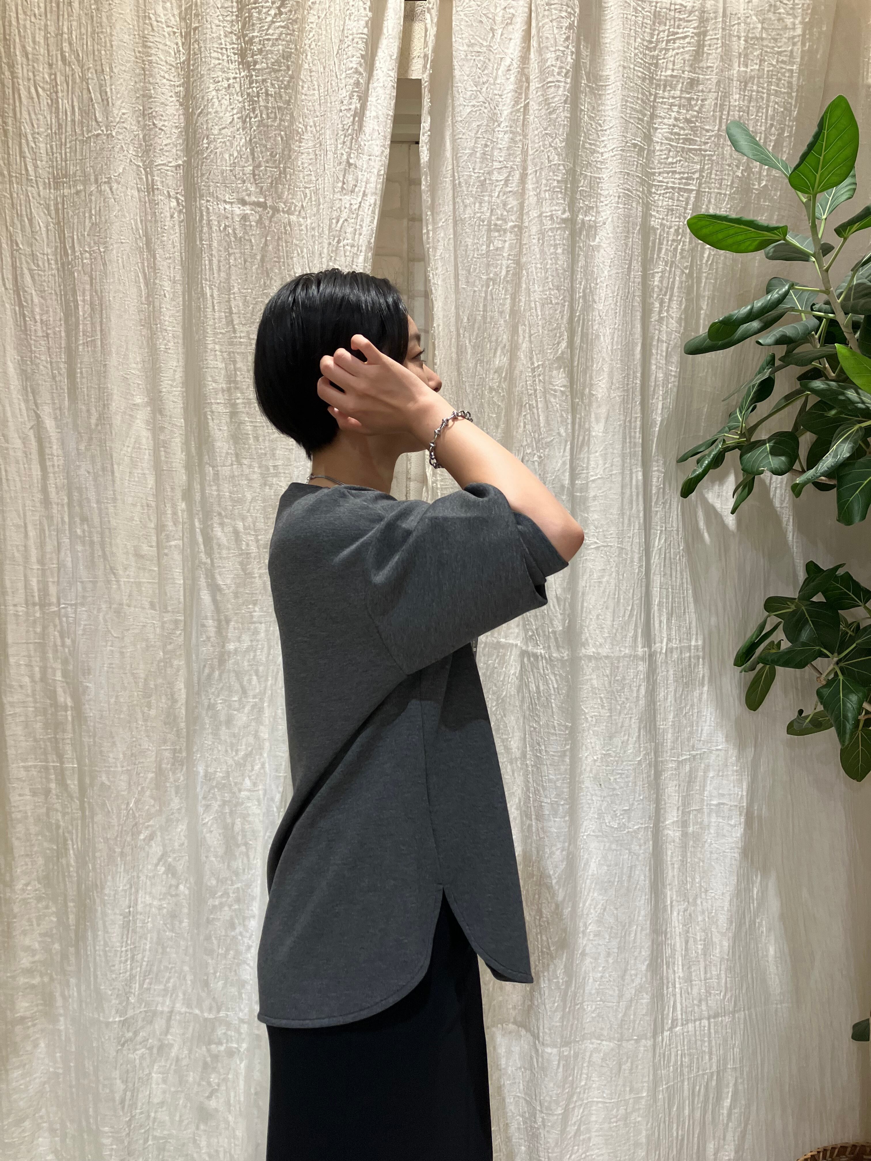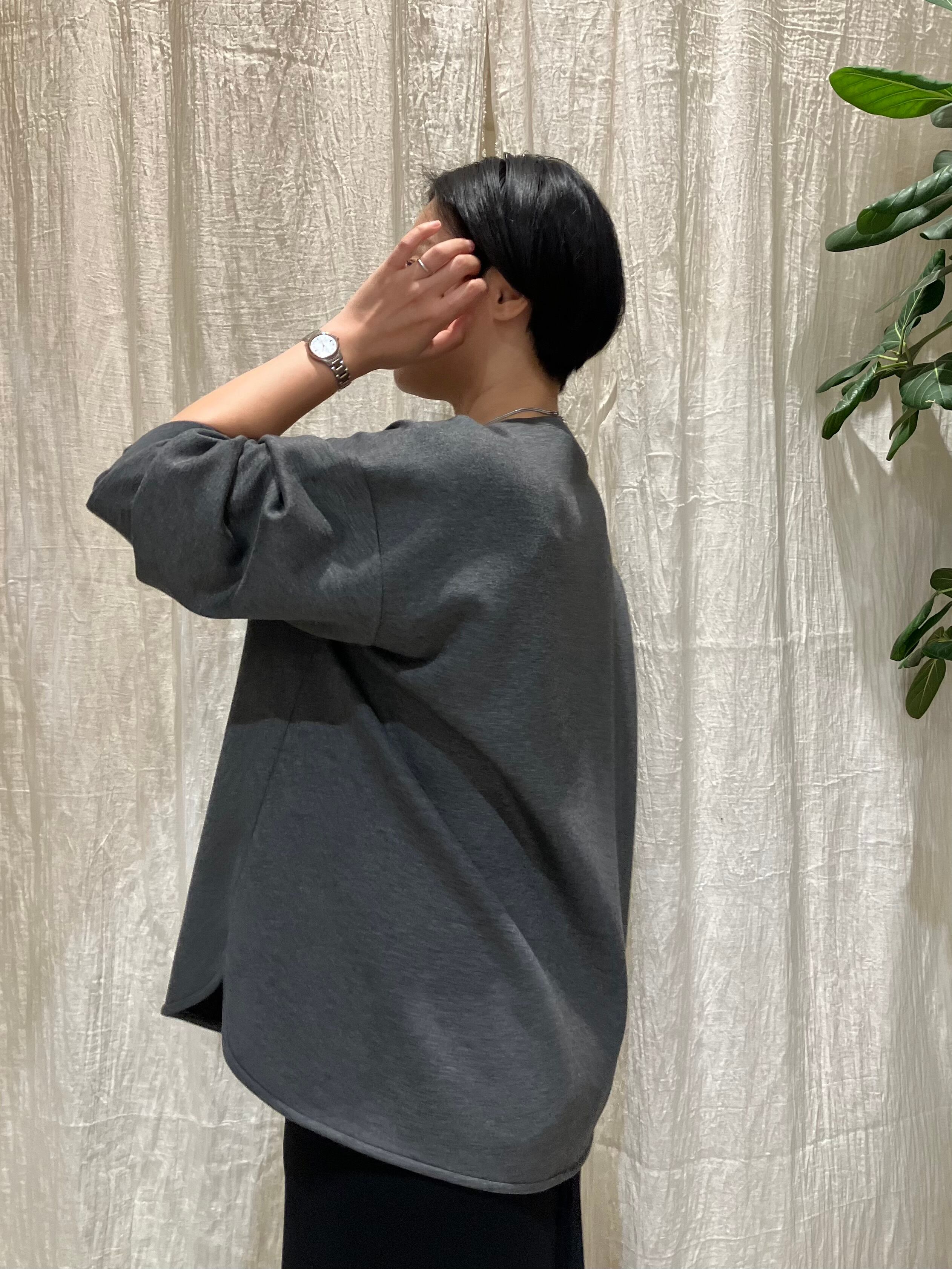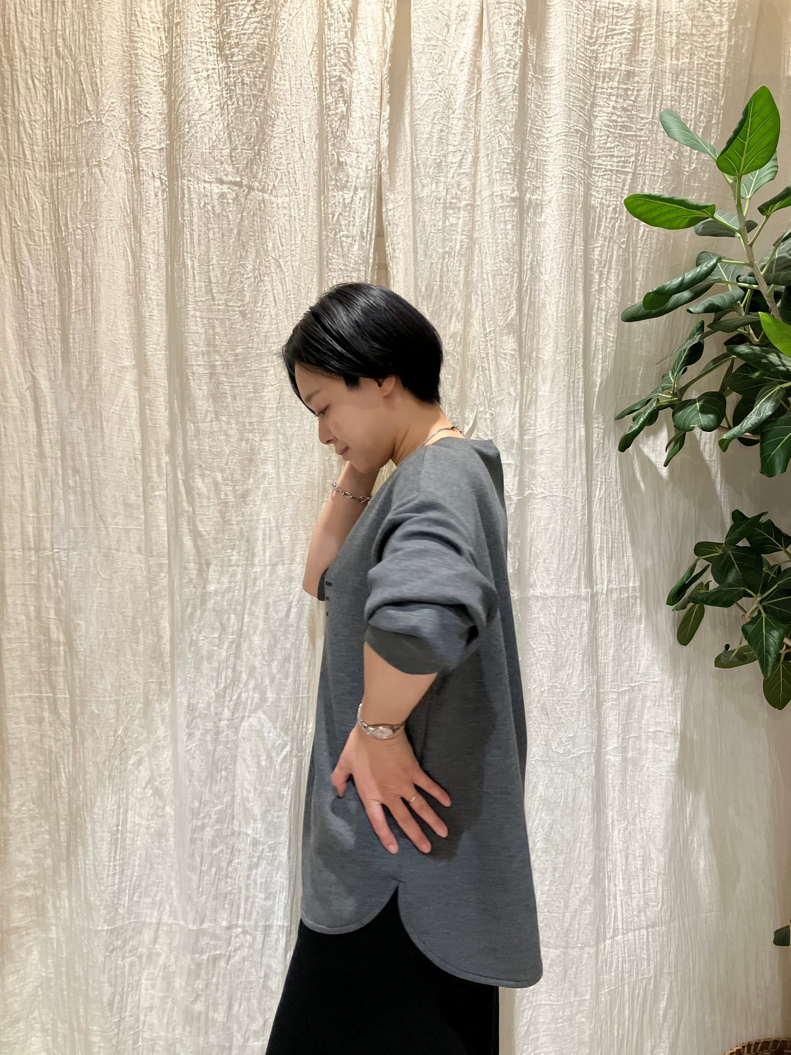 スタッズロゴがポイントのプルオーバー。程よいストレッチ性のあるポリエステル×レーヨン素材で、快適な着心地。前後差のある着丈で、抜け感のあるシルエットに仕上げています。