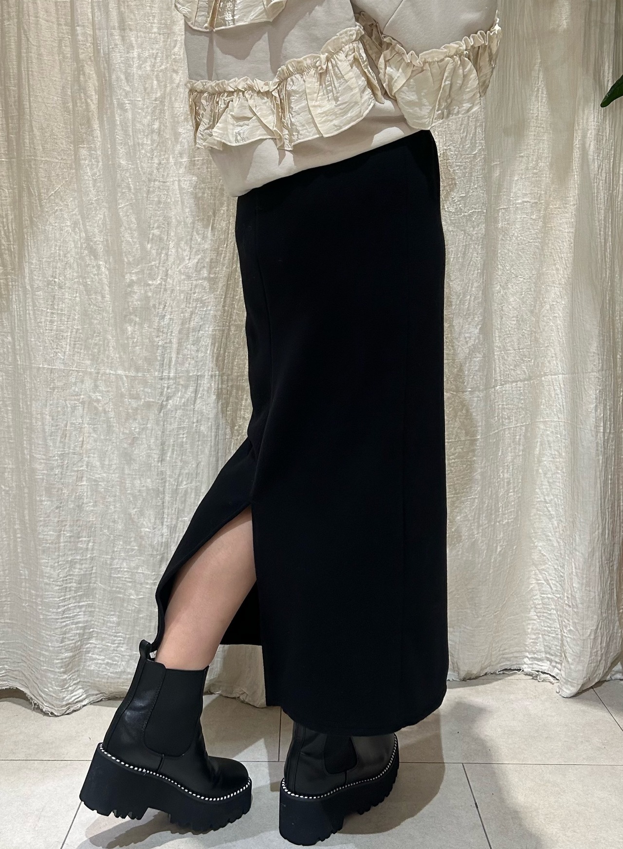 すっきりとしたシルエットのペンシルラインで美脚見え。