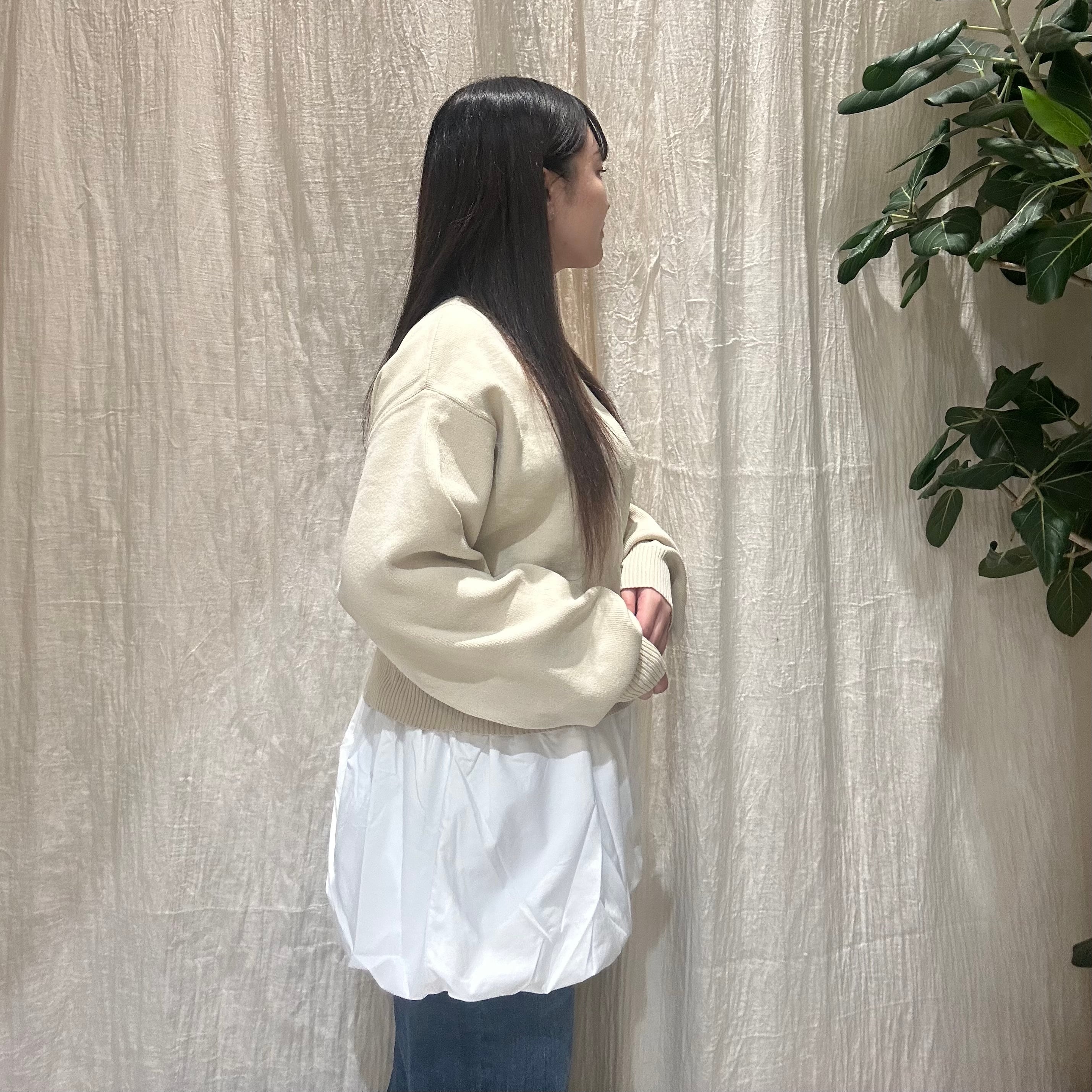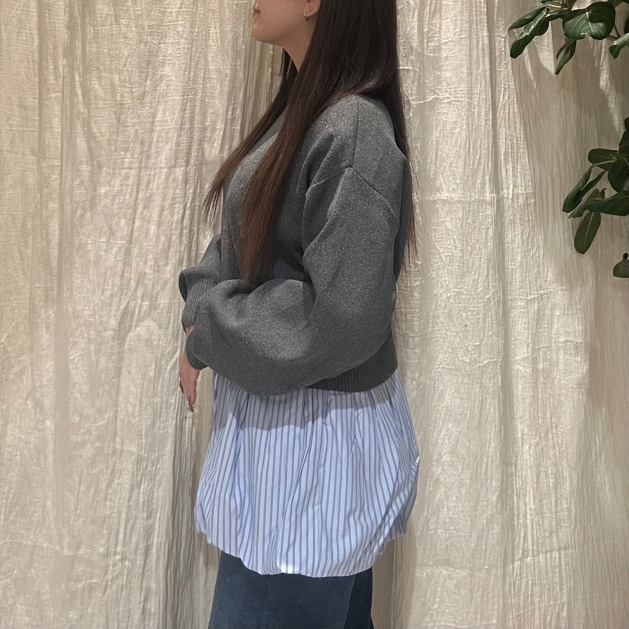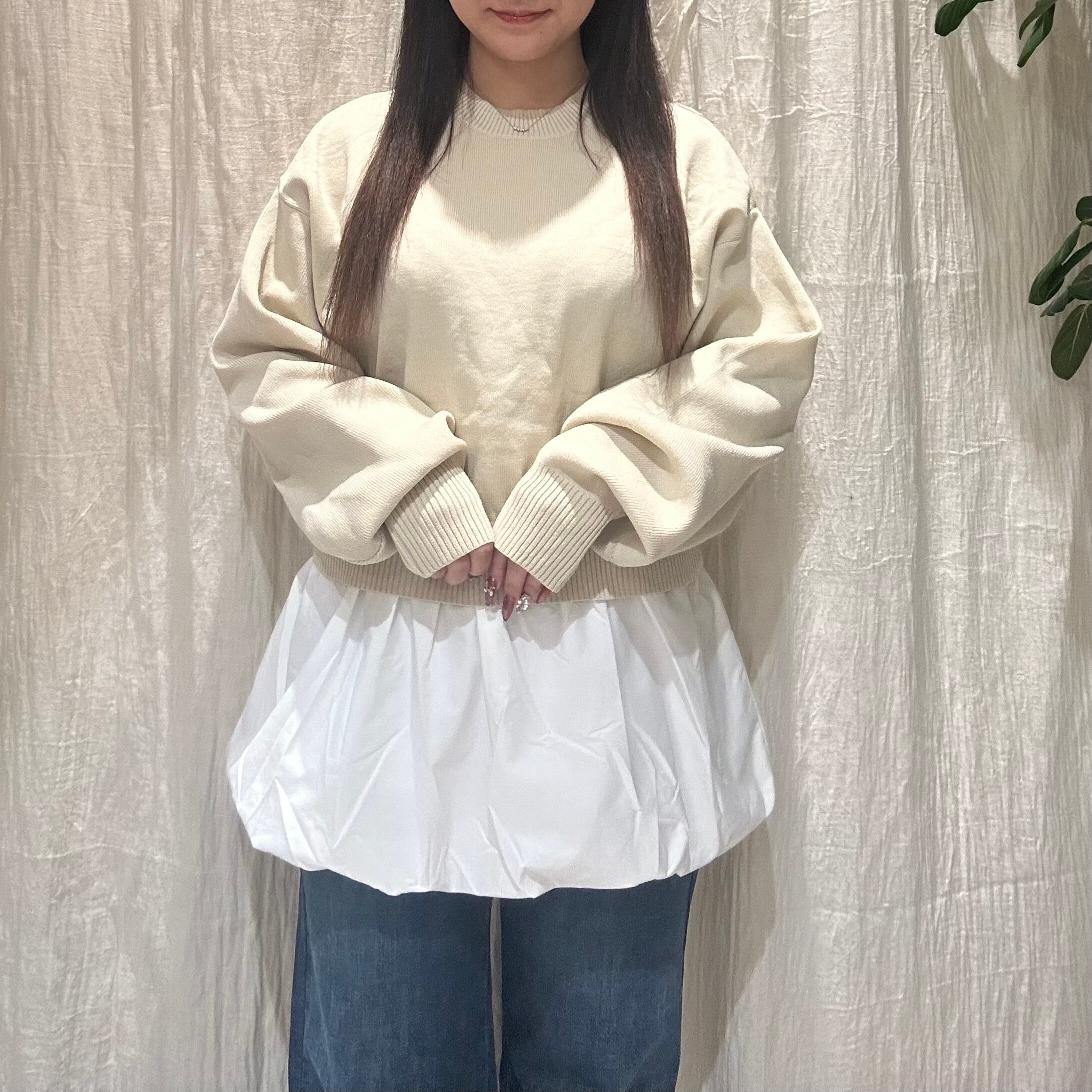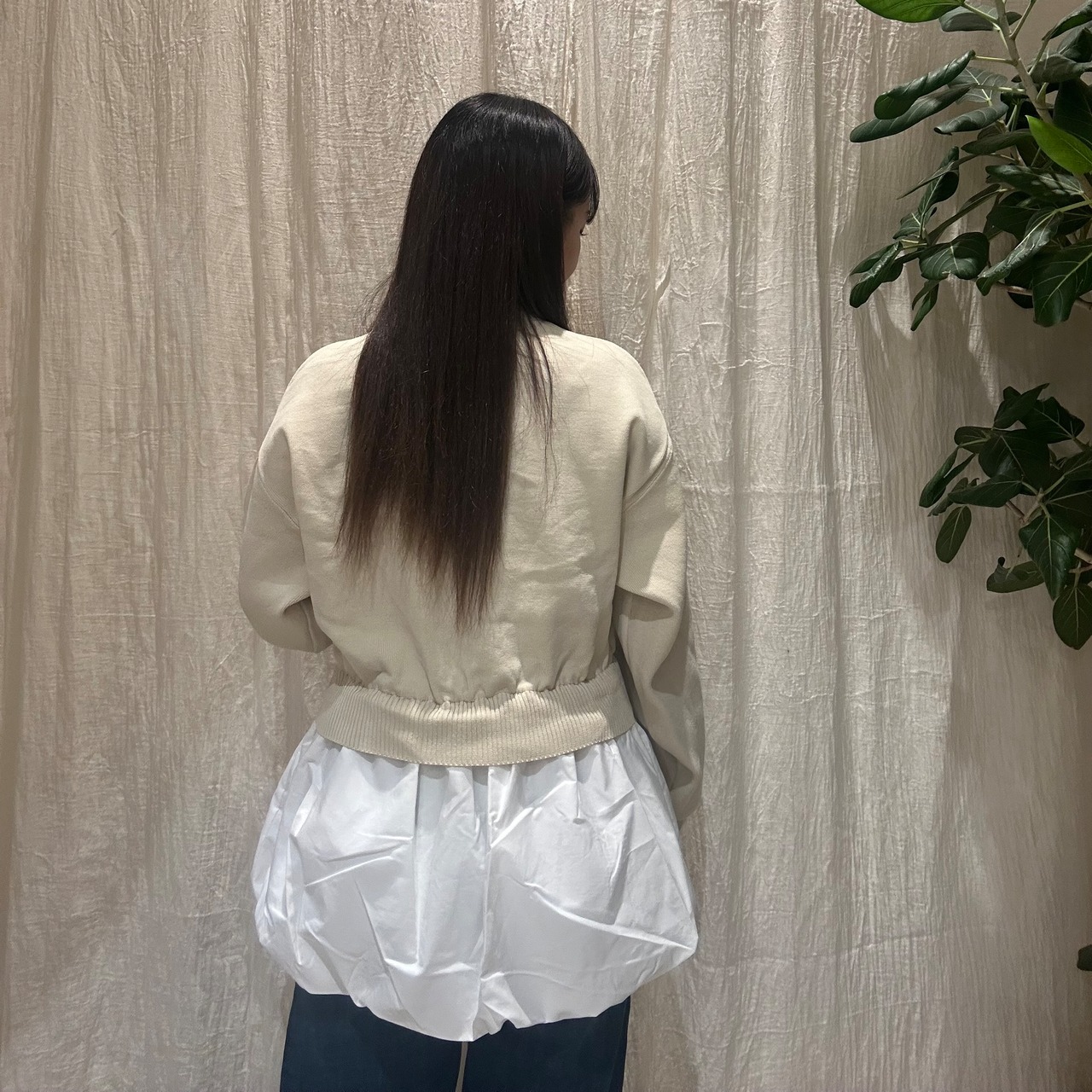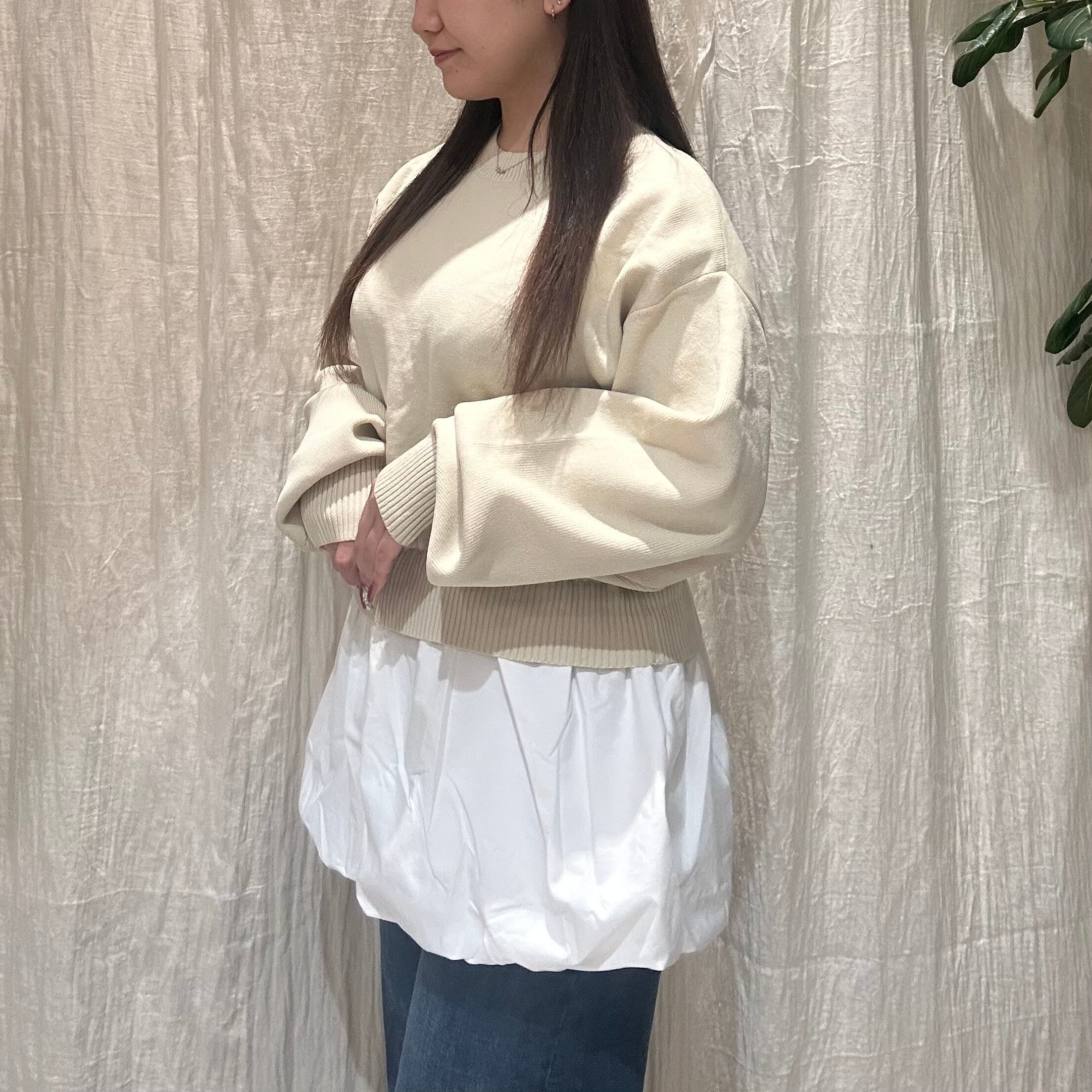 襟部分がバルーンシルエットのシャツレイヤードになっているので、枚でこなれ感を出してくれるアイテムです◎