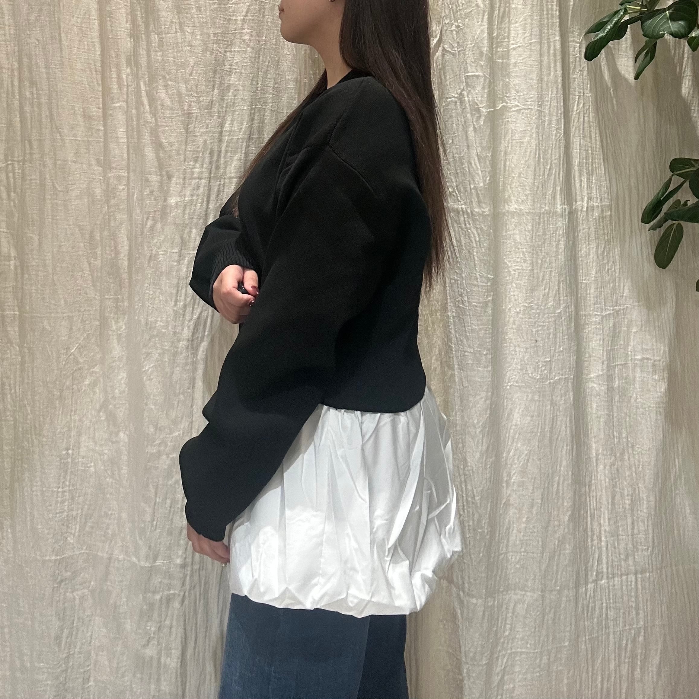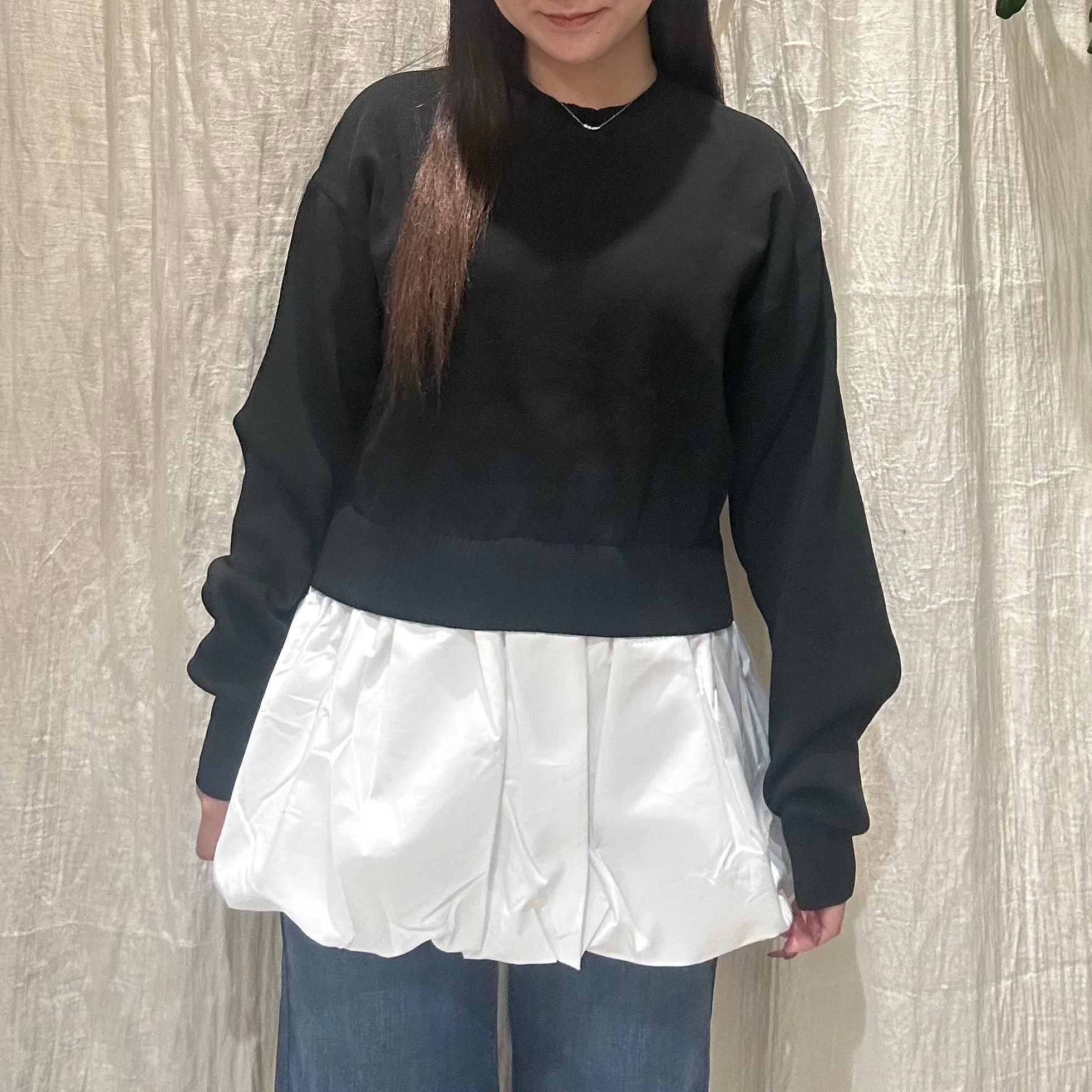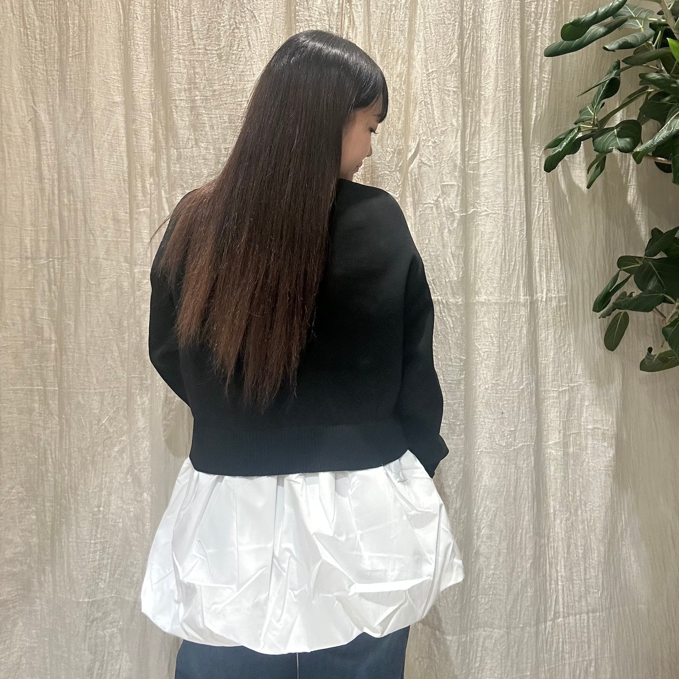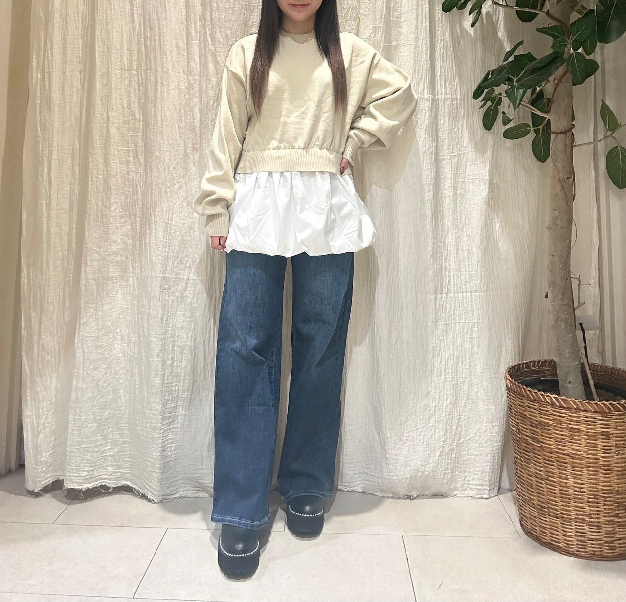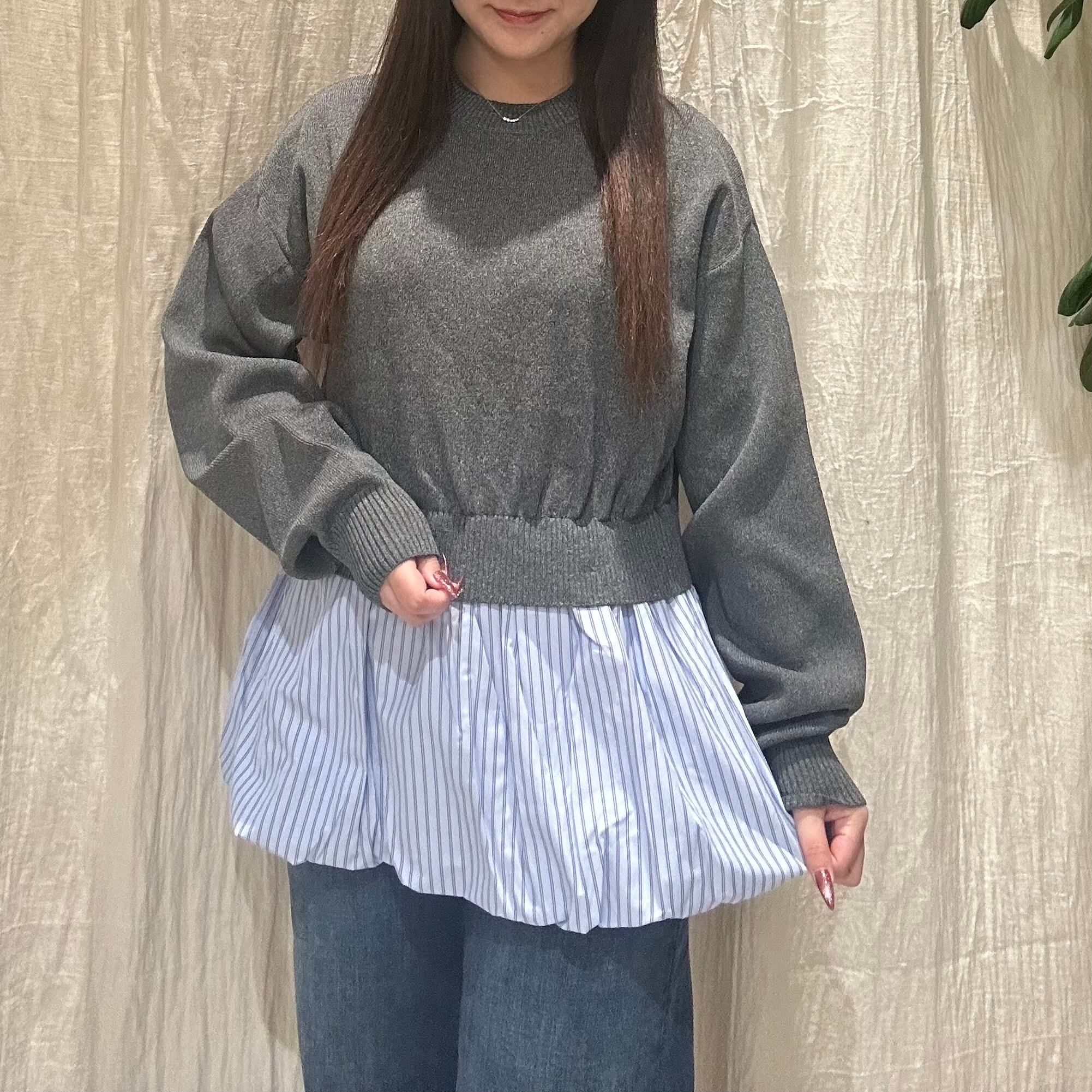 襟部分がバルーンシルエットのシャツレイヤードになっているので、枚でこなれ感を出してくれるアイテムです◎