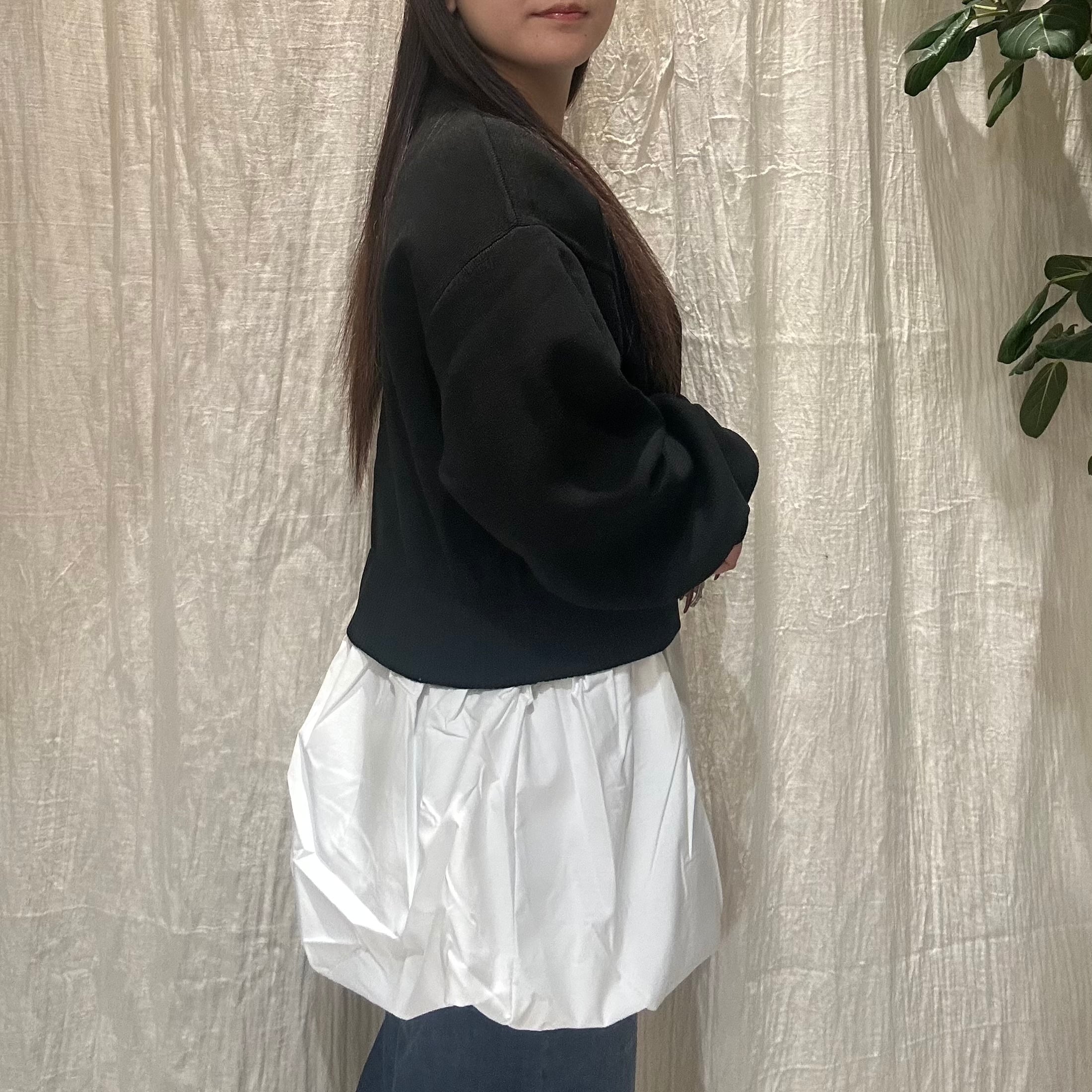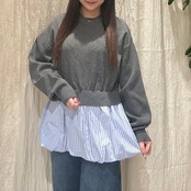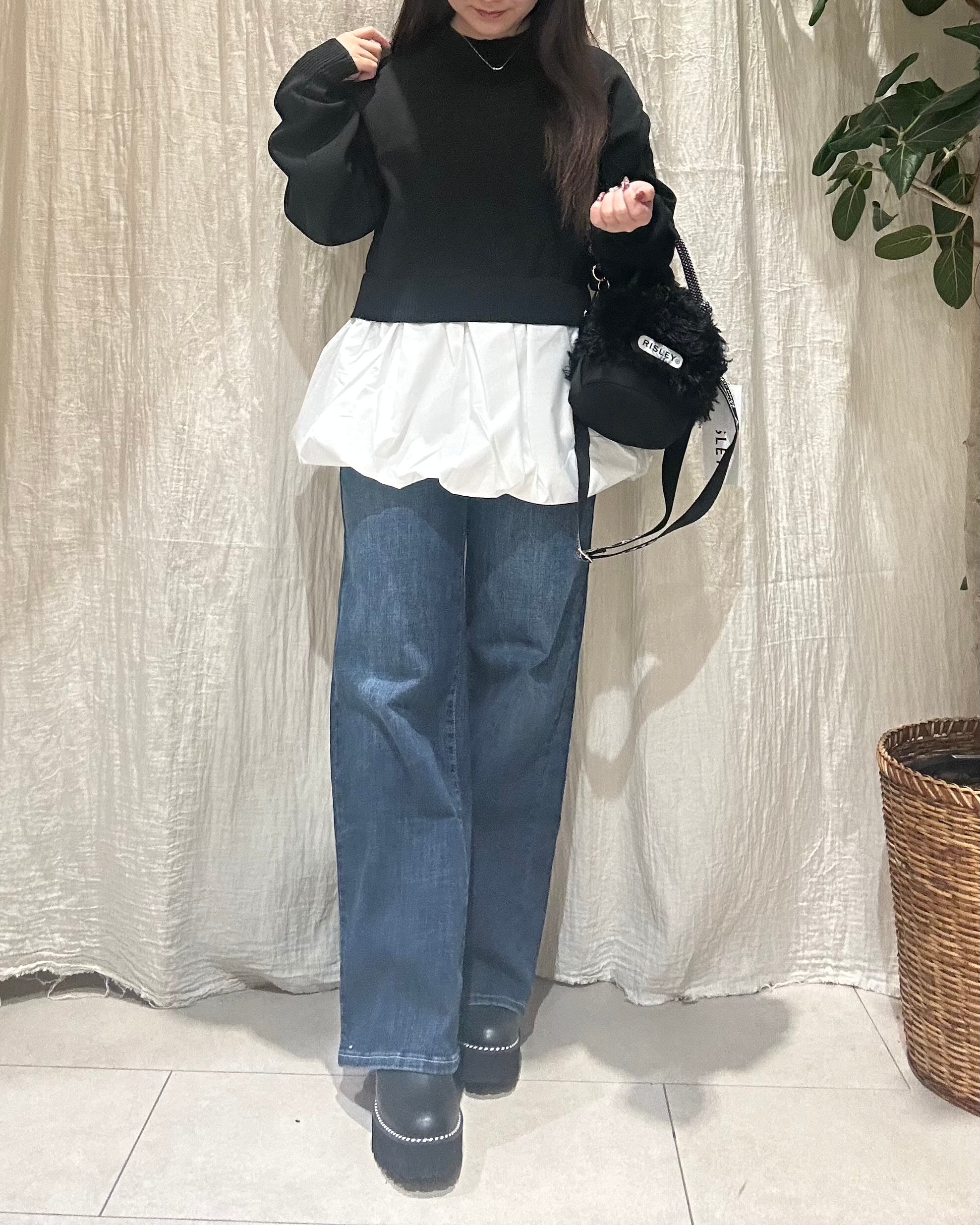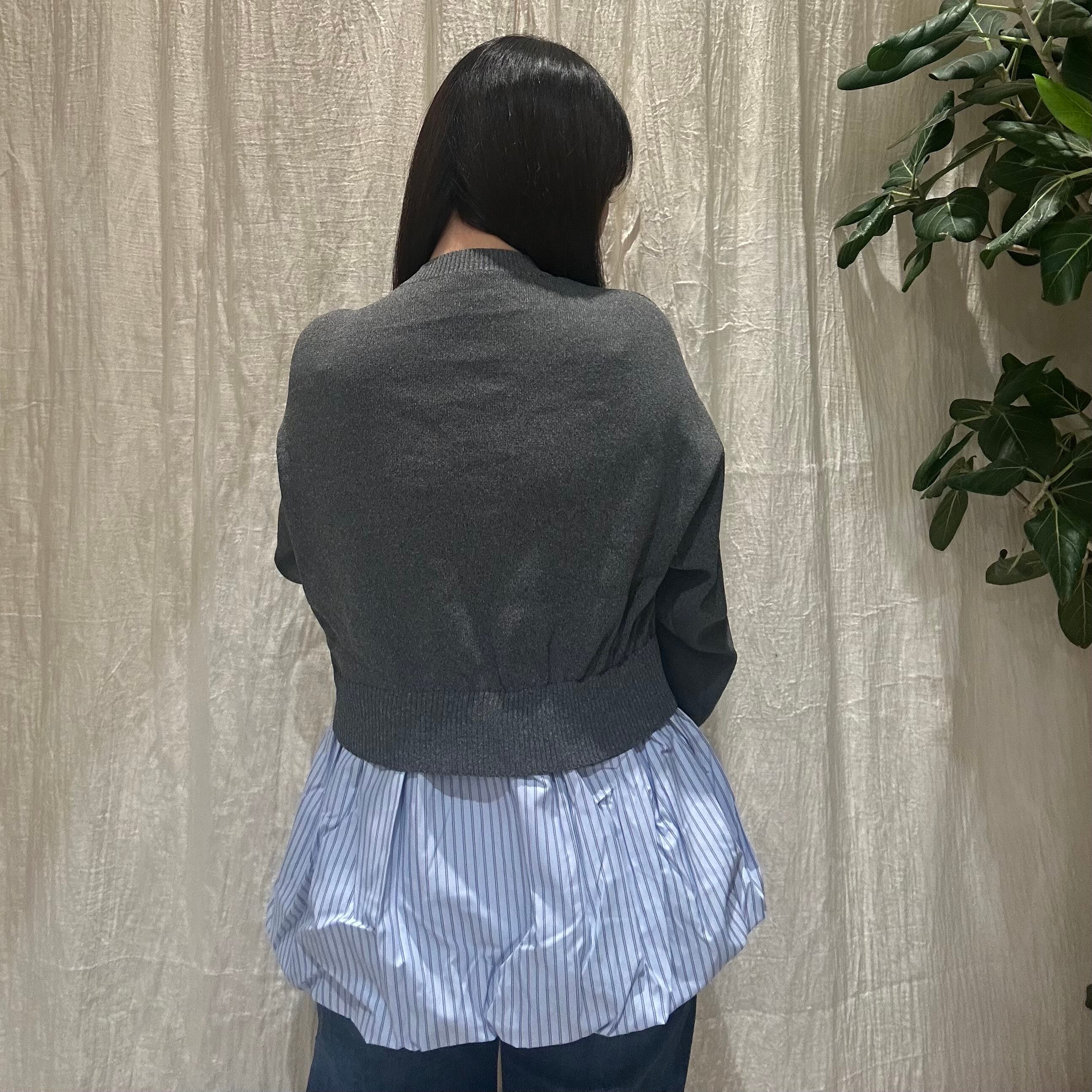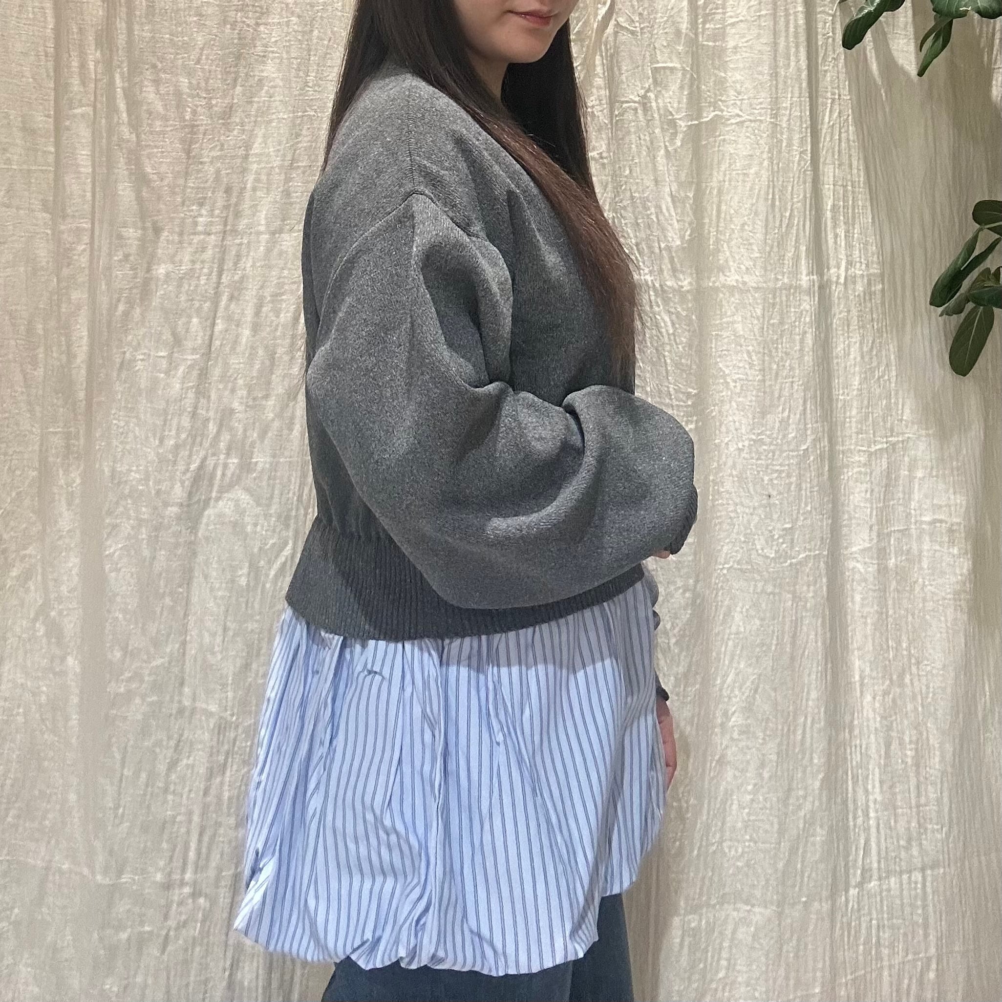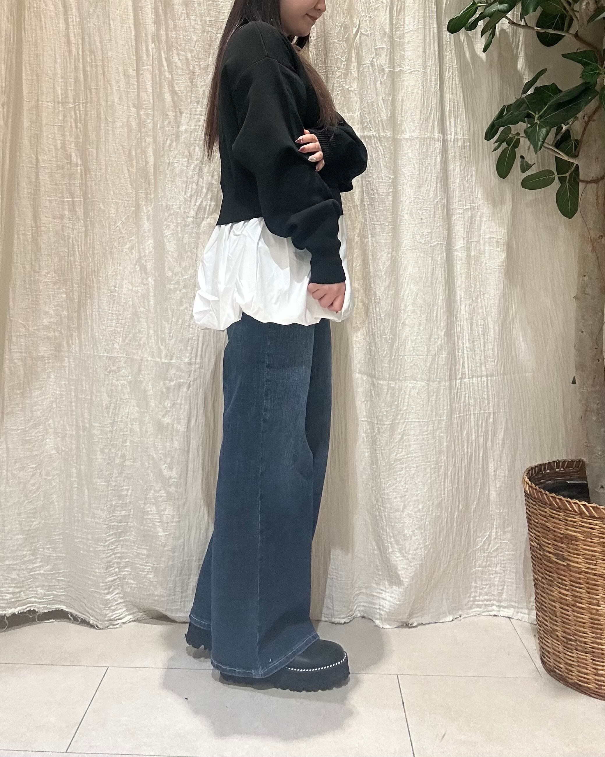 襟部分がバルーンシルエットのシャツレイヤードになっているので、枚でこなれ感を出してくれるアイテムです◎