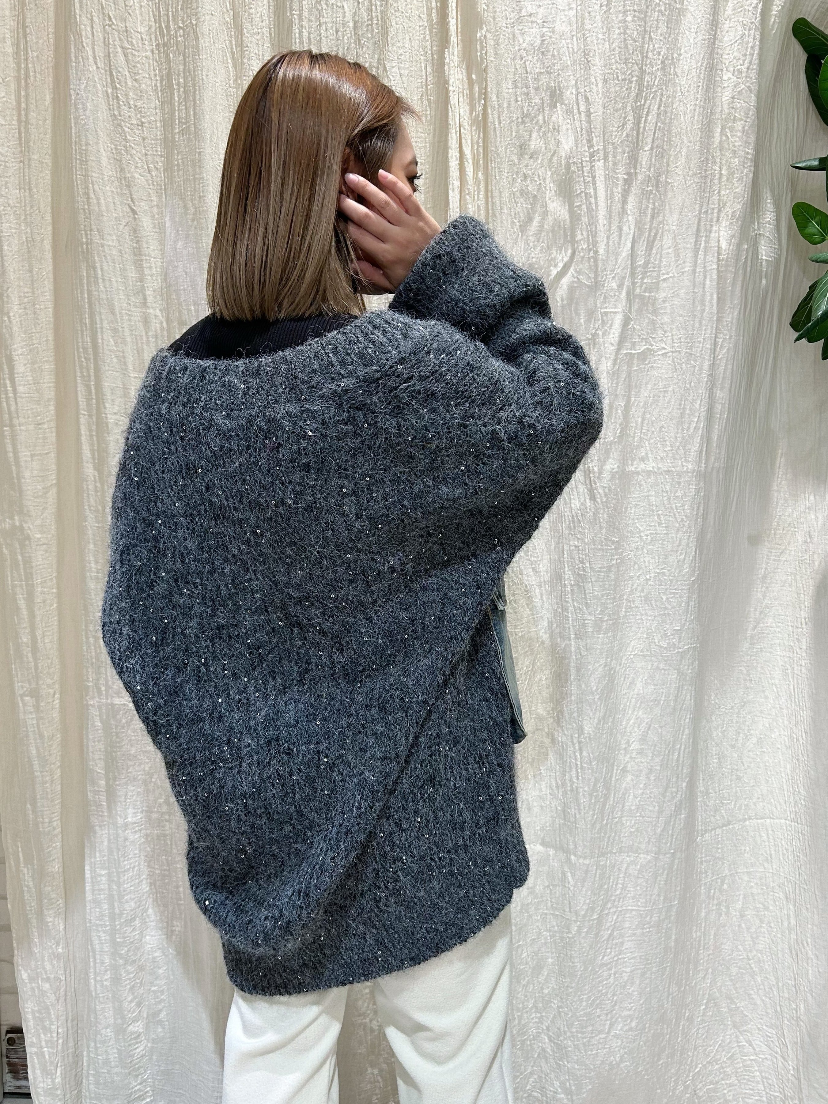ラスパンコールを施されたmixラメニットなのでボーイッシュなデザイン.シルエットながら女性らしさもきちんと出せるアイテム
