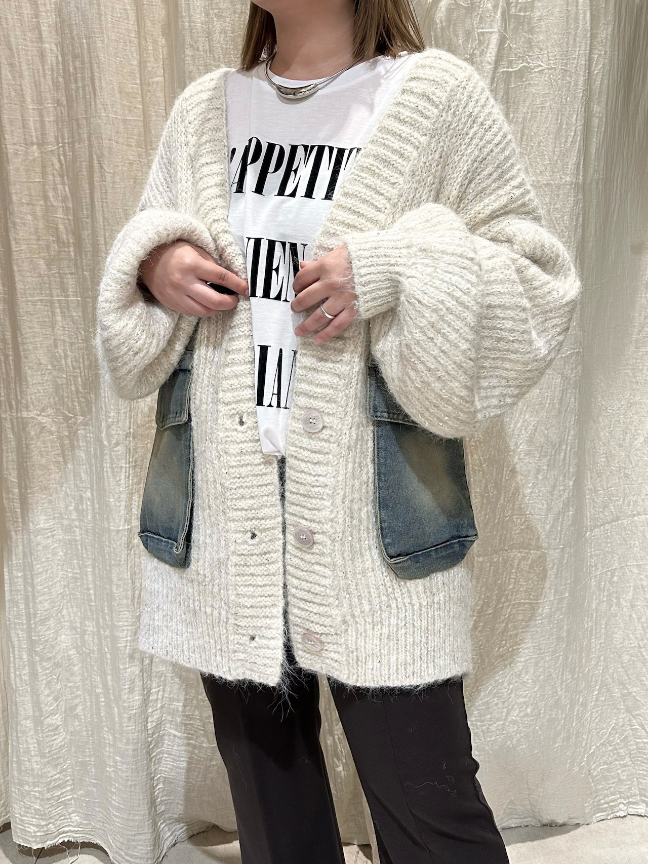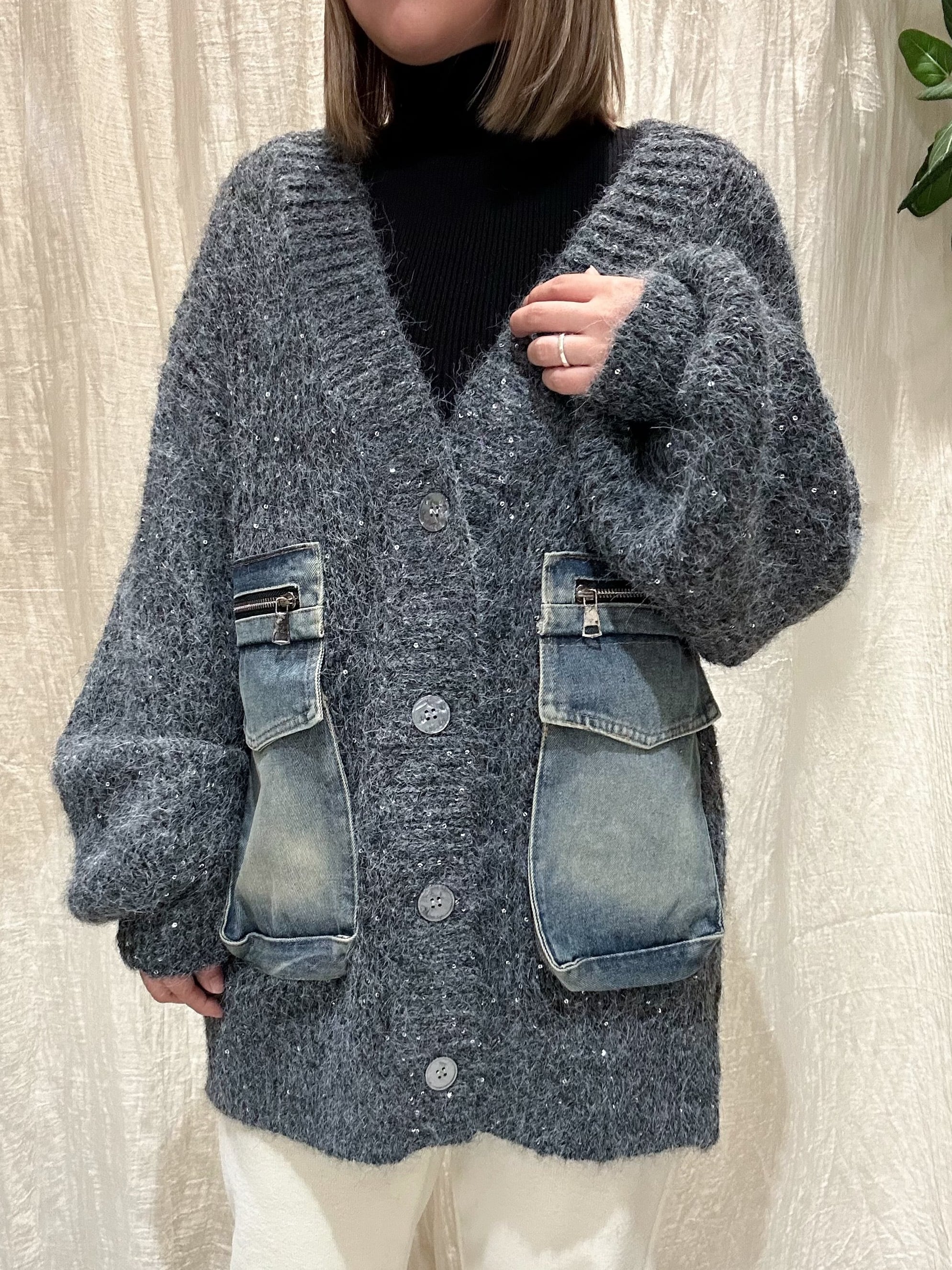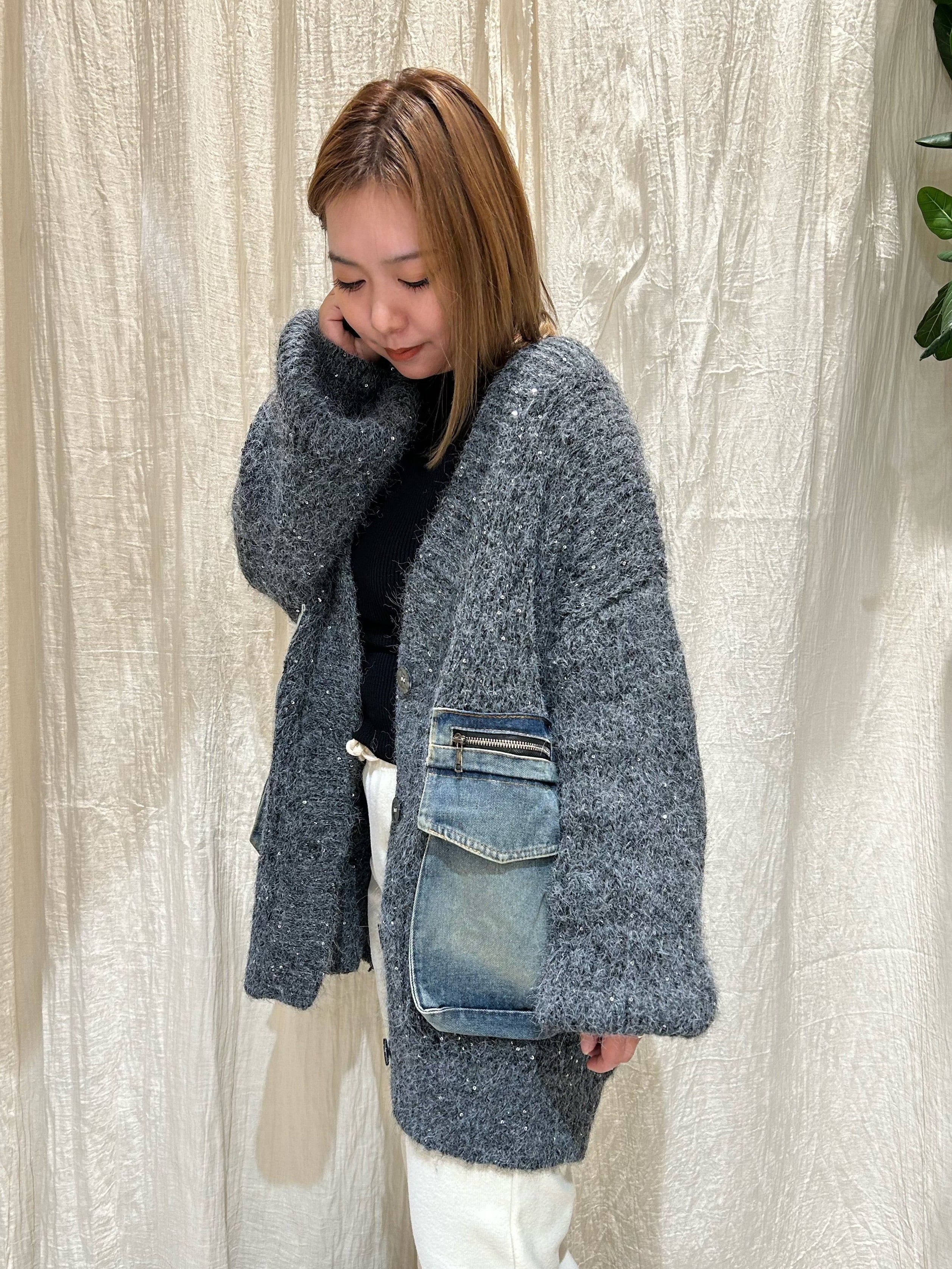 デニムポッケ付きニットカーディガン EARLselect(アールセレクト)