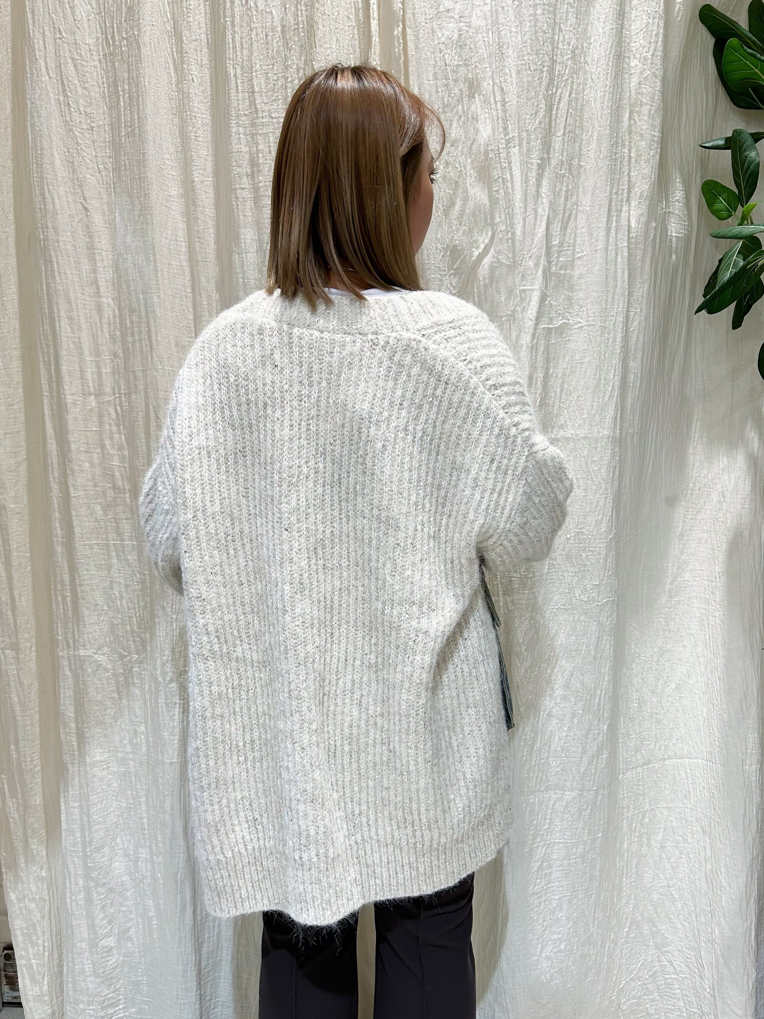 甘くならないラメカーディガンです