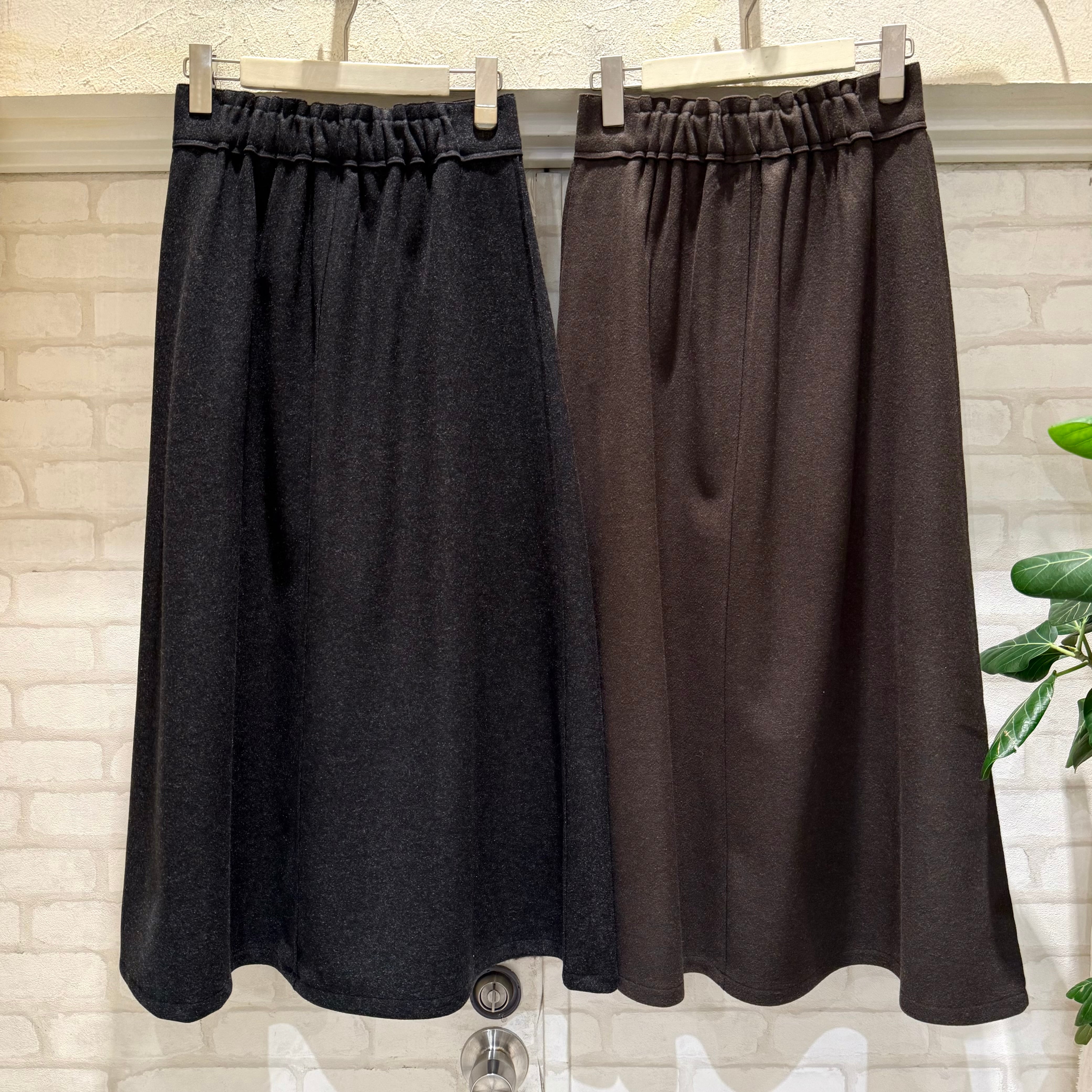 エイミー定番のメルトンジャージ素材を使って仕上げた暖かみあるフレアースカート。