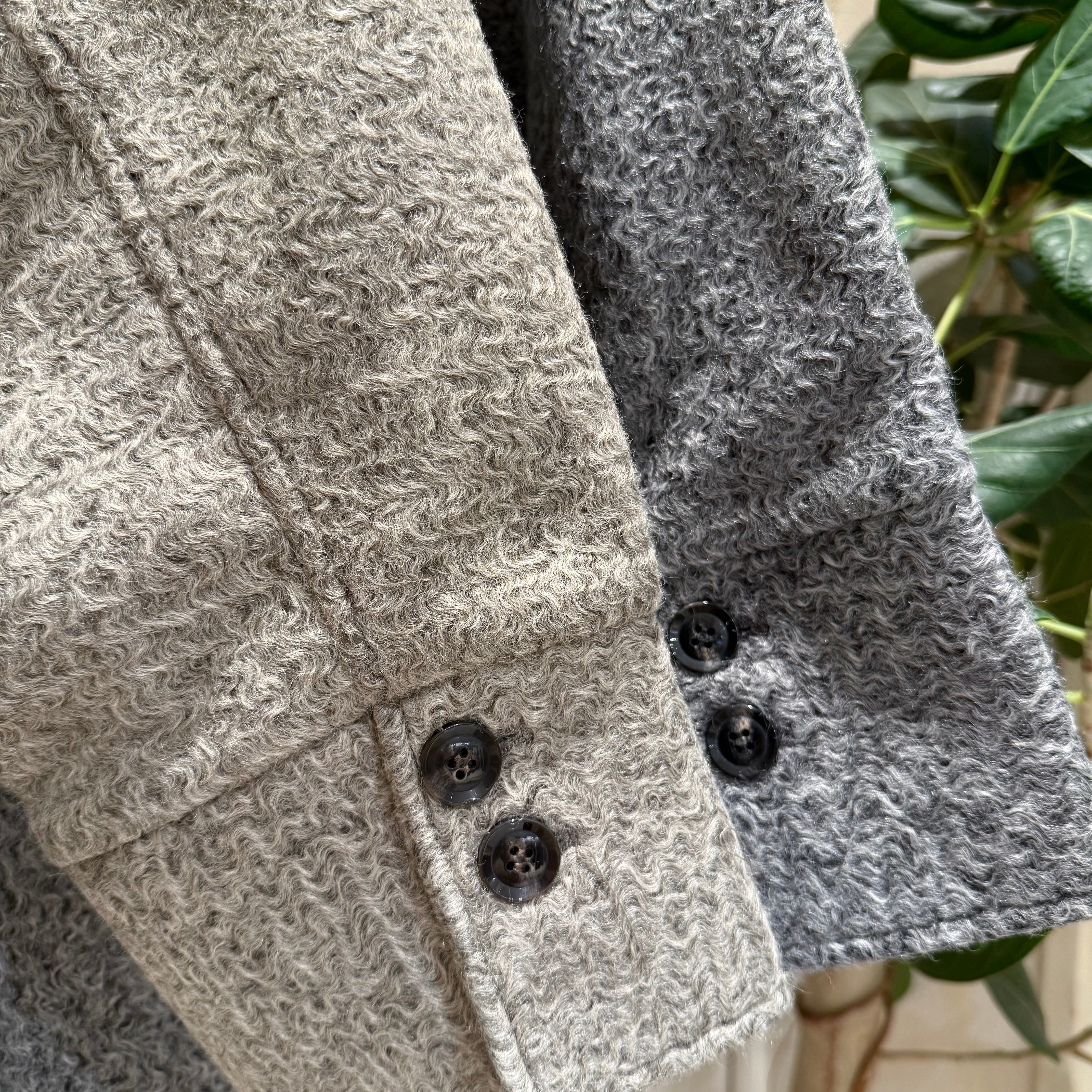 独特のうねりが生む立体感が魅力のカールシャギー素材を使用したダブルコート。