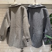 ゆったりとしたシルエットにやや大きめのラペルが映え、羽織るだけでこなれた印象に。