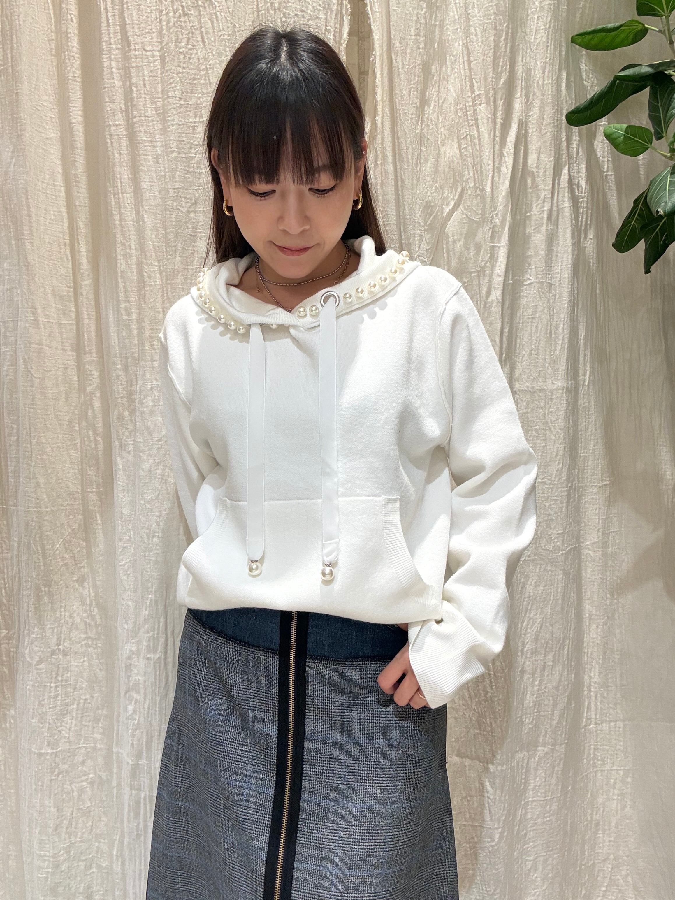 ハイゲージニット&パール&ベロアリボンで女性らしいデザインに落とし込みました。