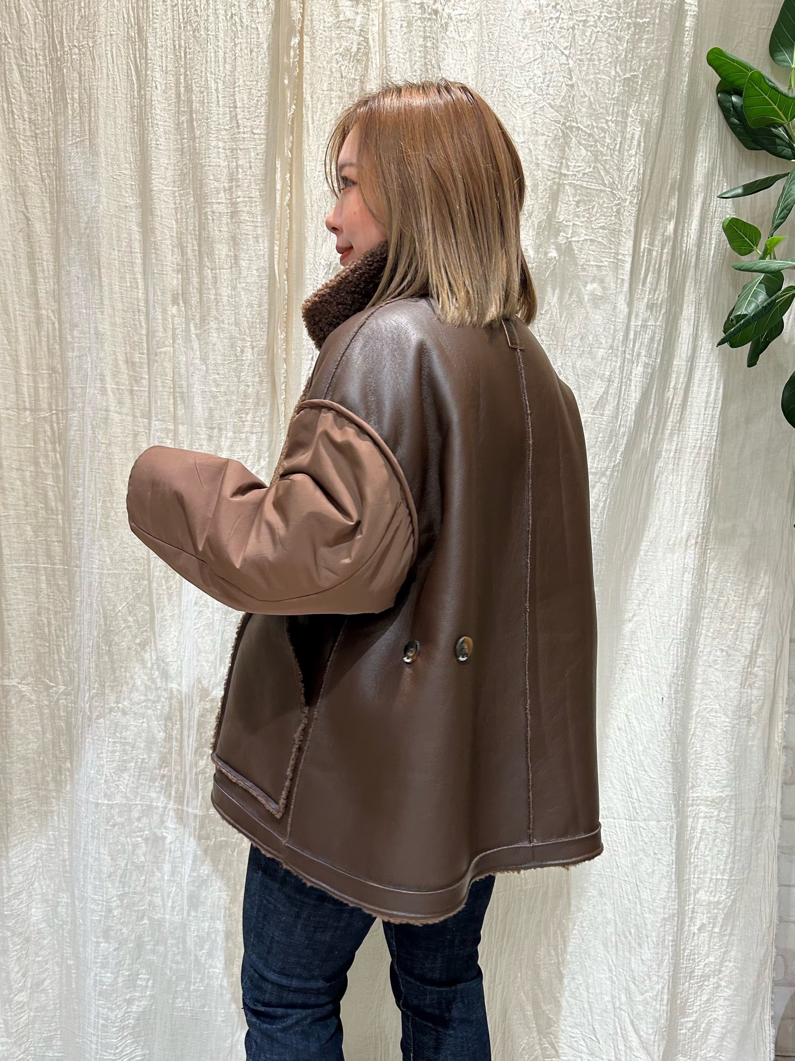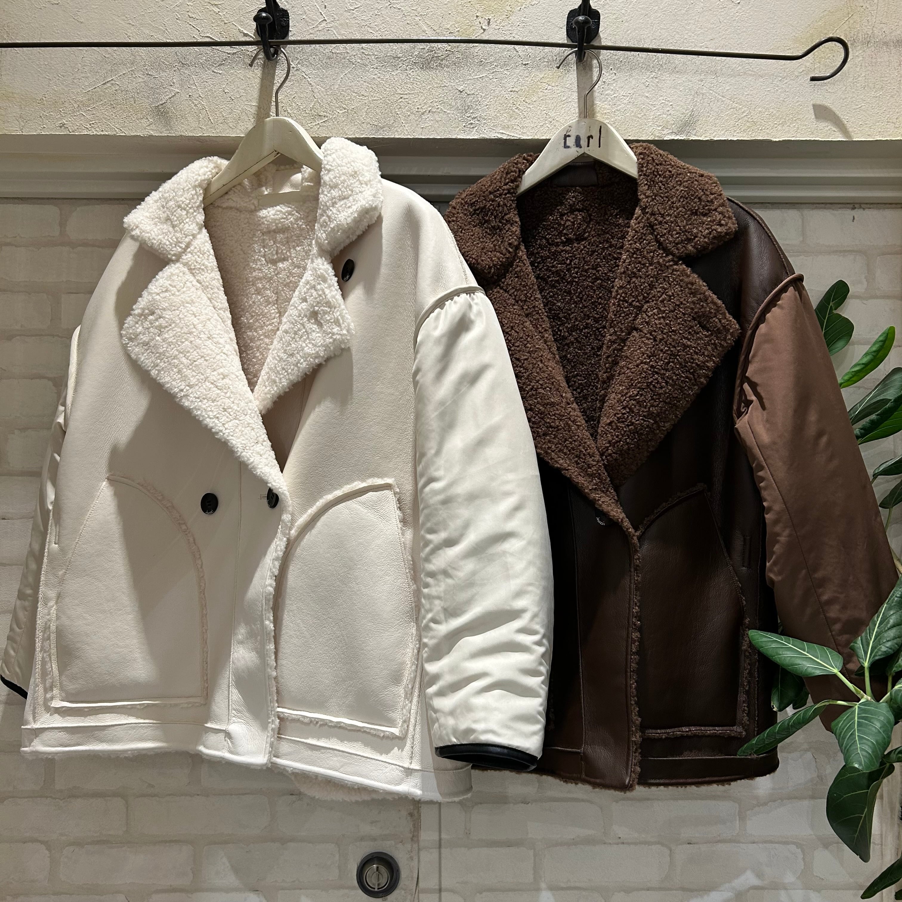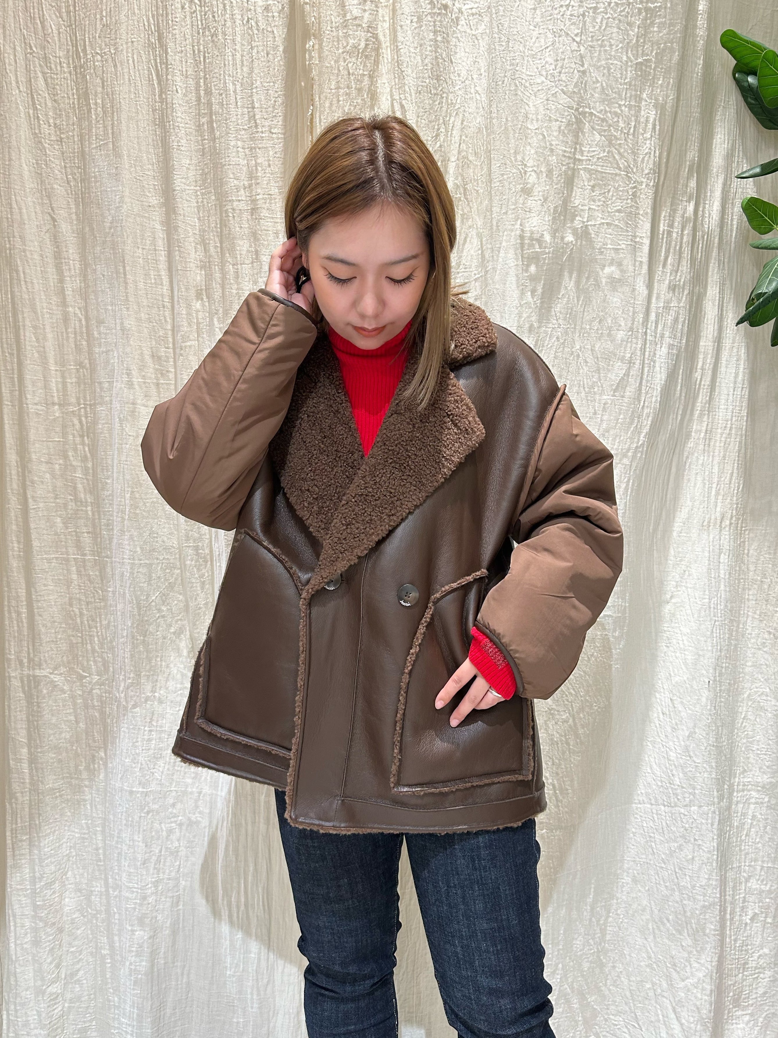 ボア側は柔らかな印象を、レザー側はモードな印象を演出。