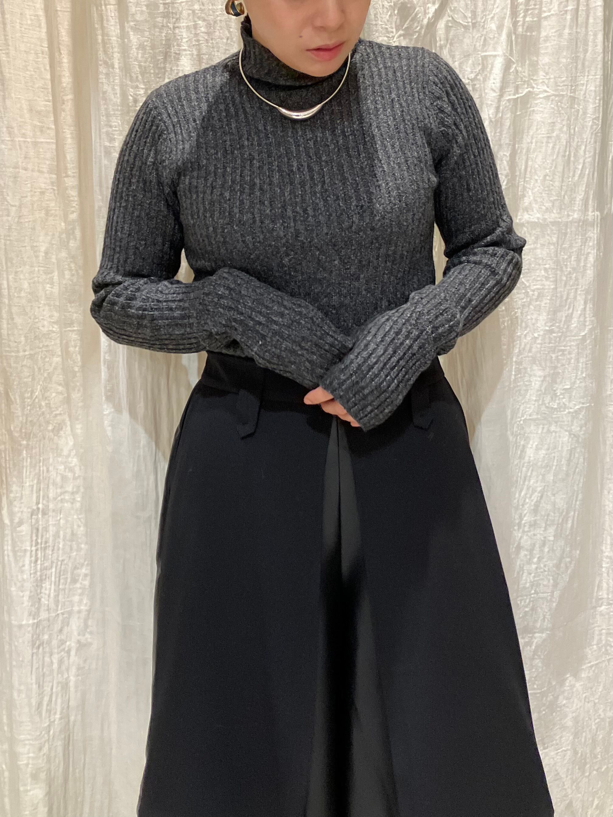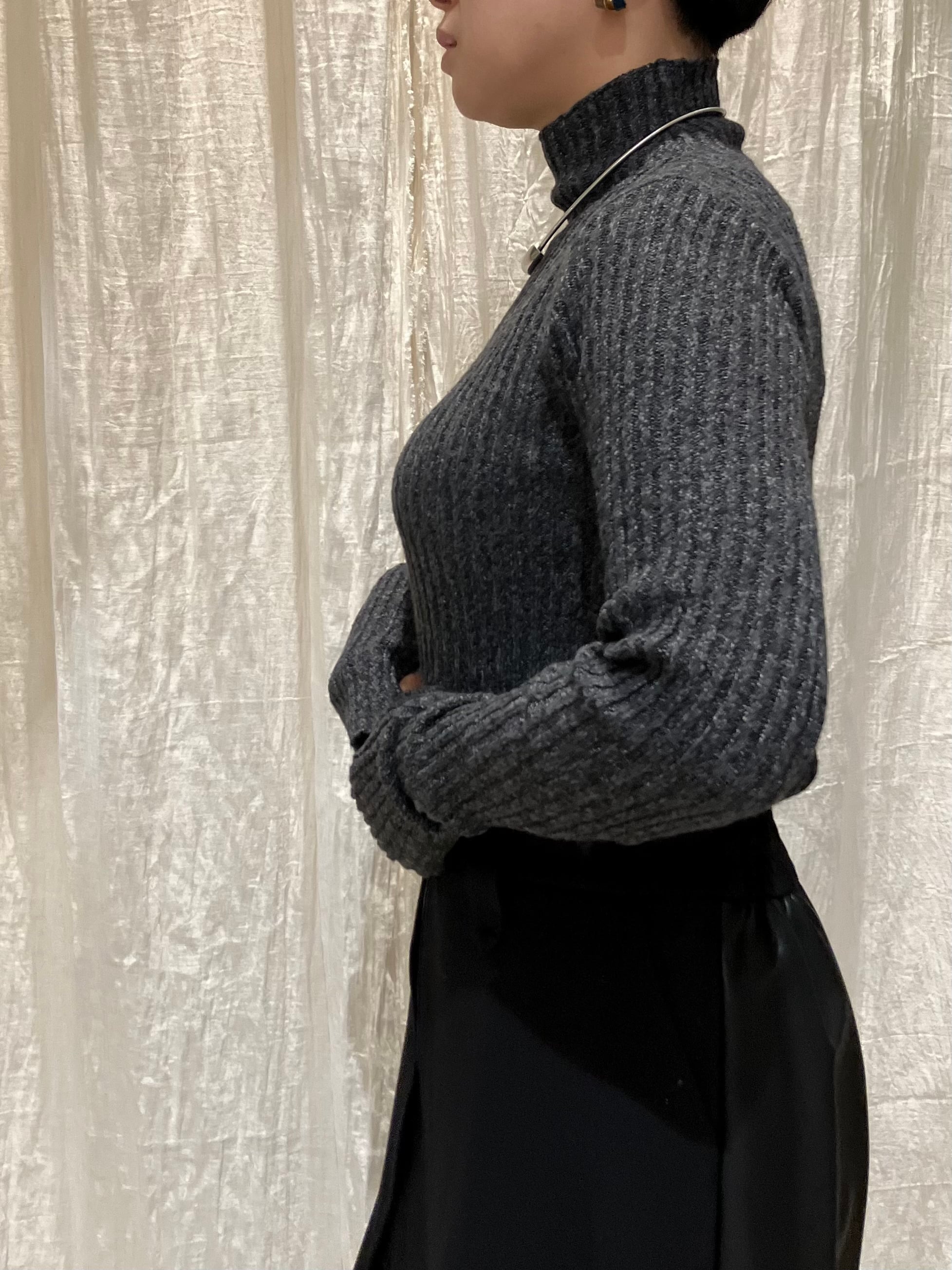 表情豊かなミックスニットのハイネックニット