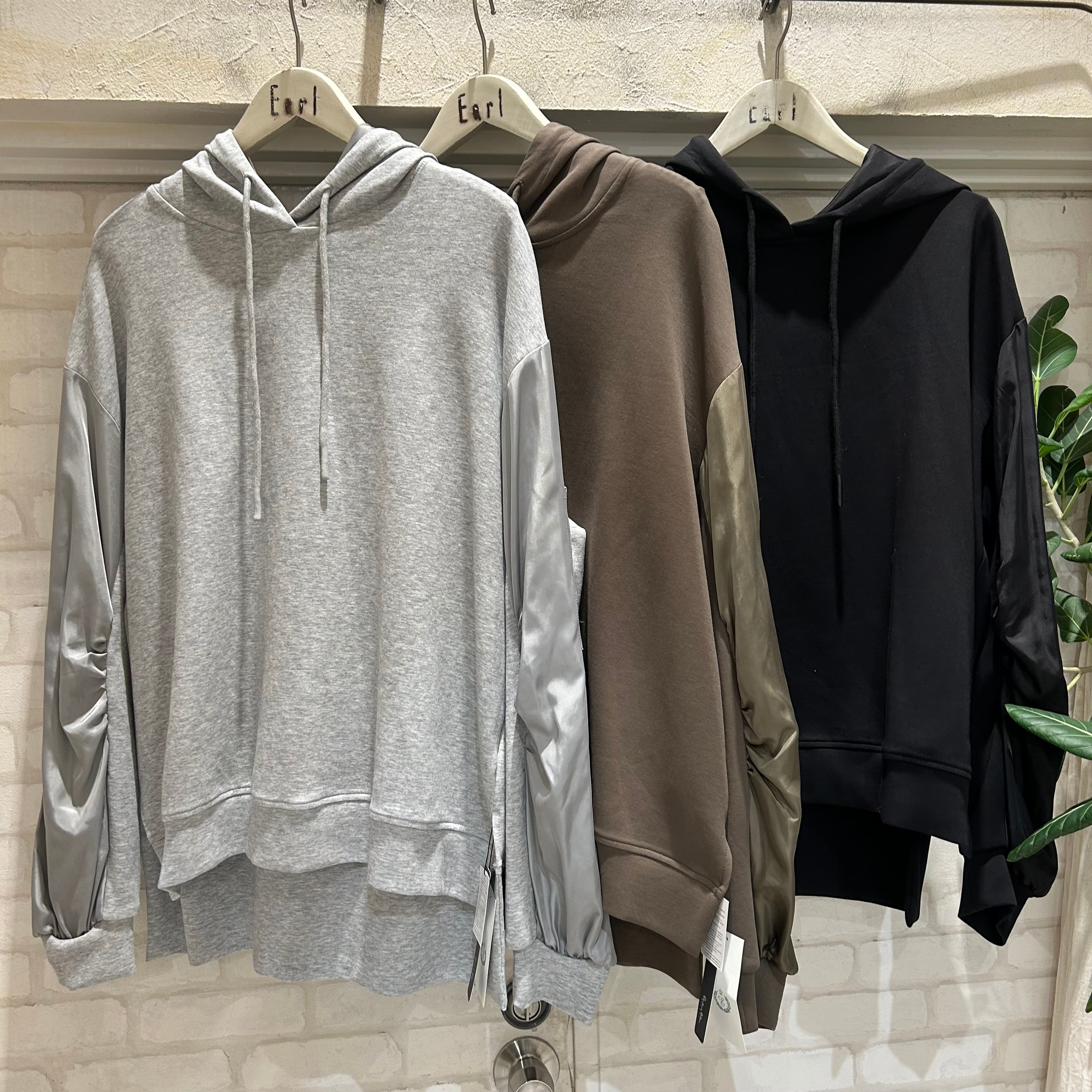 袖異素材切替サイドスリットパーカー Pauline Bleu(ポリーヌブロー)