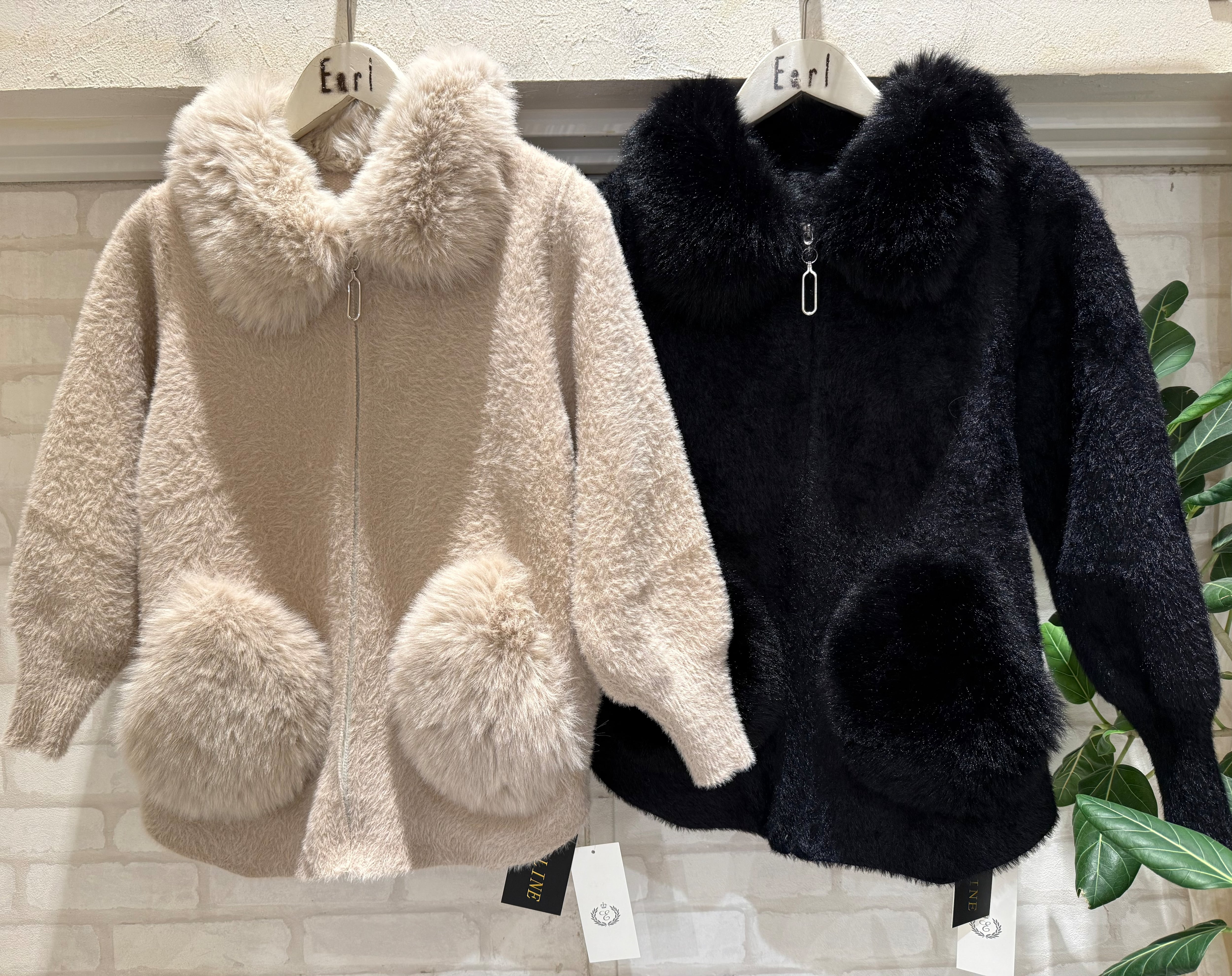 肌触りも良く、ポケット•首元のファーの毛も長くシンプルですが可愛らしい一枚です。