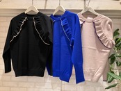 ラグラン部分にフリルのついたニットプルオーバー。ワンポイントで入ったラインも可愛くて綺麗めに着ていただけます。