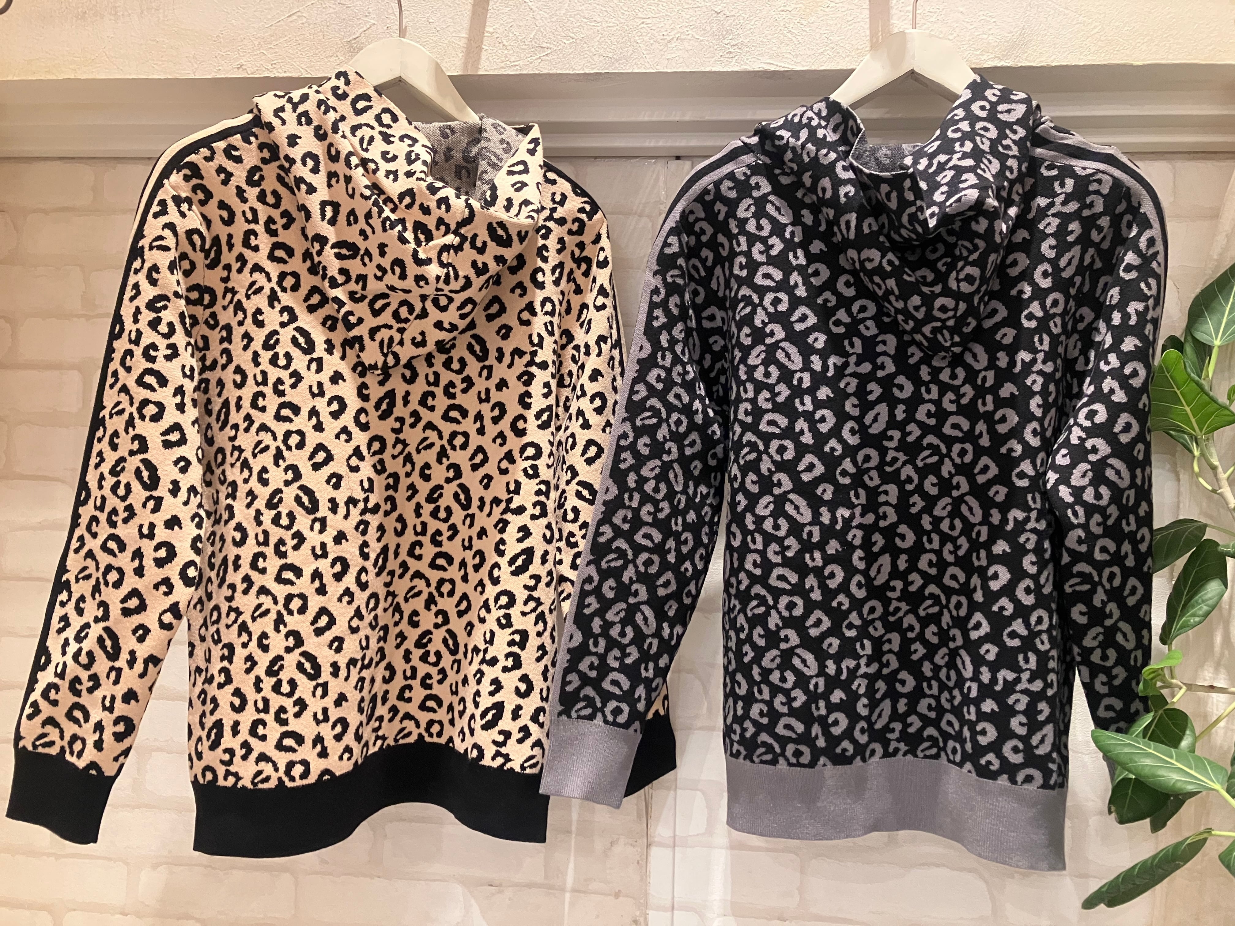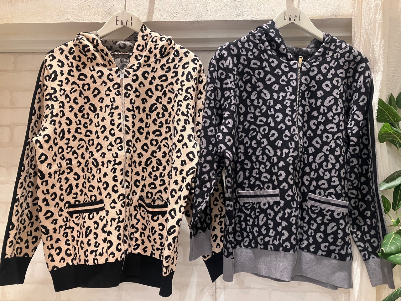 レオパード柄が目を引く、存在感たっぷりのニットジップパーカー。