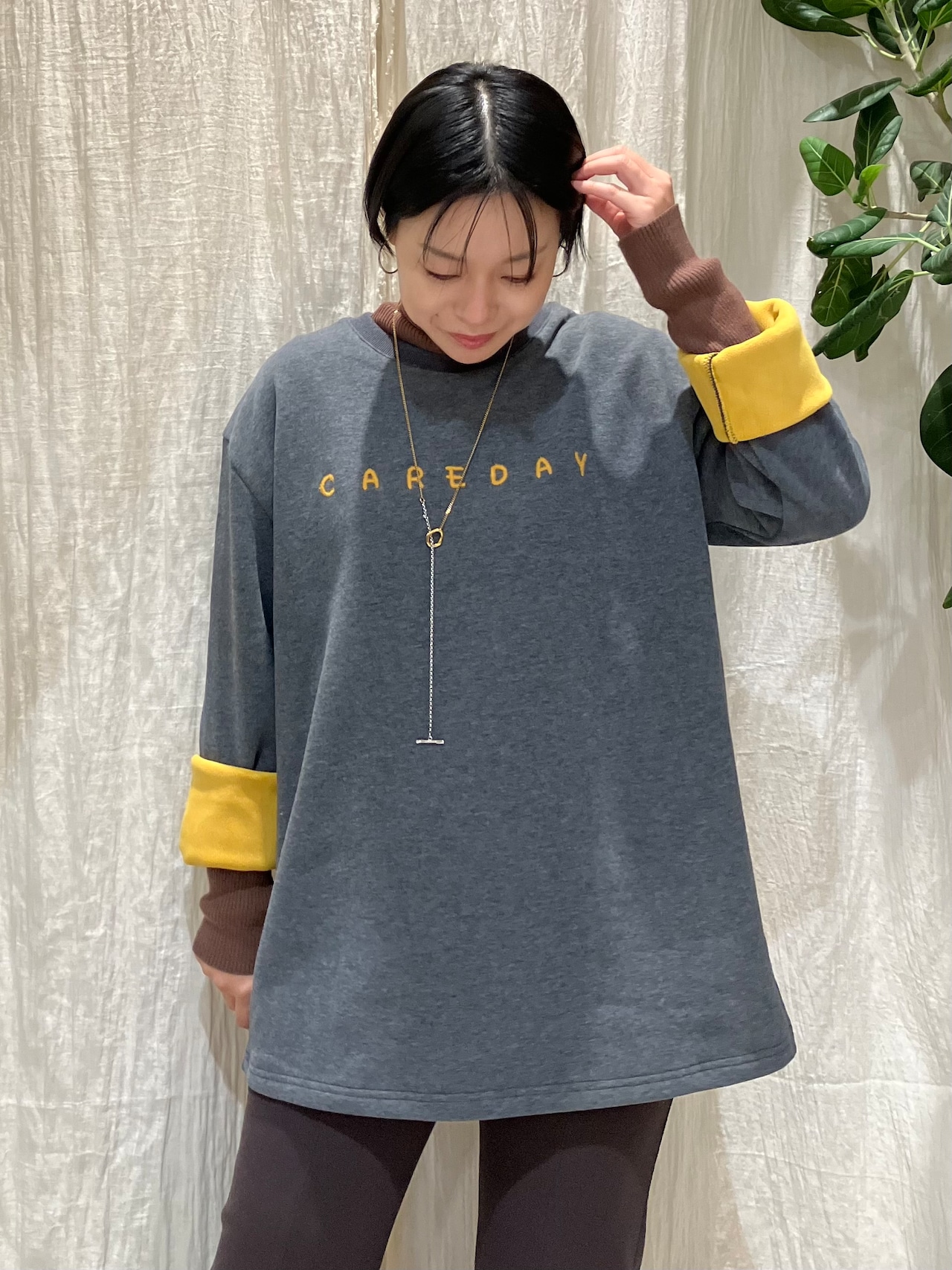 表と裏で色味の異なる配色裏起毛素材を使用。