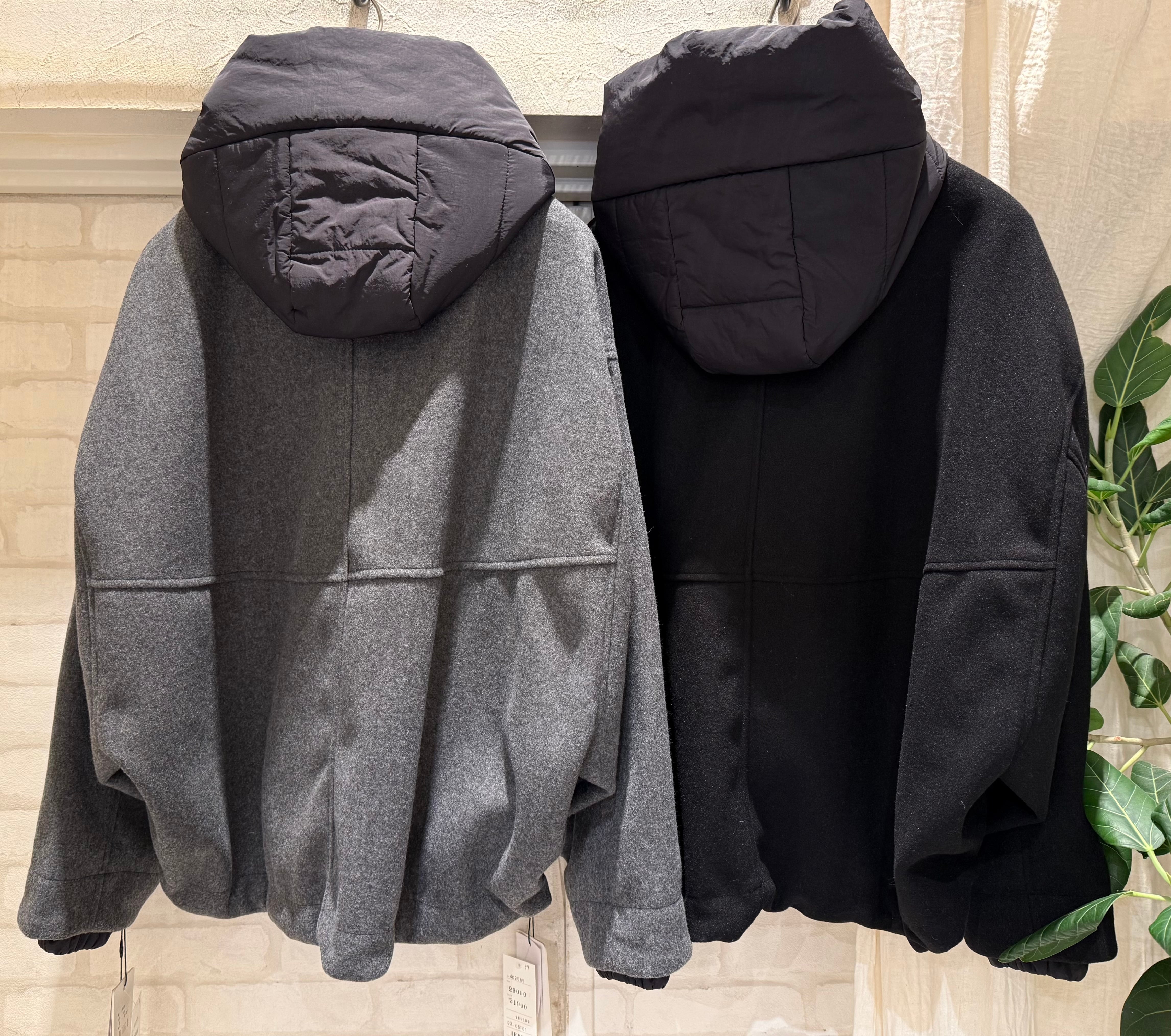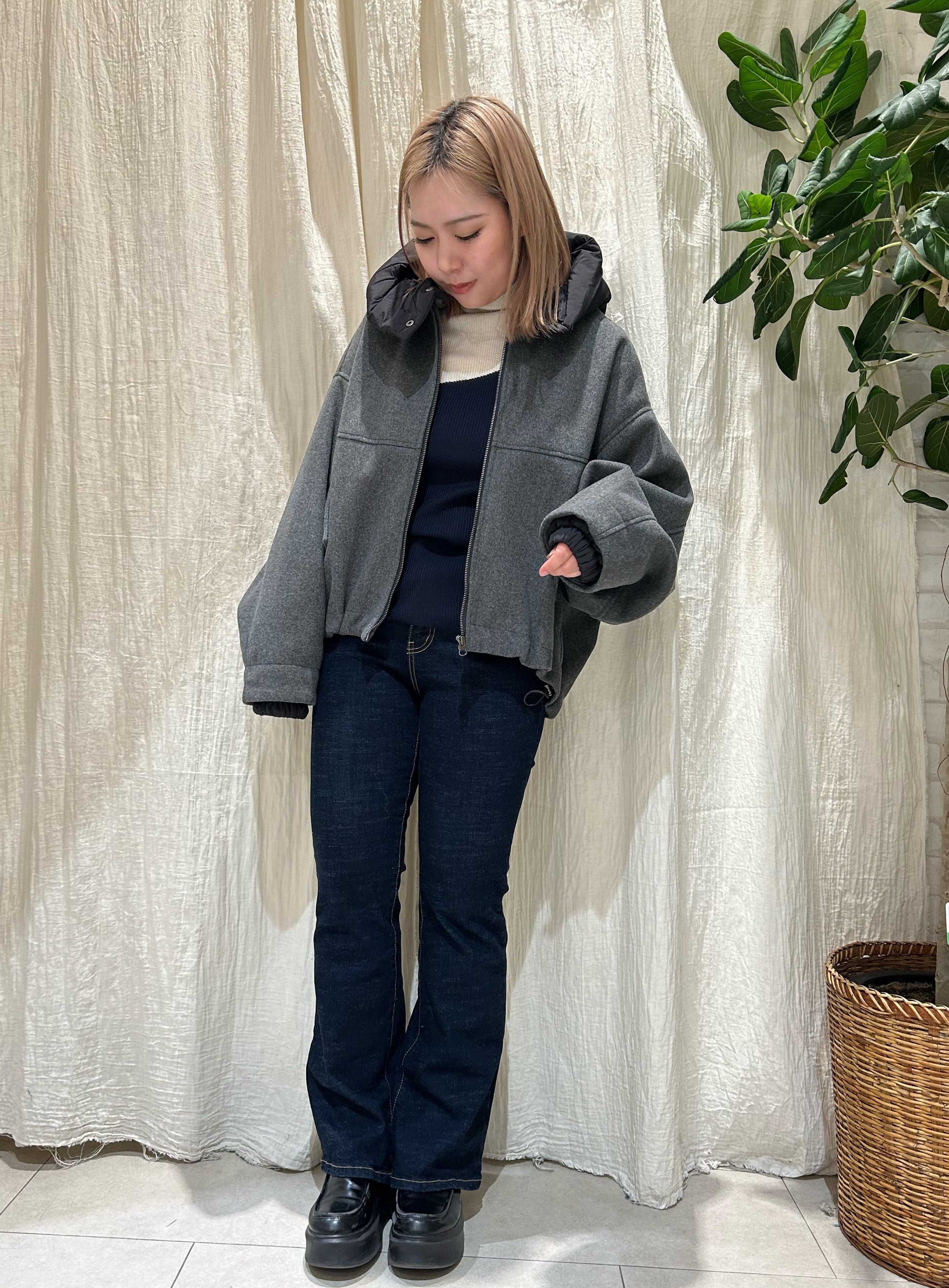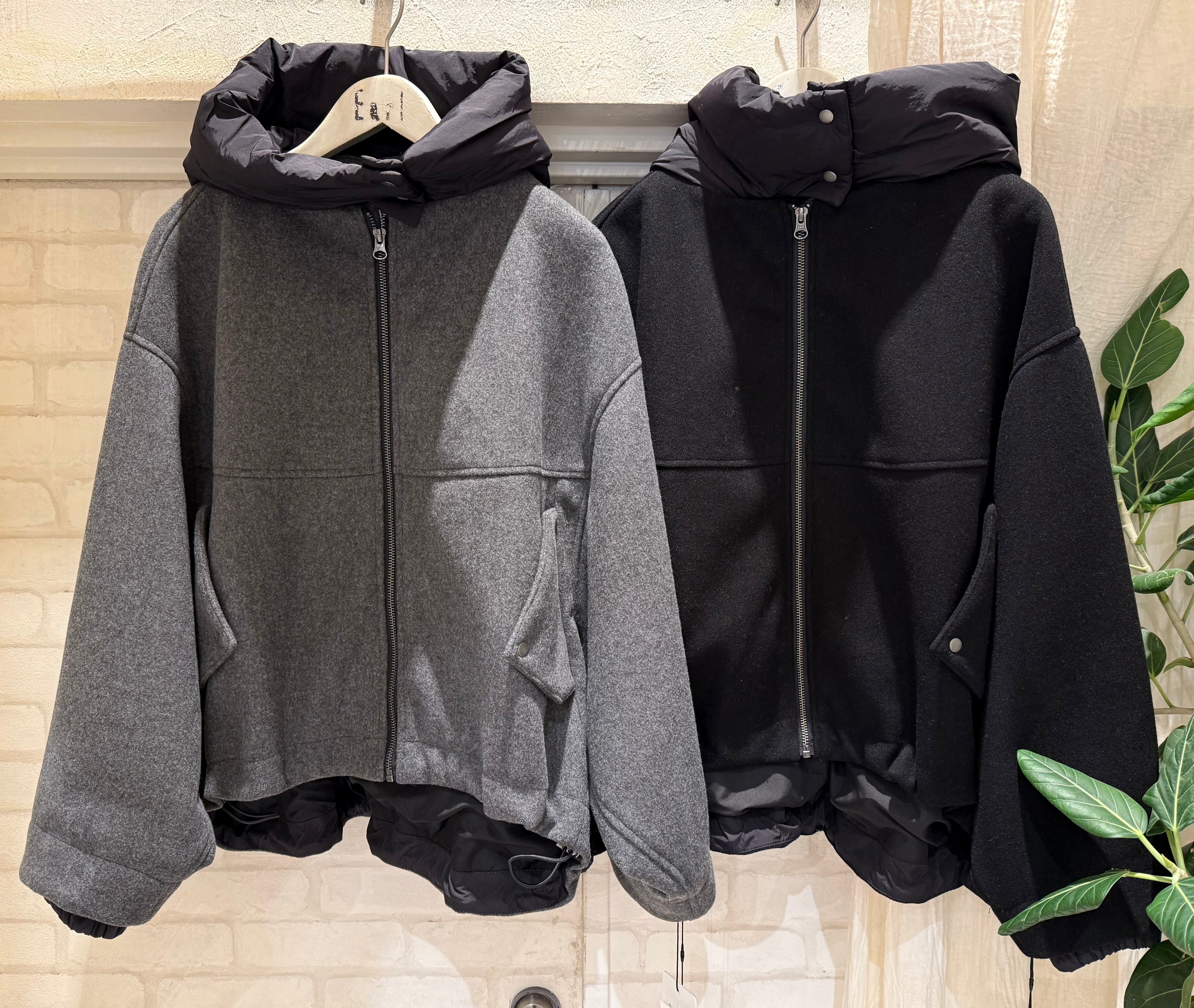裾のラウンドカットがおしゃれなブルゾン。パデット部分は取り外しが可能で、裾部分もドローコードで調整可能です。