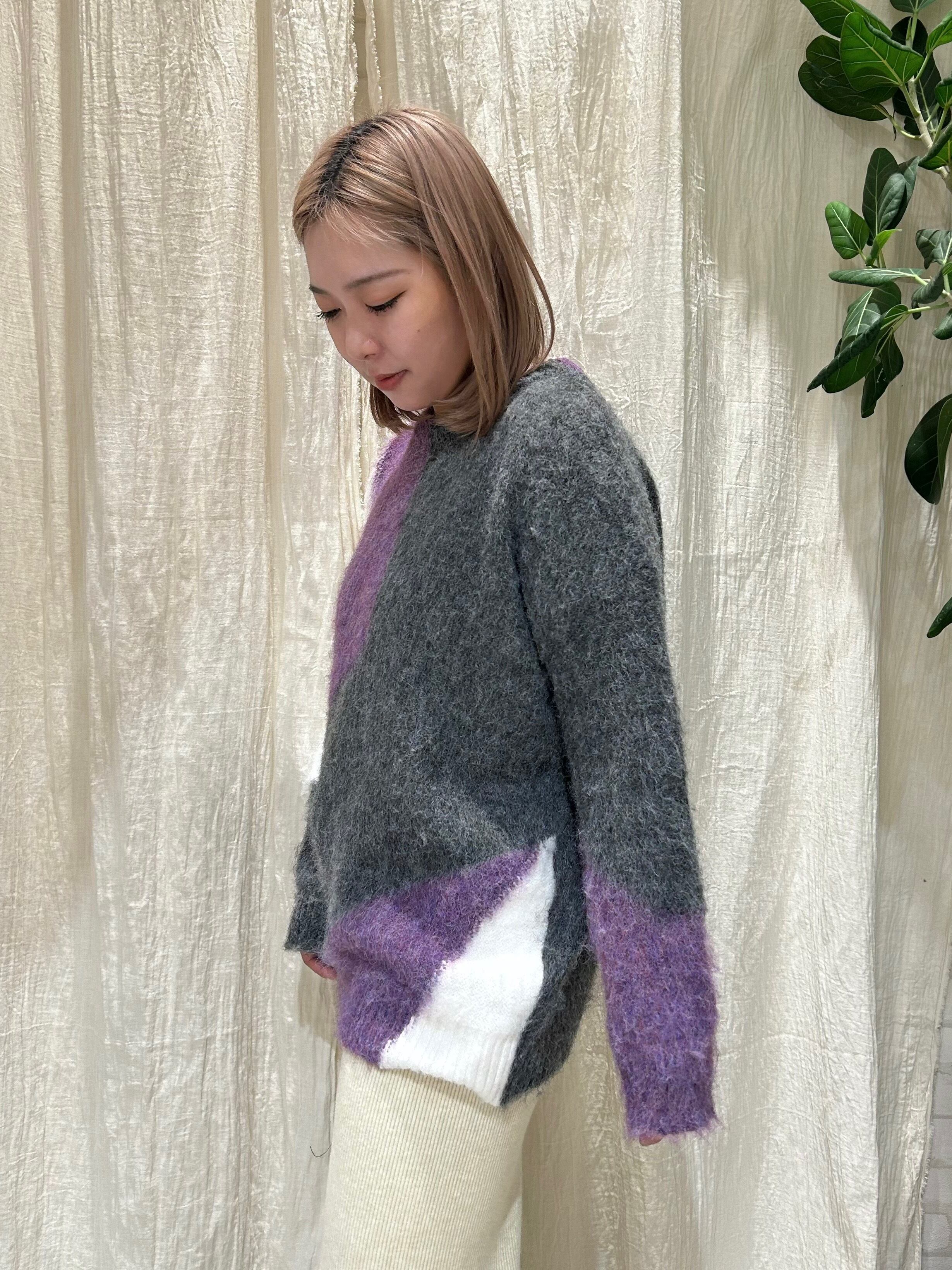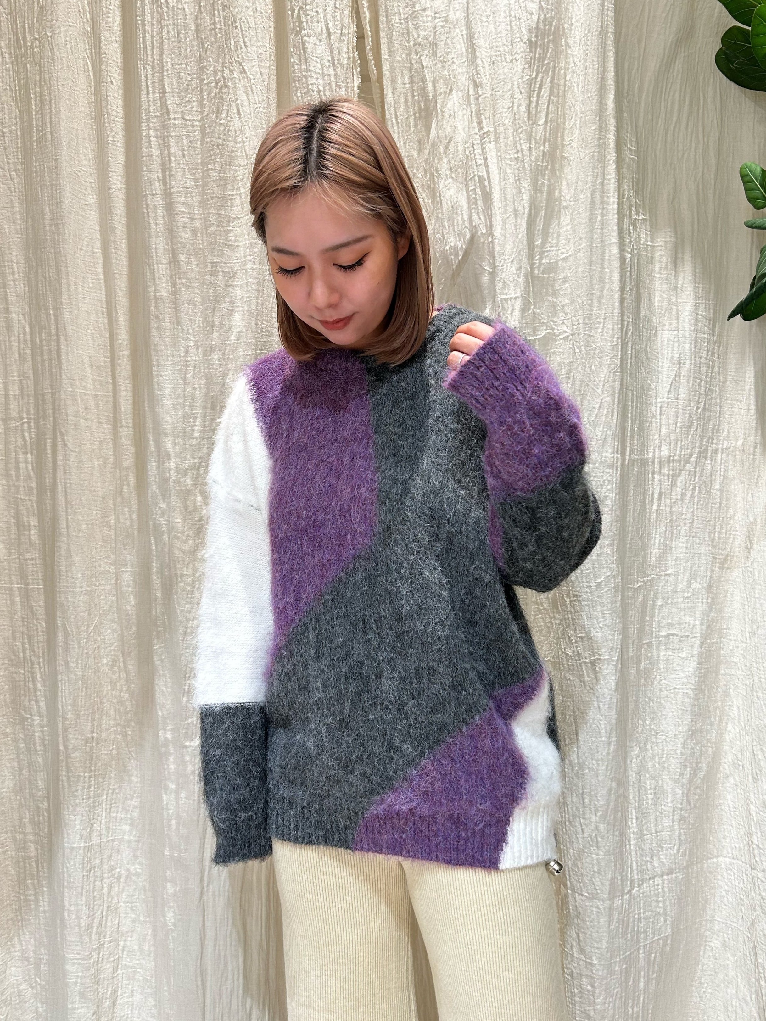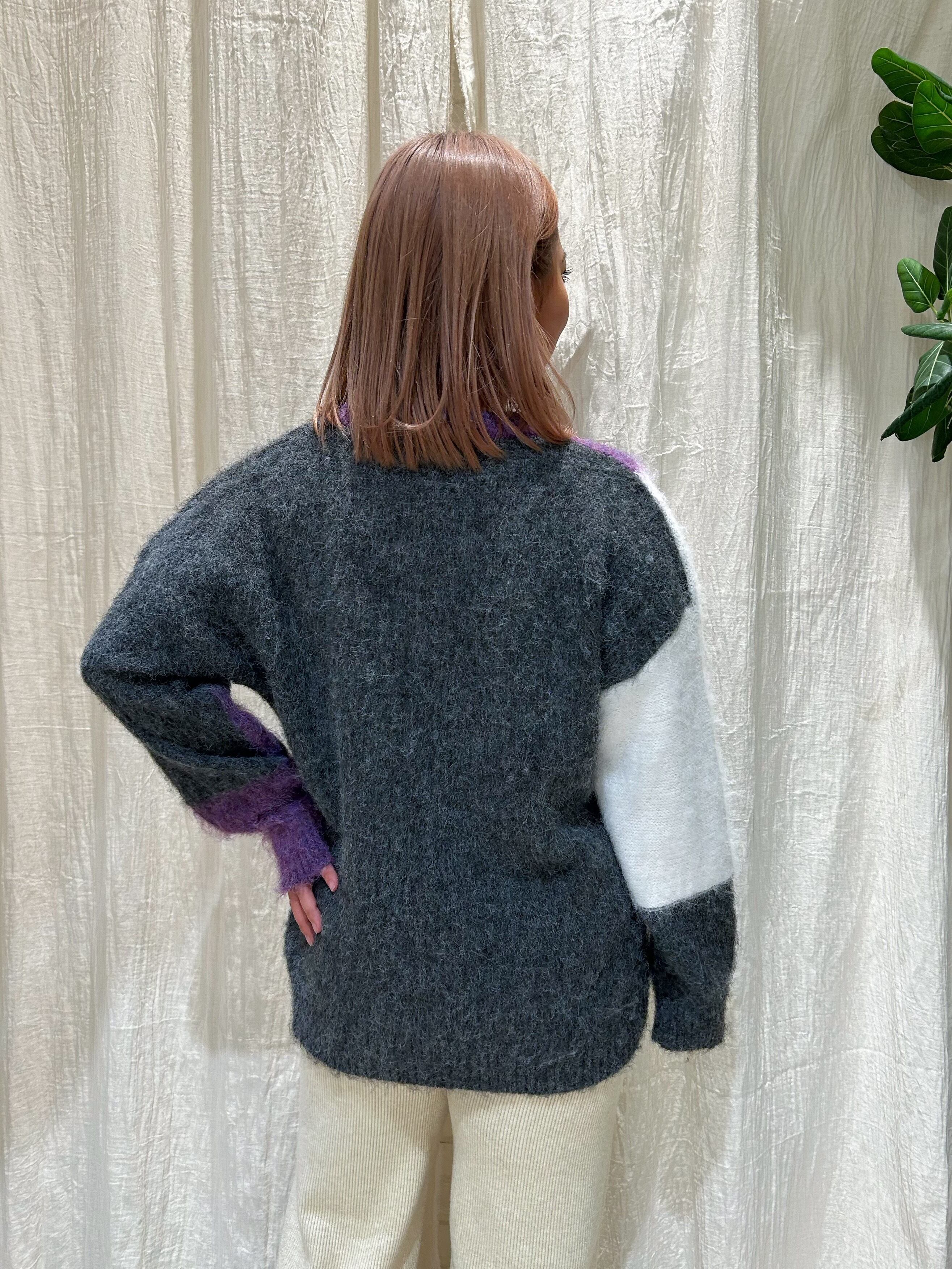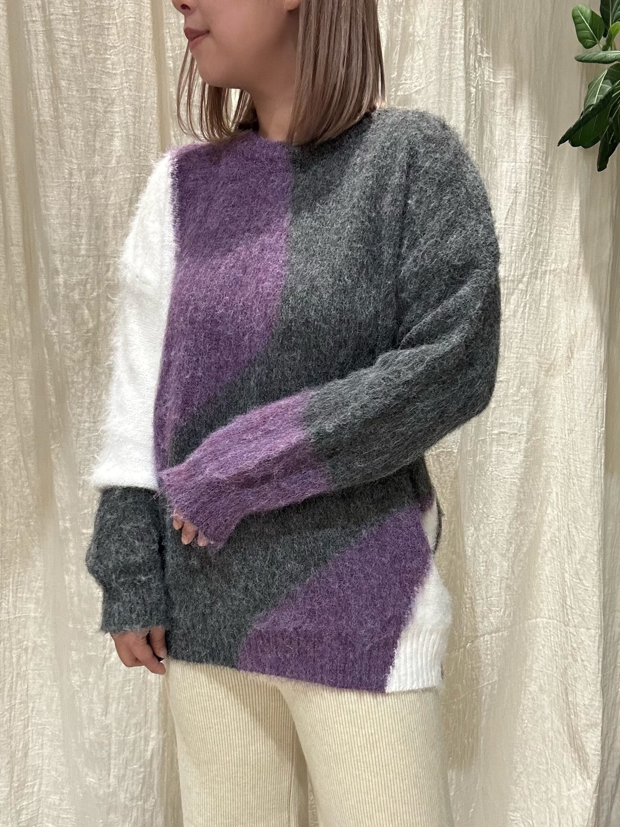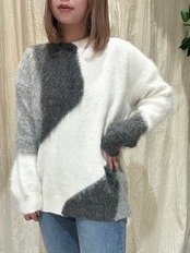 大胆な配色デザインがアクセントになったMIXニットプルオーバー。