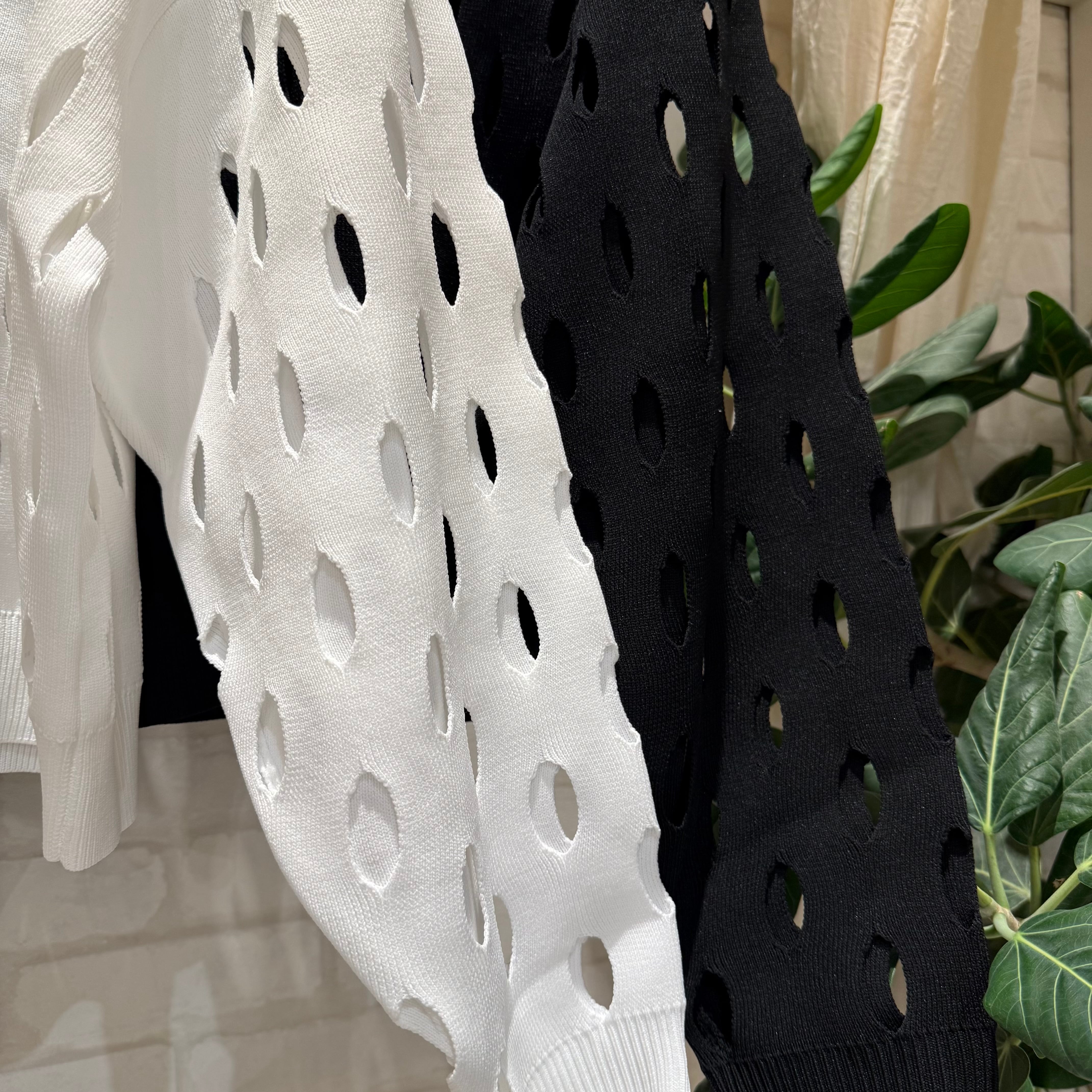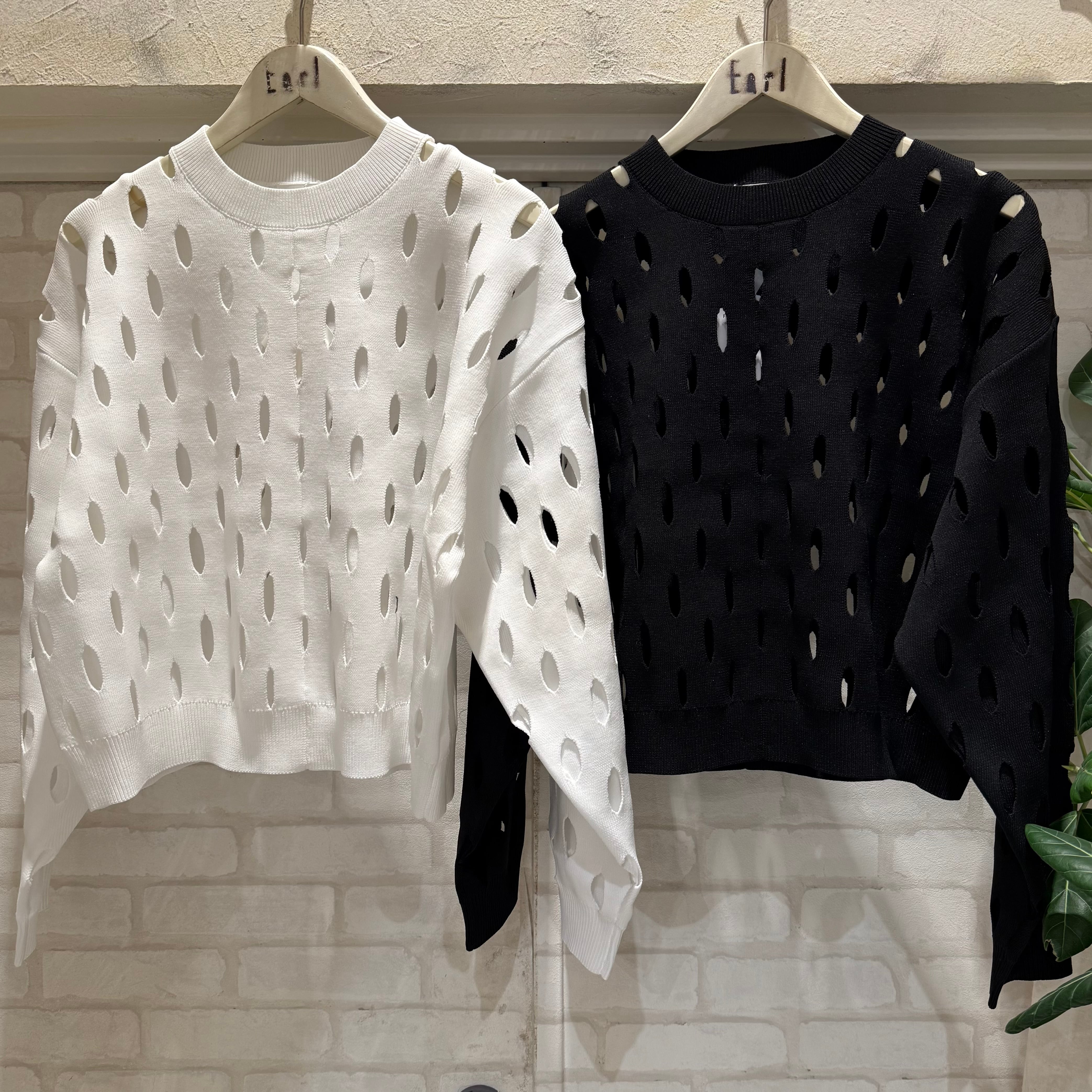 オーバル型のカットアウトが印象的なデザインニット。